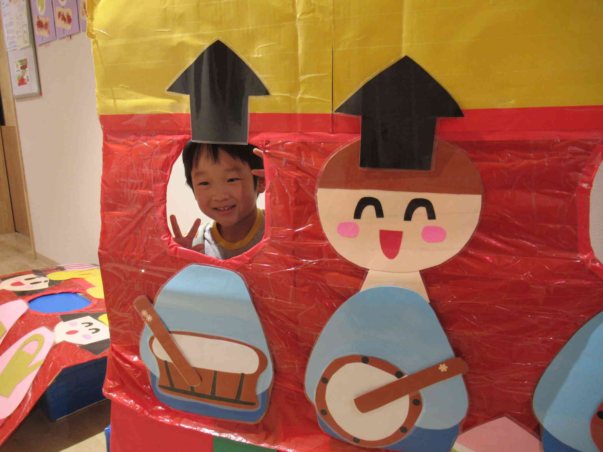 『うれしいひなまつり』の歌に合わせて保育園オリジナルのひな壇も完成させました☆