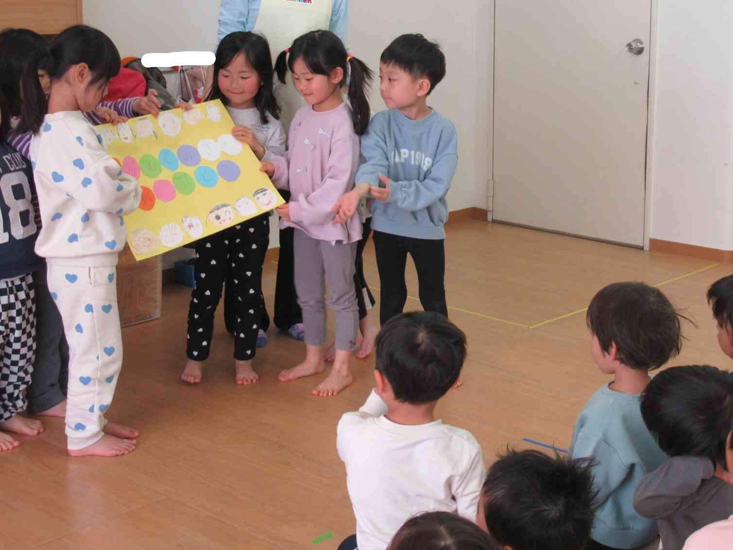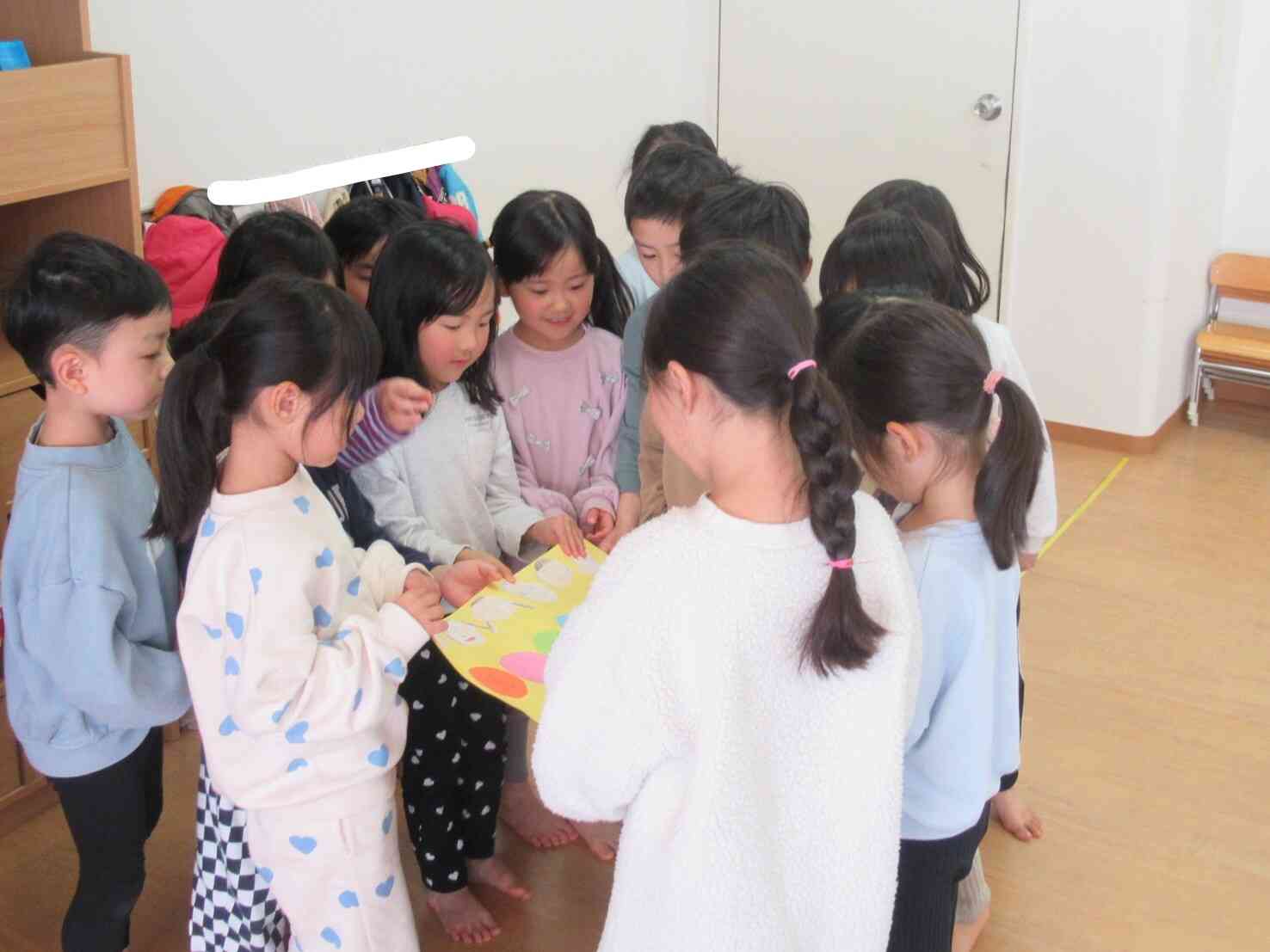 お別れ会で渡すきりん組へのプレゼントを内緒で製作しました。