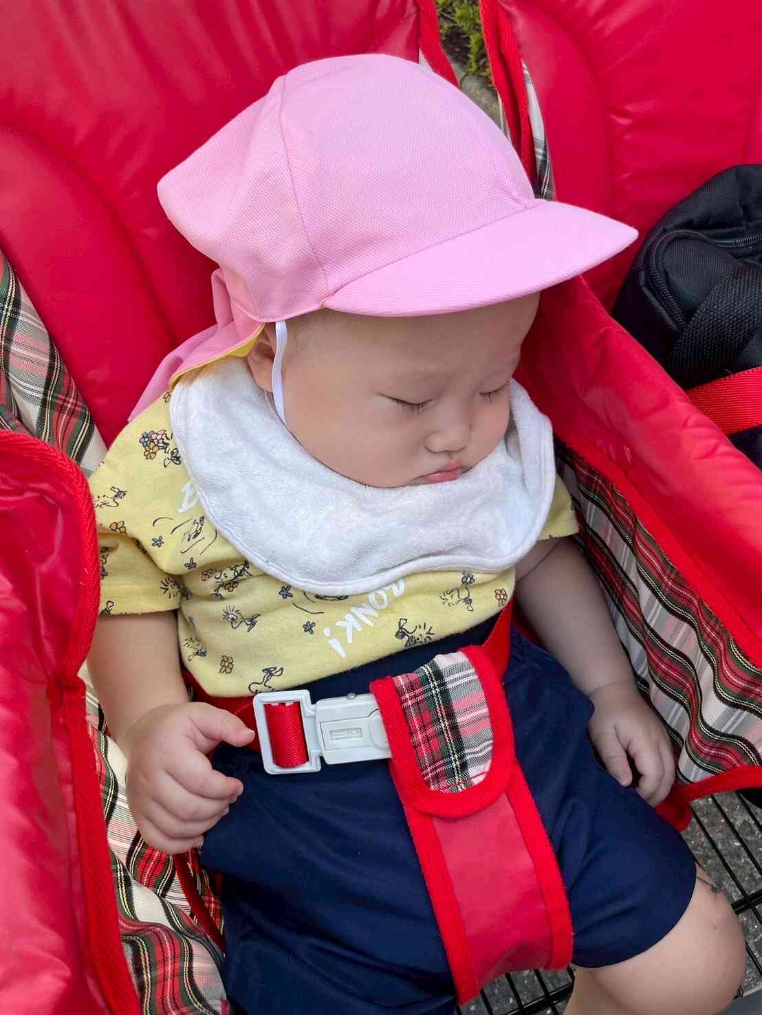 あれっ‥お散歩カートの揺れが心地よくていつの間にか寝ちゃいました(^_-)-☆