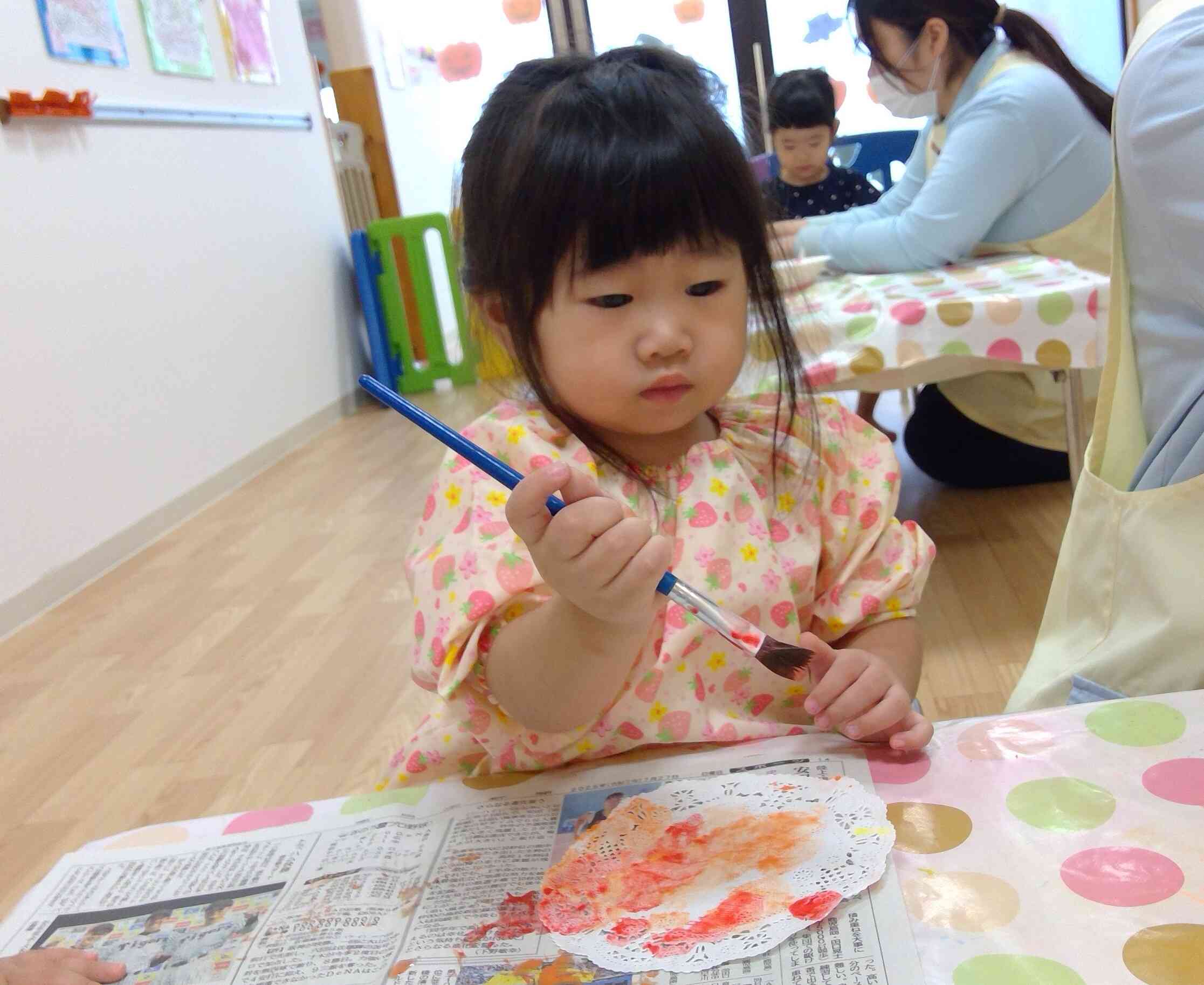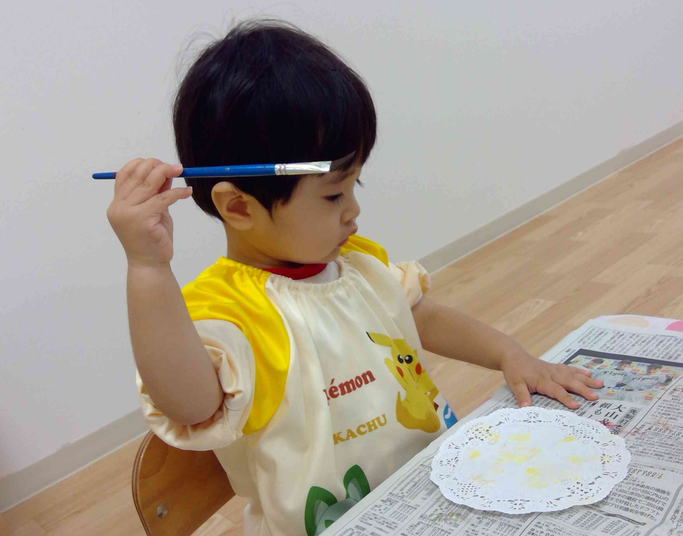 絵の具をつけて筆を渡すと上手にちょんちょんと塗ったり、