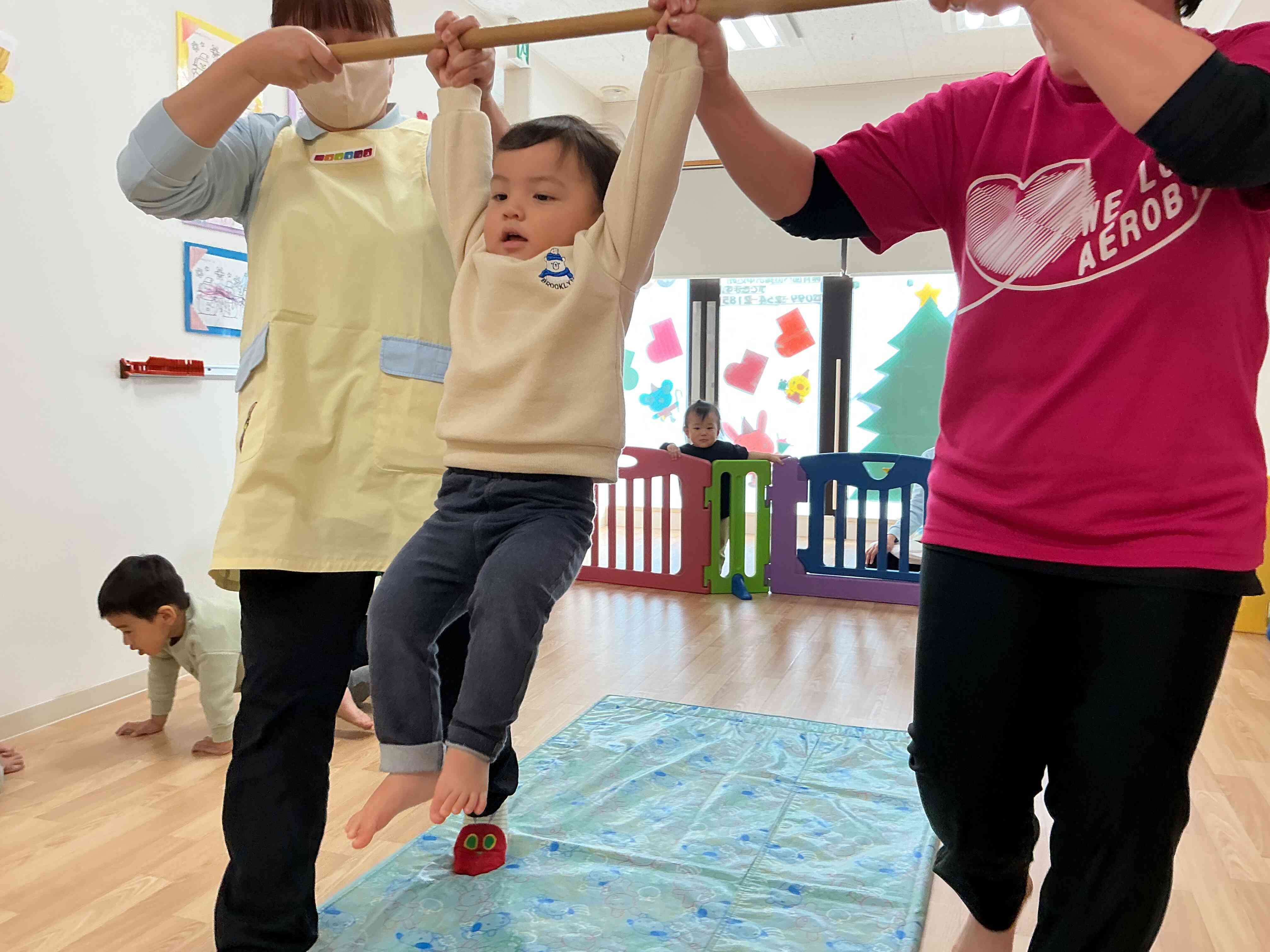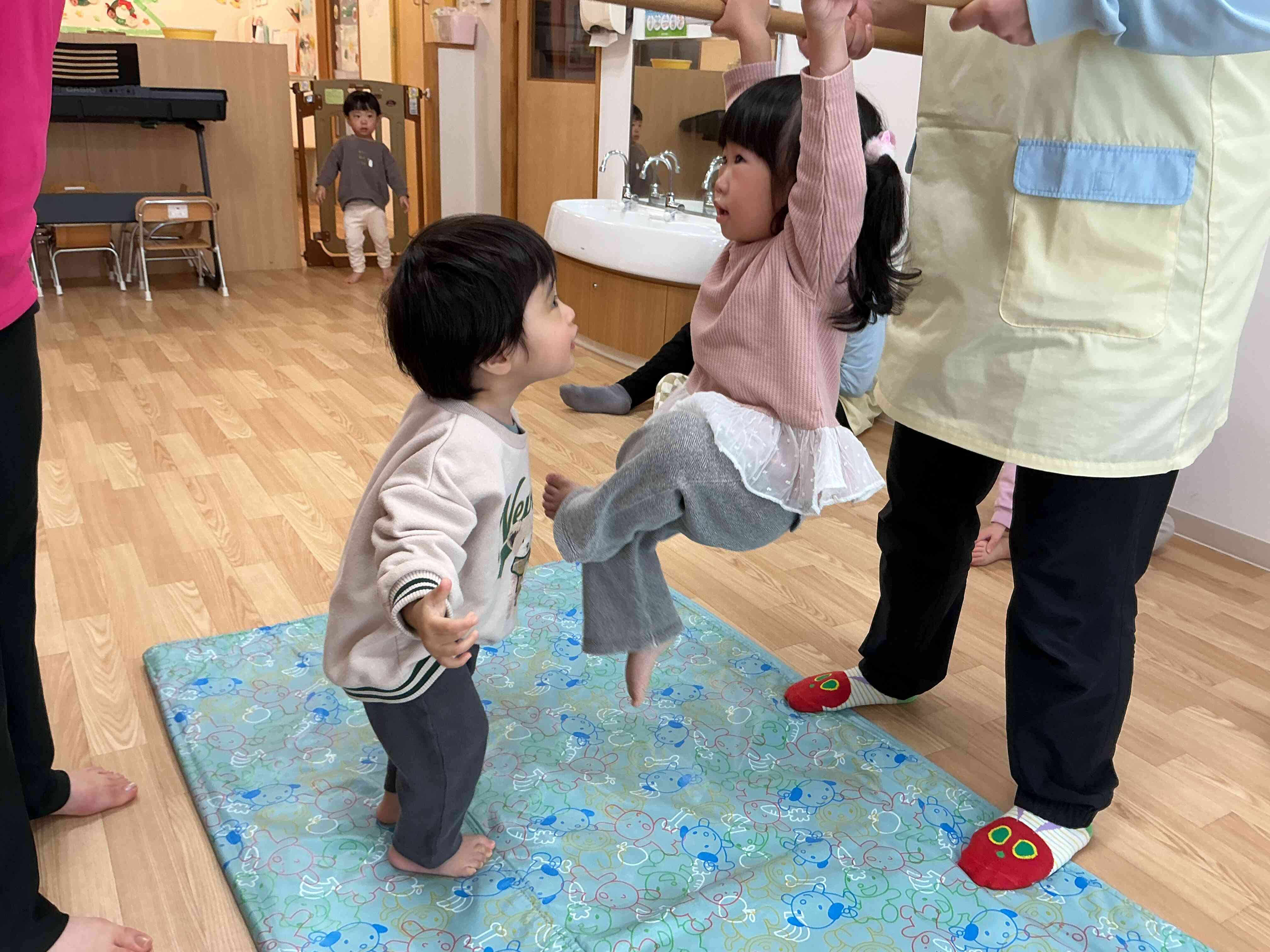 お友だちと二人ずつ、二本の棒にぶら下がることもしてみました♪