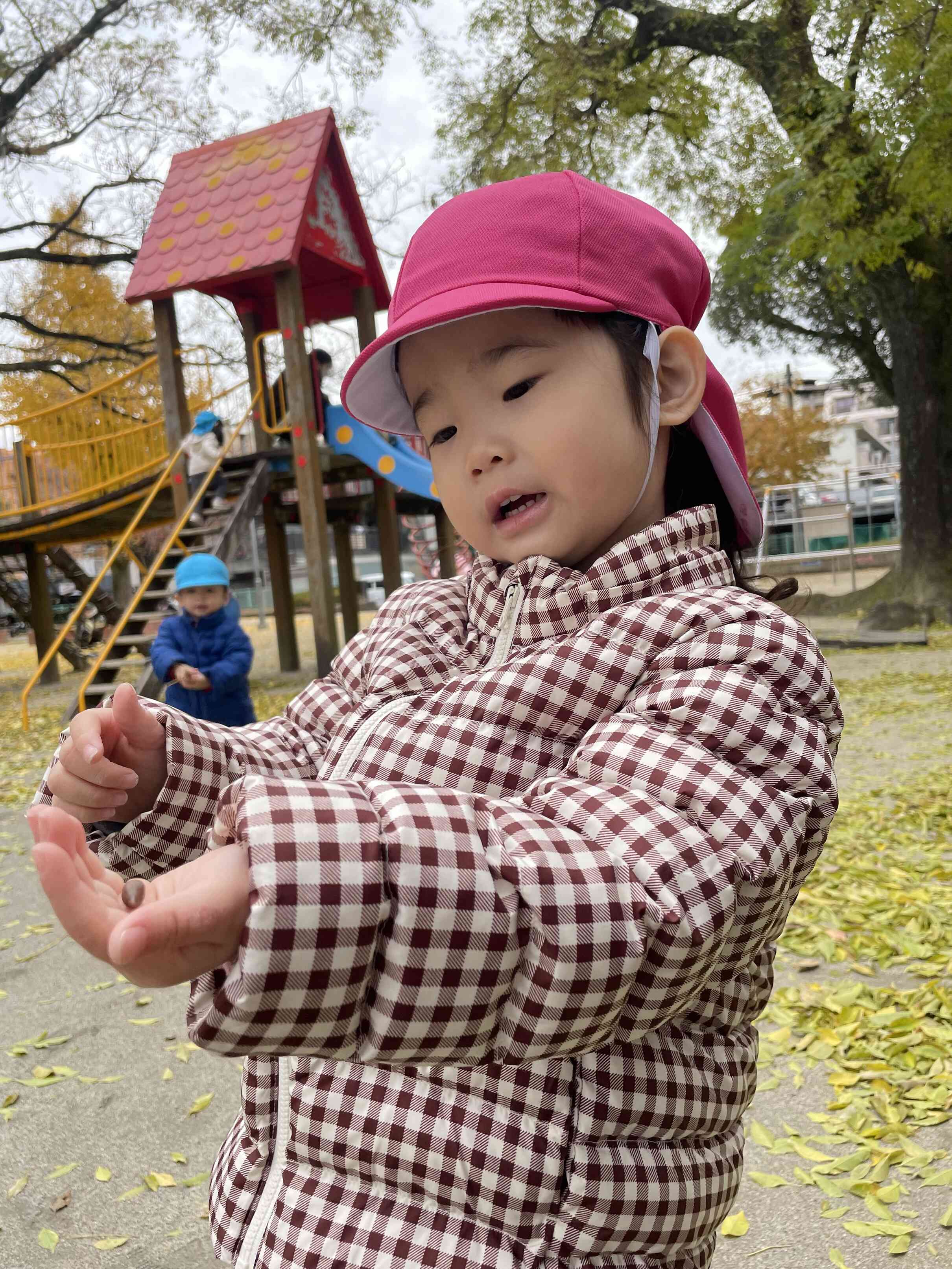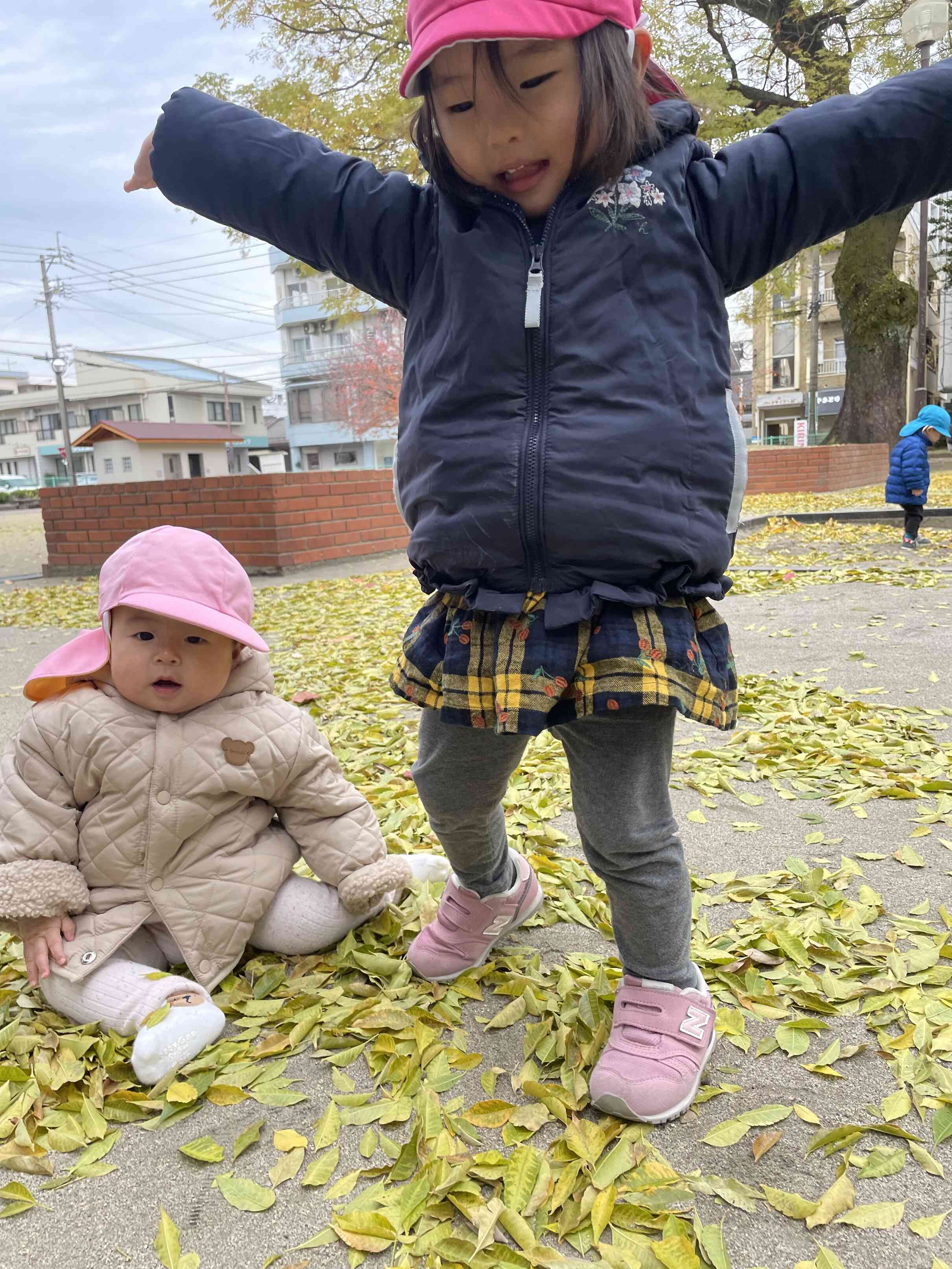 葉っぱをたくさん集めて~雪のように降らせてあそびました!(^^)!