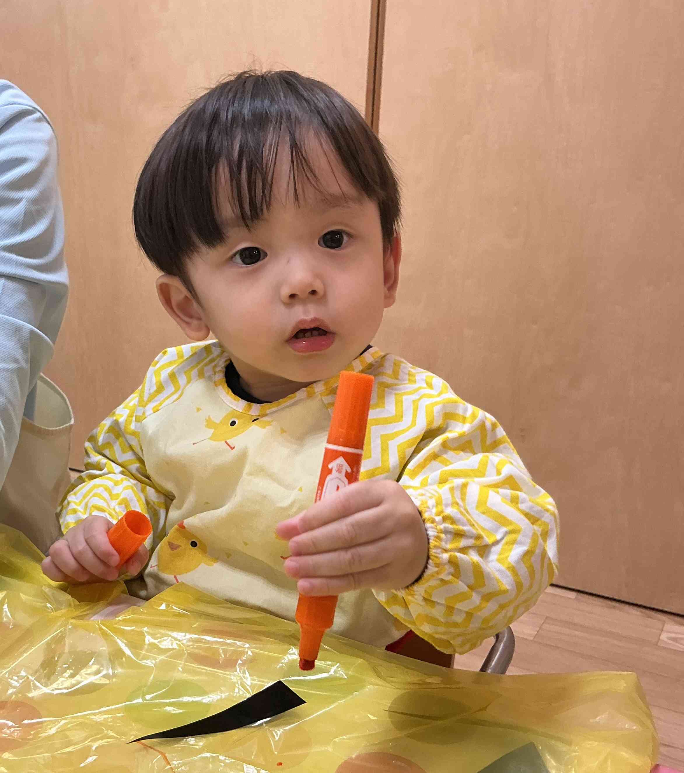 黄色のカラーポリに油性ペンで模様付け♪