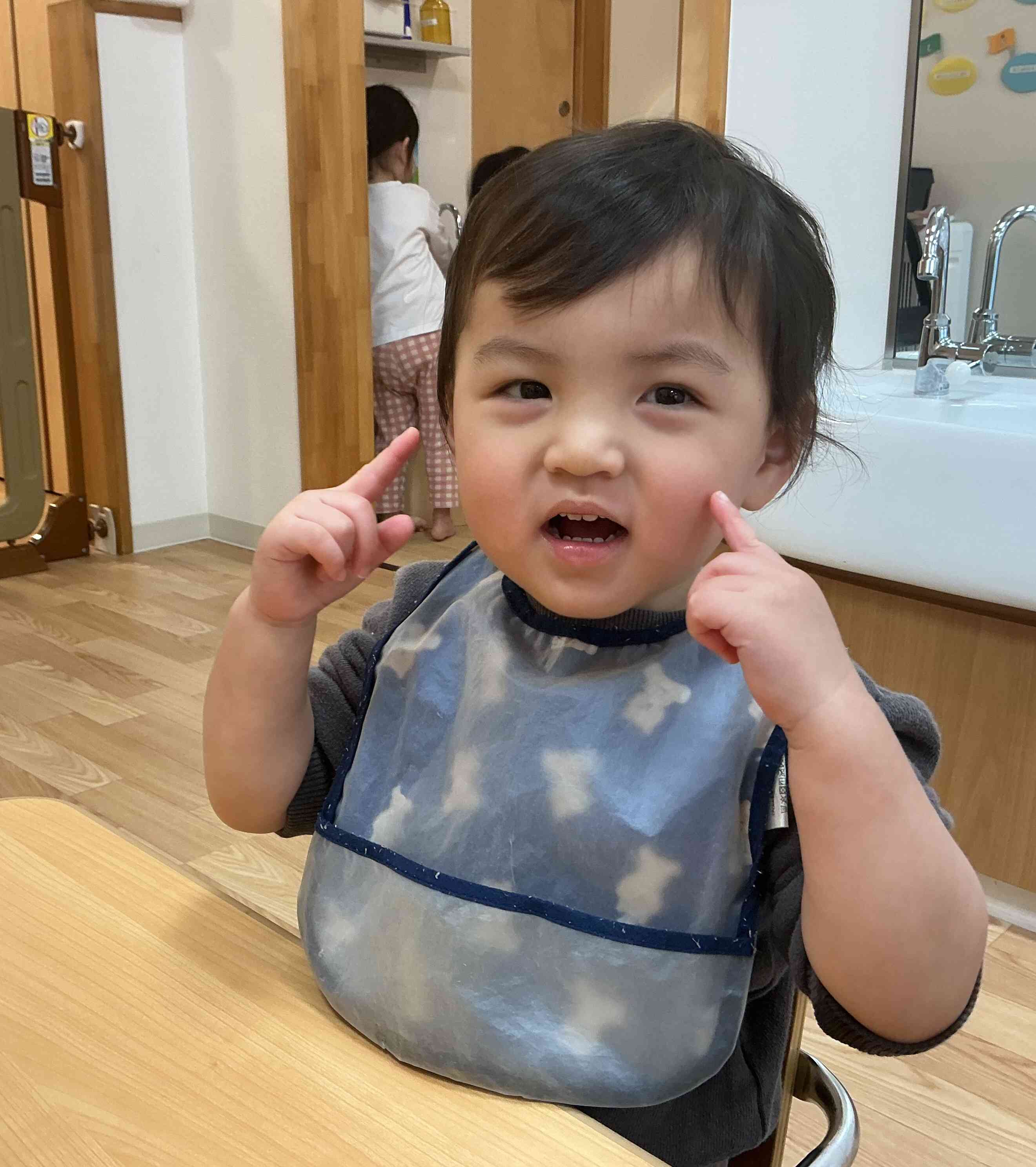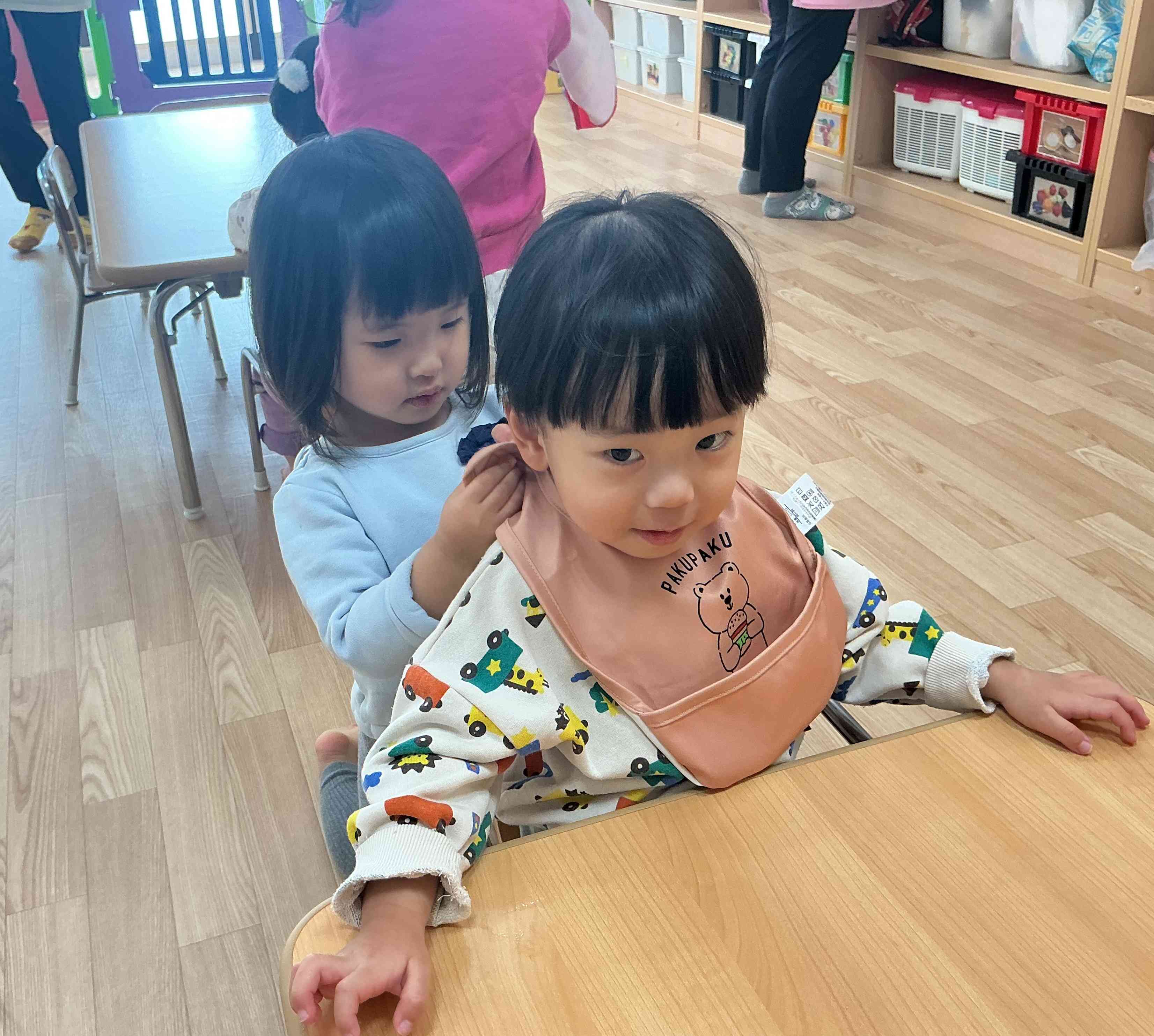 今日はエプロンを一つ上のお姉ちゃんがつけてくれました(^^♪
