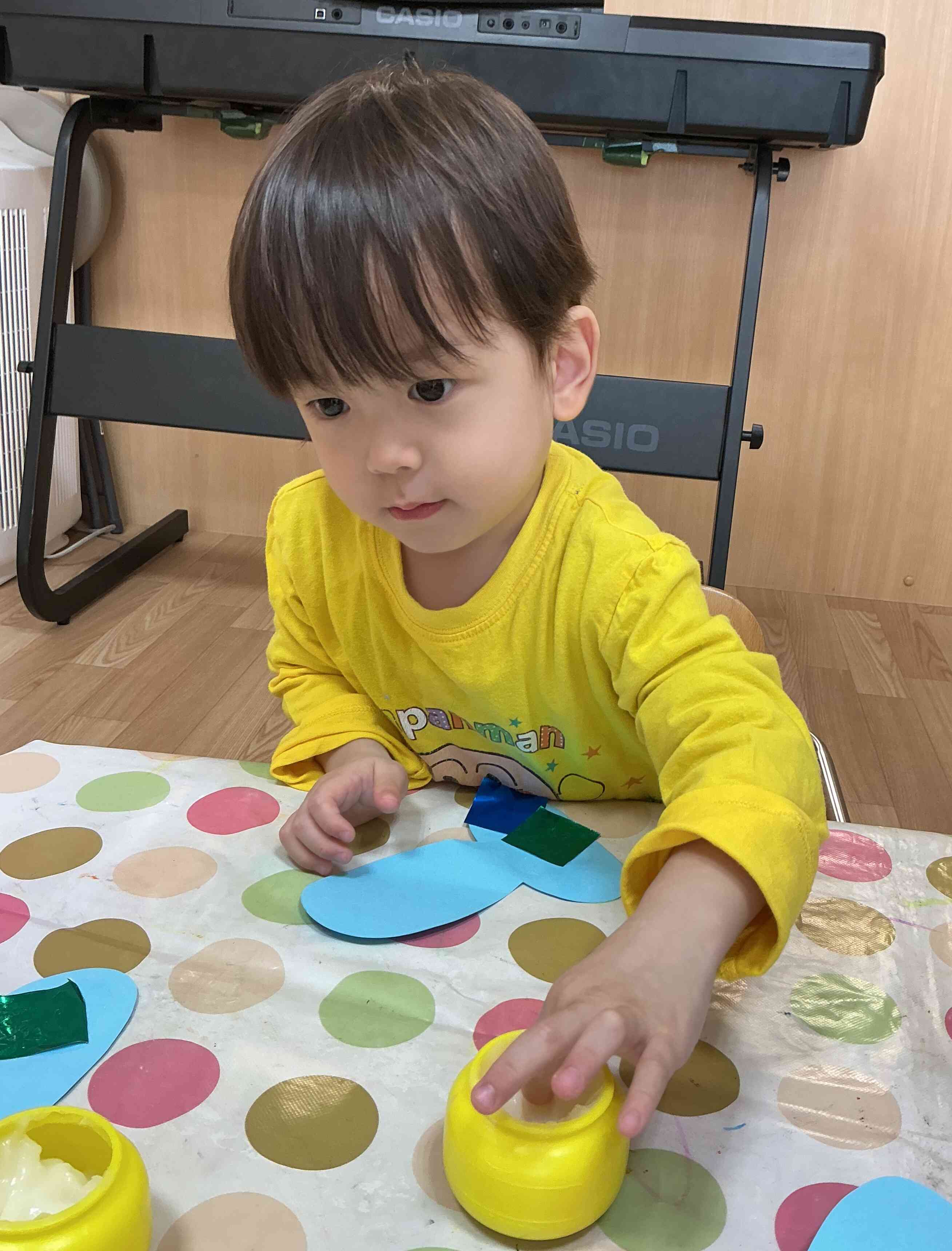 ぼくは、のりを画用紙いっぱいにつけて仕上げていくよ~(^^♪