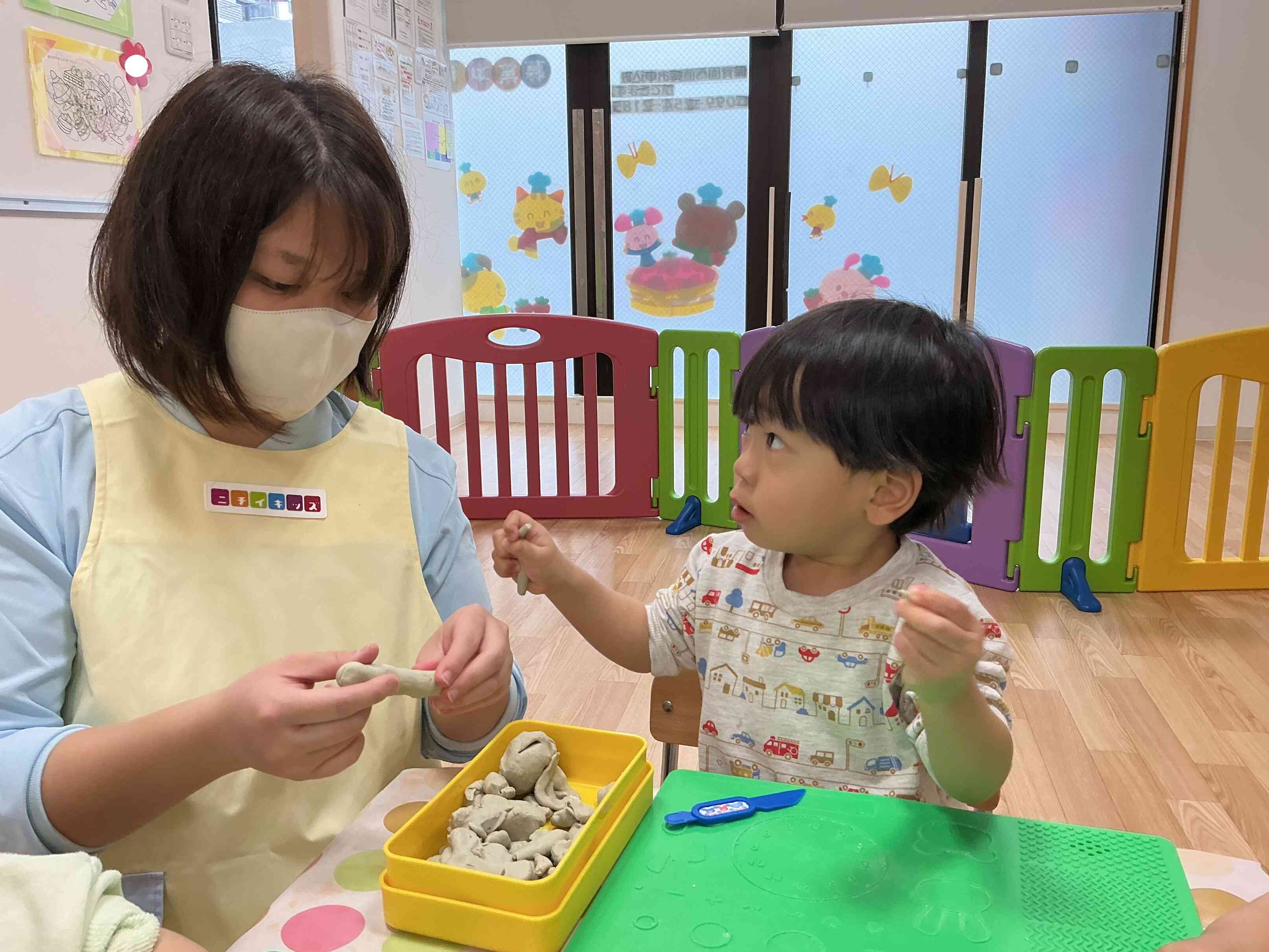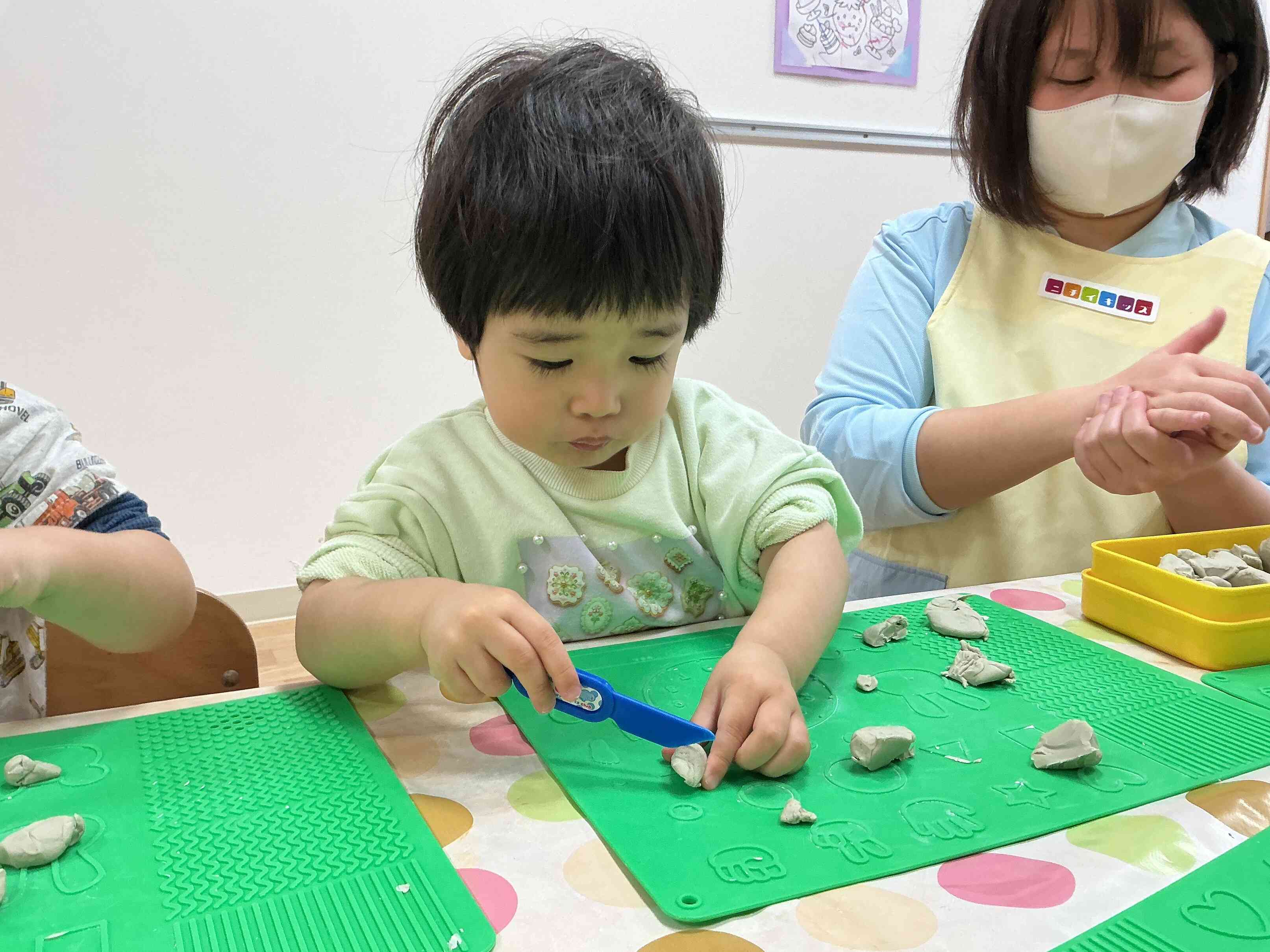 お友だちと一緒に粘土をきることにはまっています(^^)/