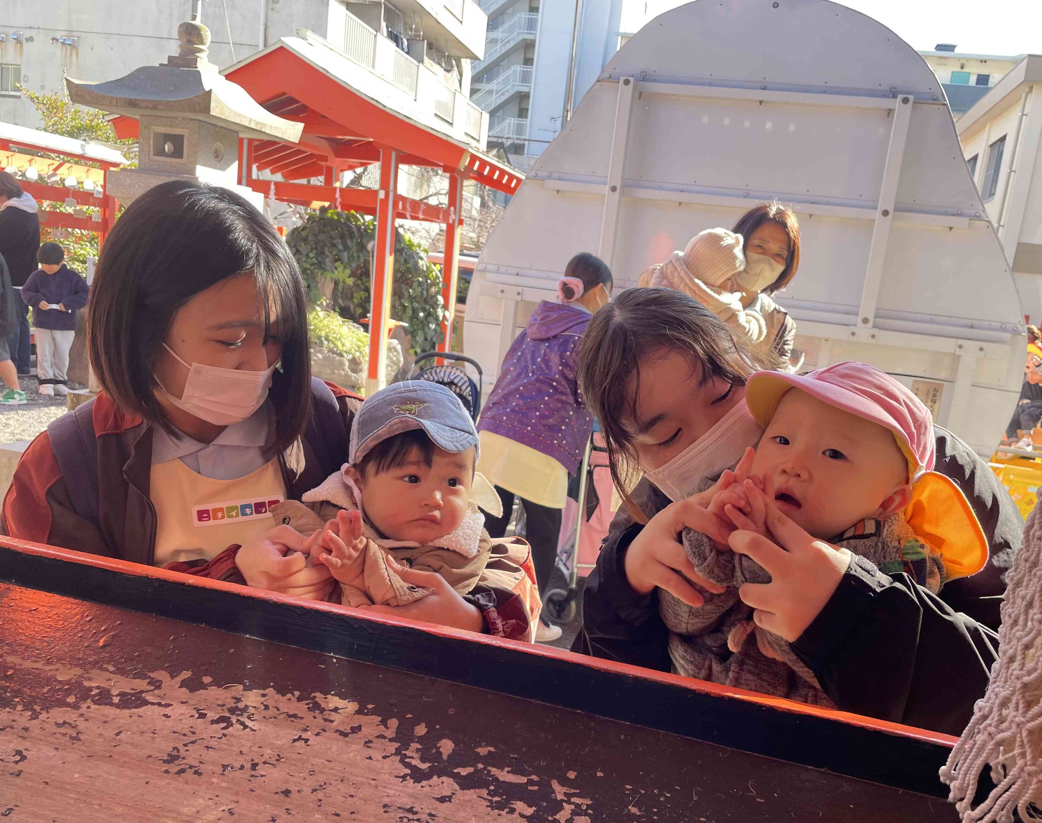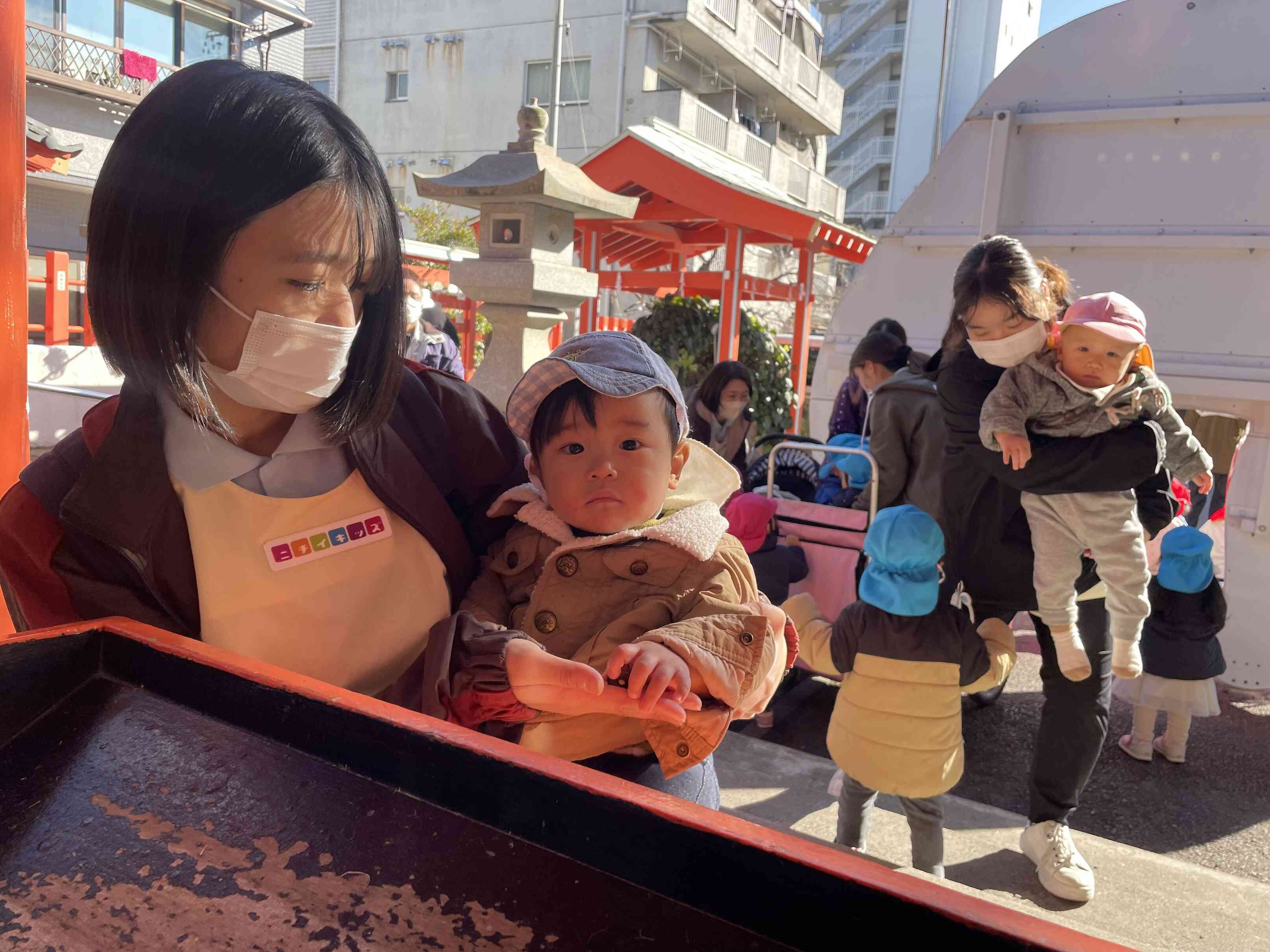 先生と一緒に鈴を鳴らして参拝したよ☆