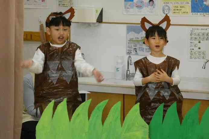うさぎ組さん(3歳児)の劇遊び「ともだちほしいなおおかみさん」からスタートです。