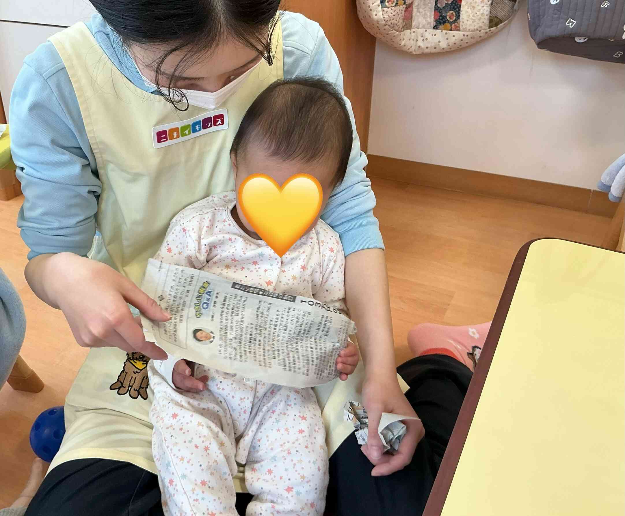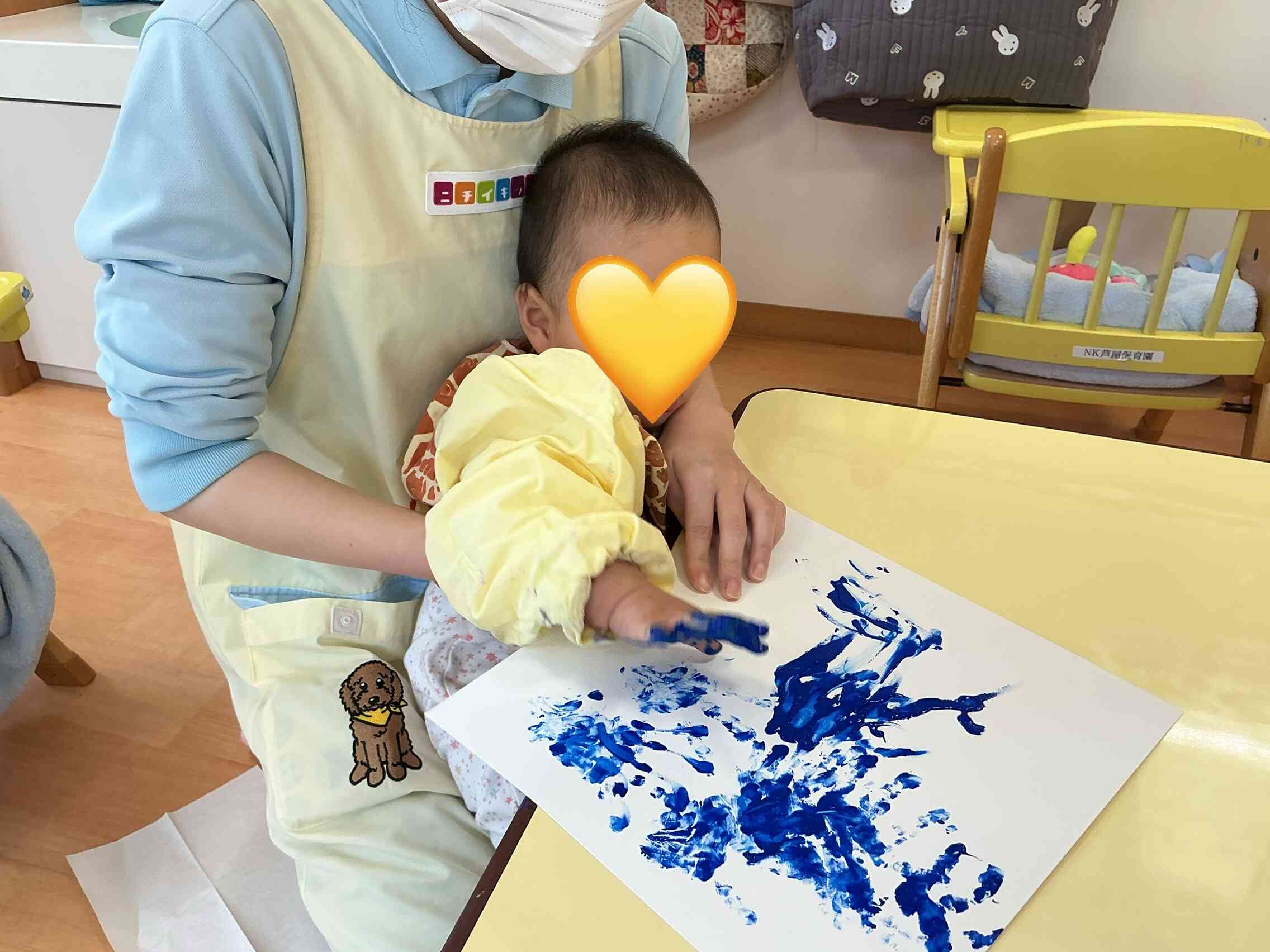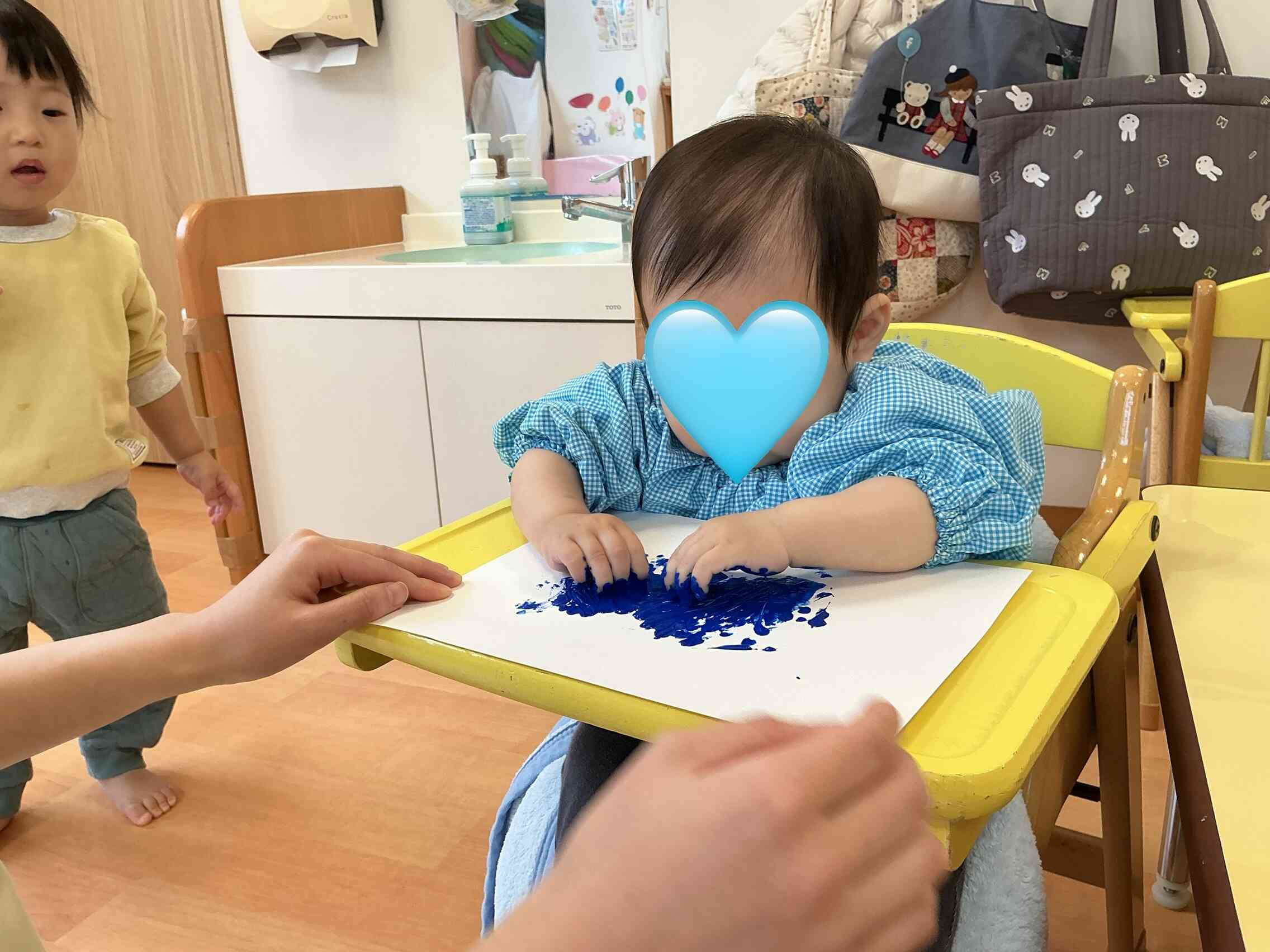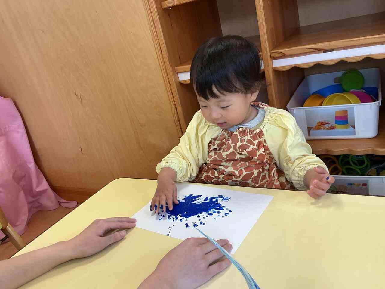 始めは恐る恐る触っていたのですが、だんだん大胆に紙にペタペタ手で色塗りを楽しんでいましたよ