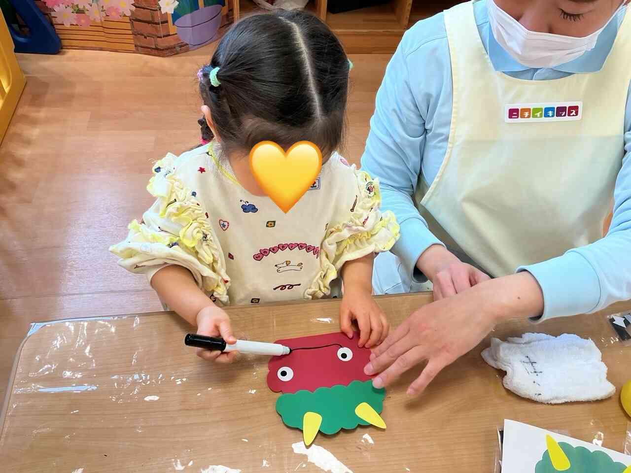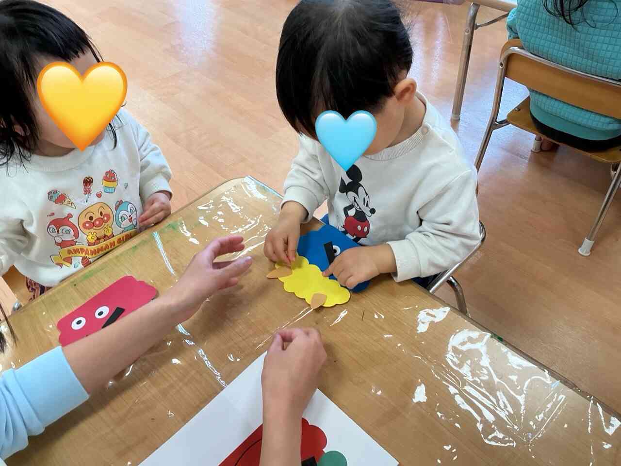 ひよこ、あひる、うさぎ組のみんなで一緒にお面を作りました。
