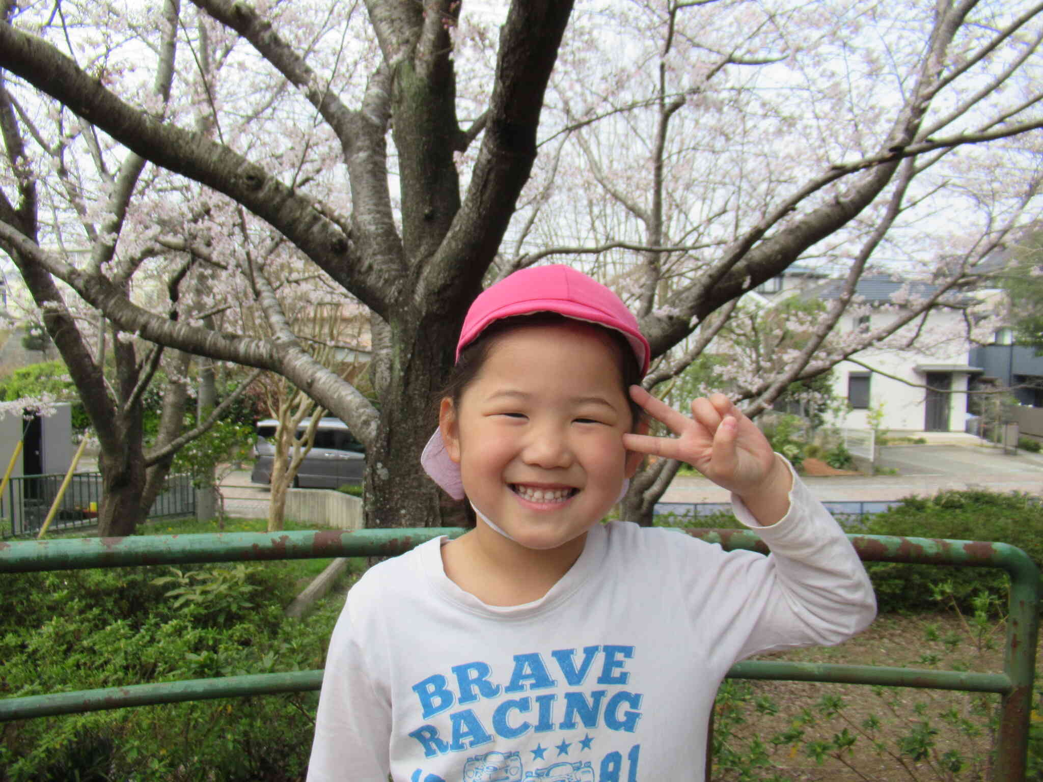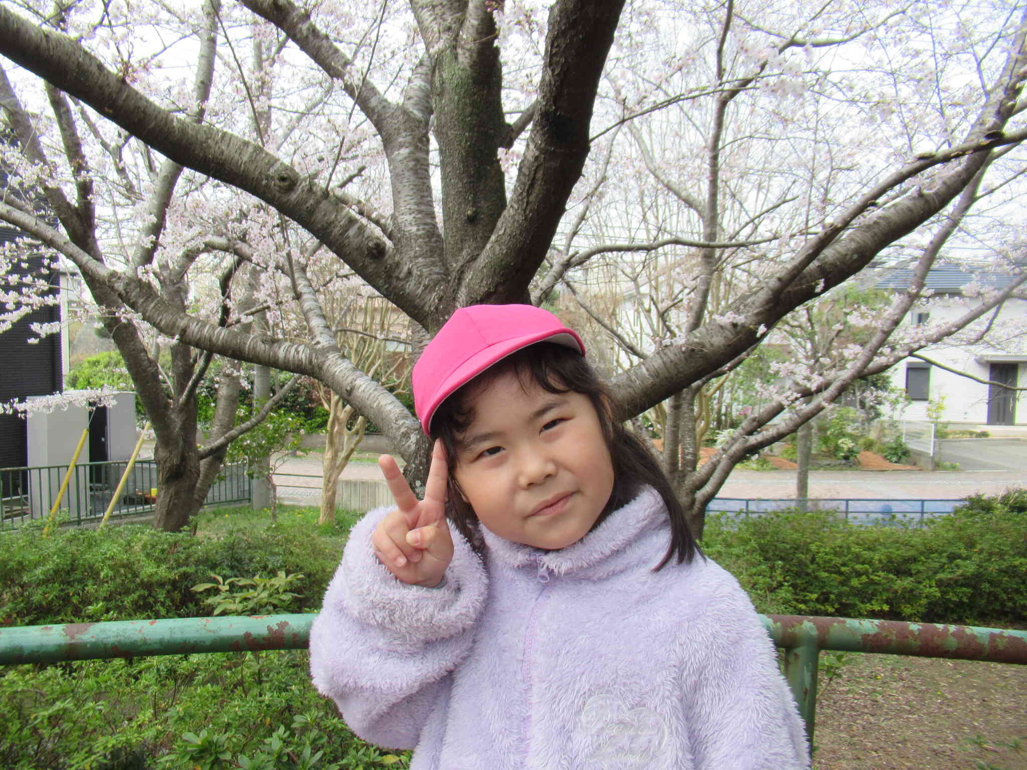 一つ大きくなったお友だち、5歳児クラス:きりん組のお友だちは大好きなねむの木公園の桜の下で