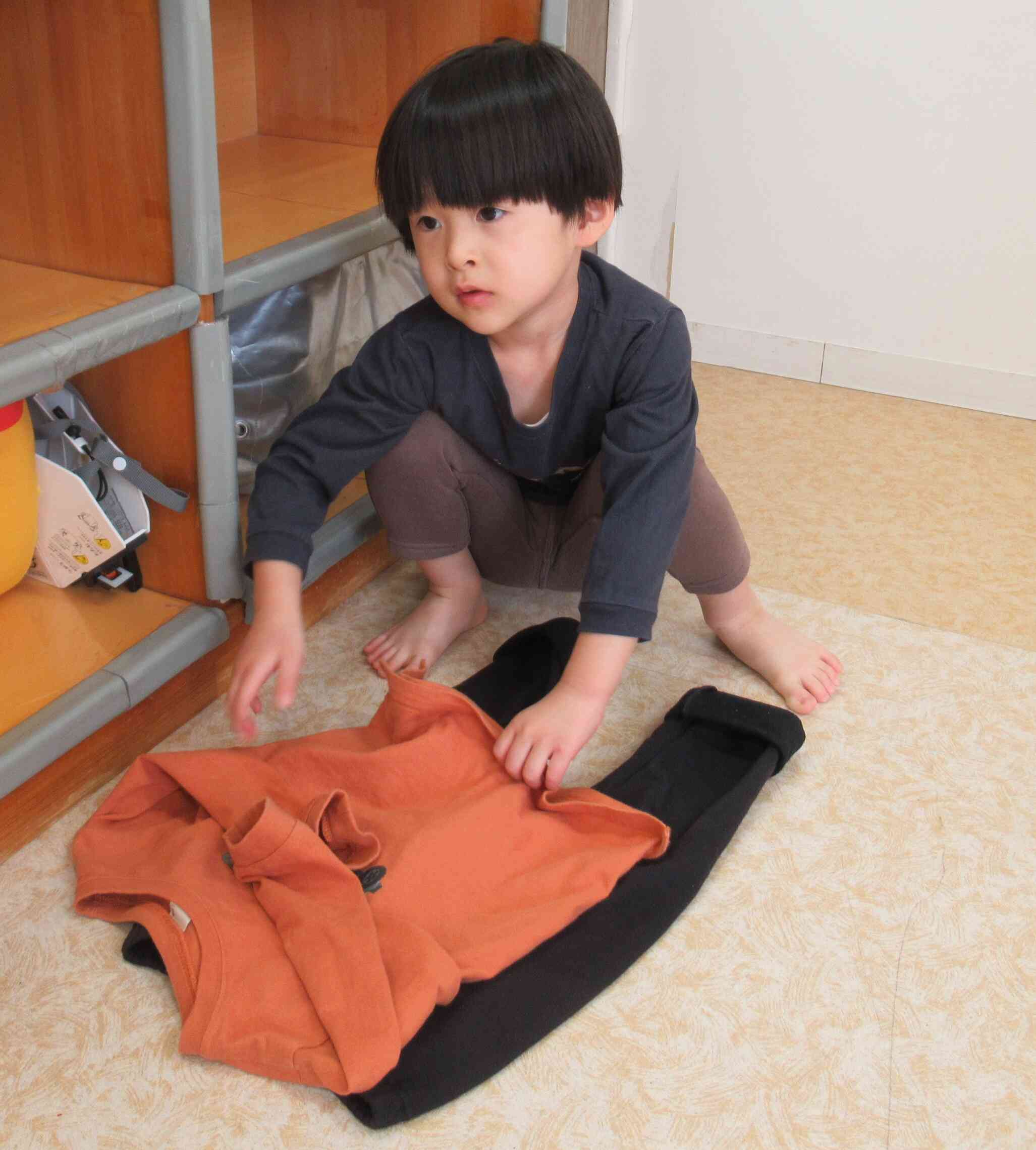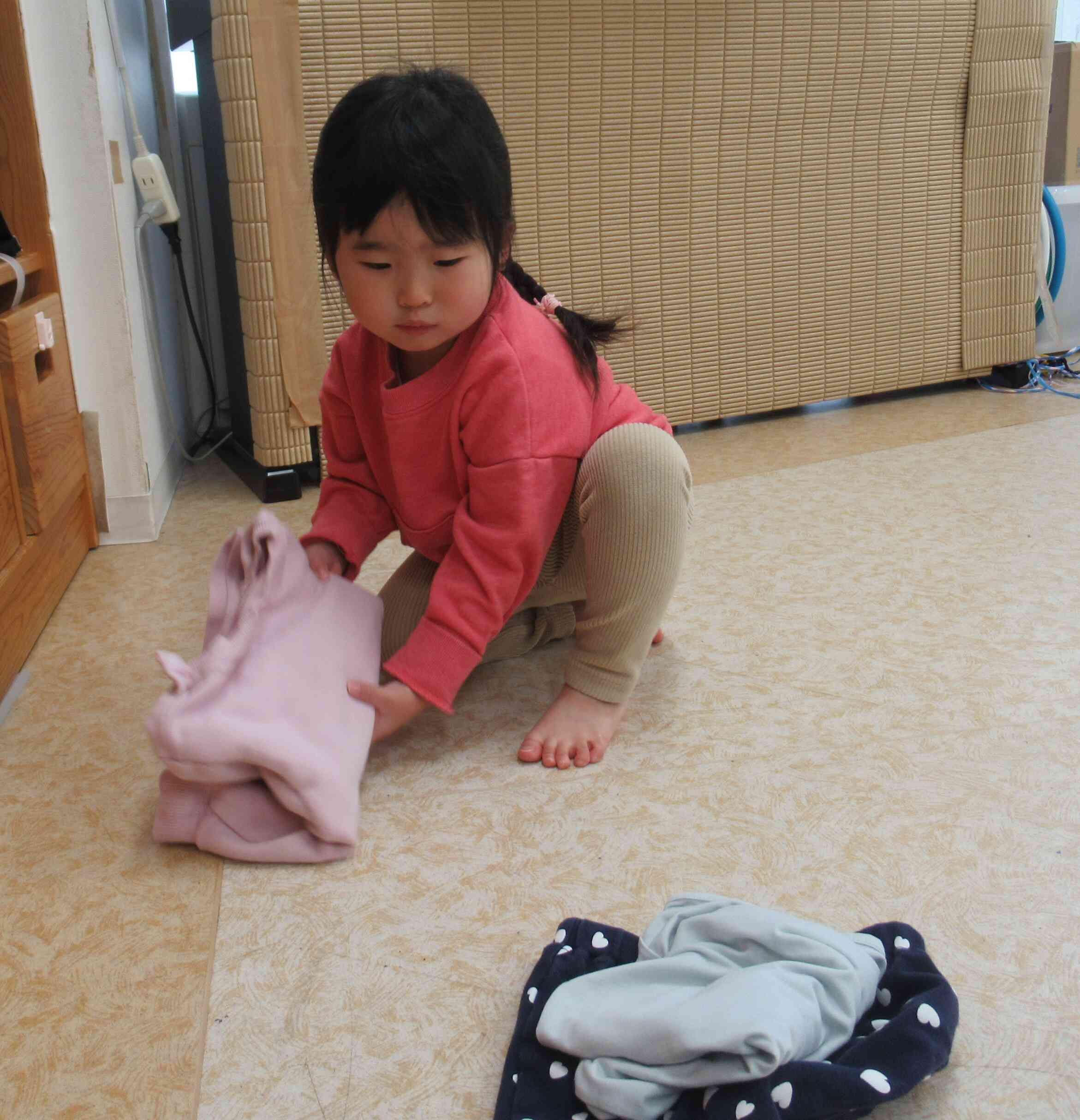 お着替えの後、洋服を畳んで片付けるまでがセットなうさぎ組さん✨