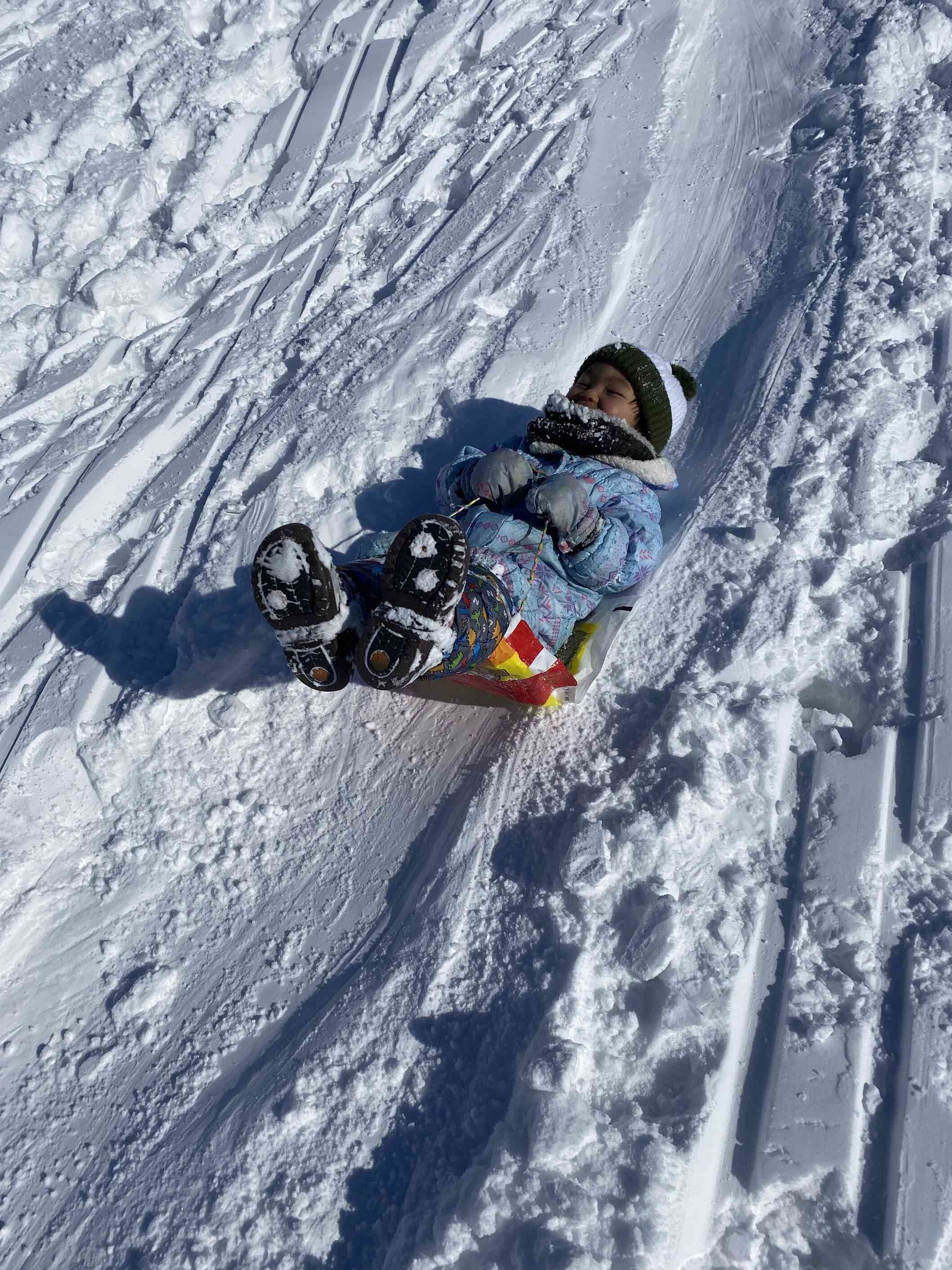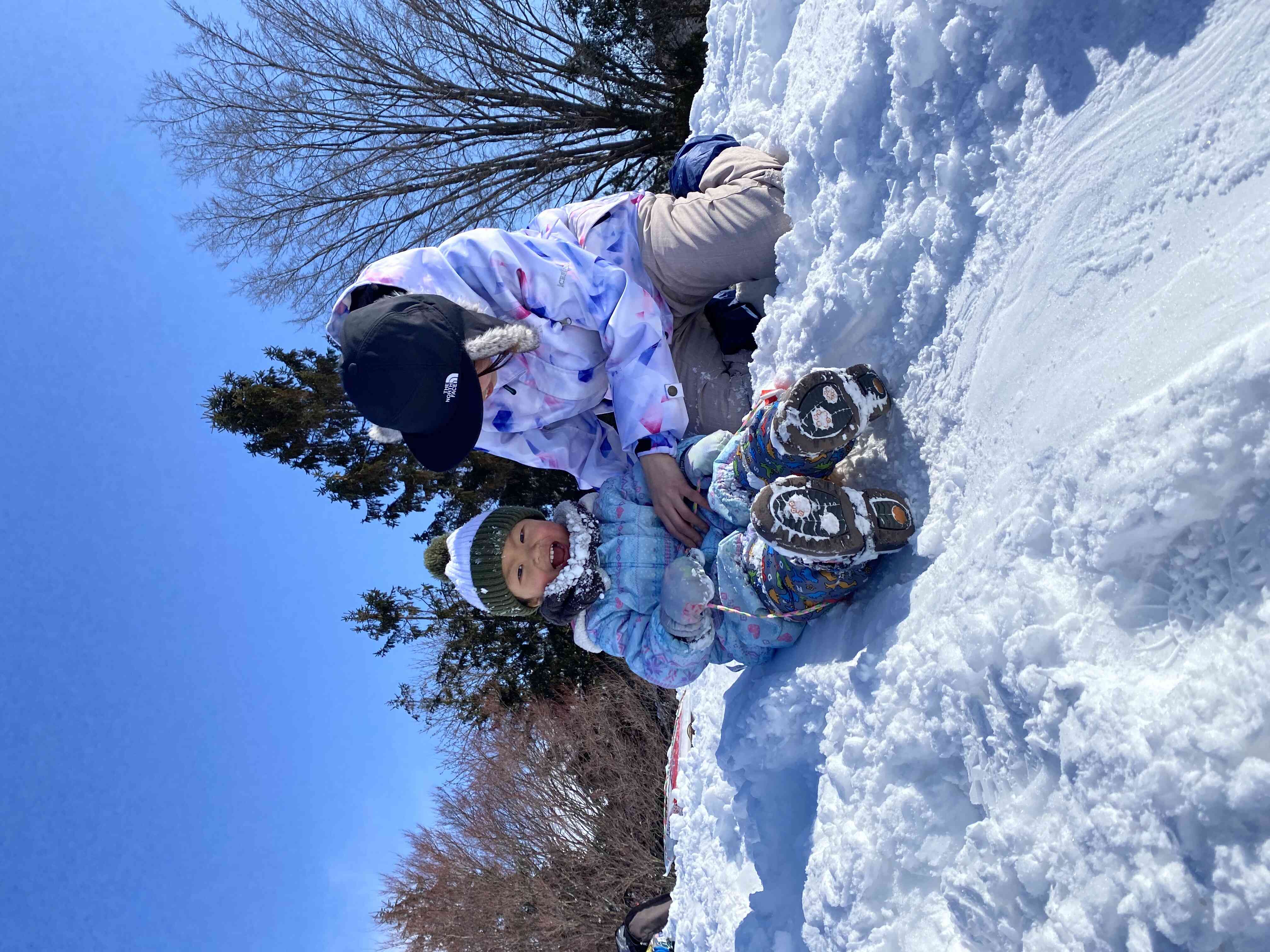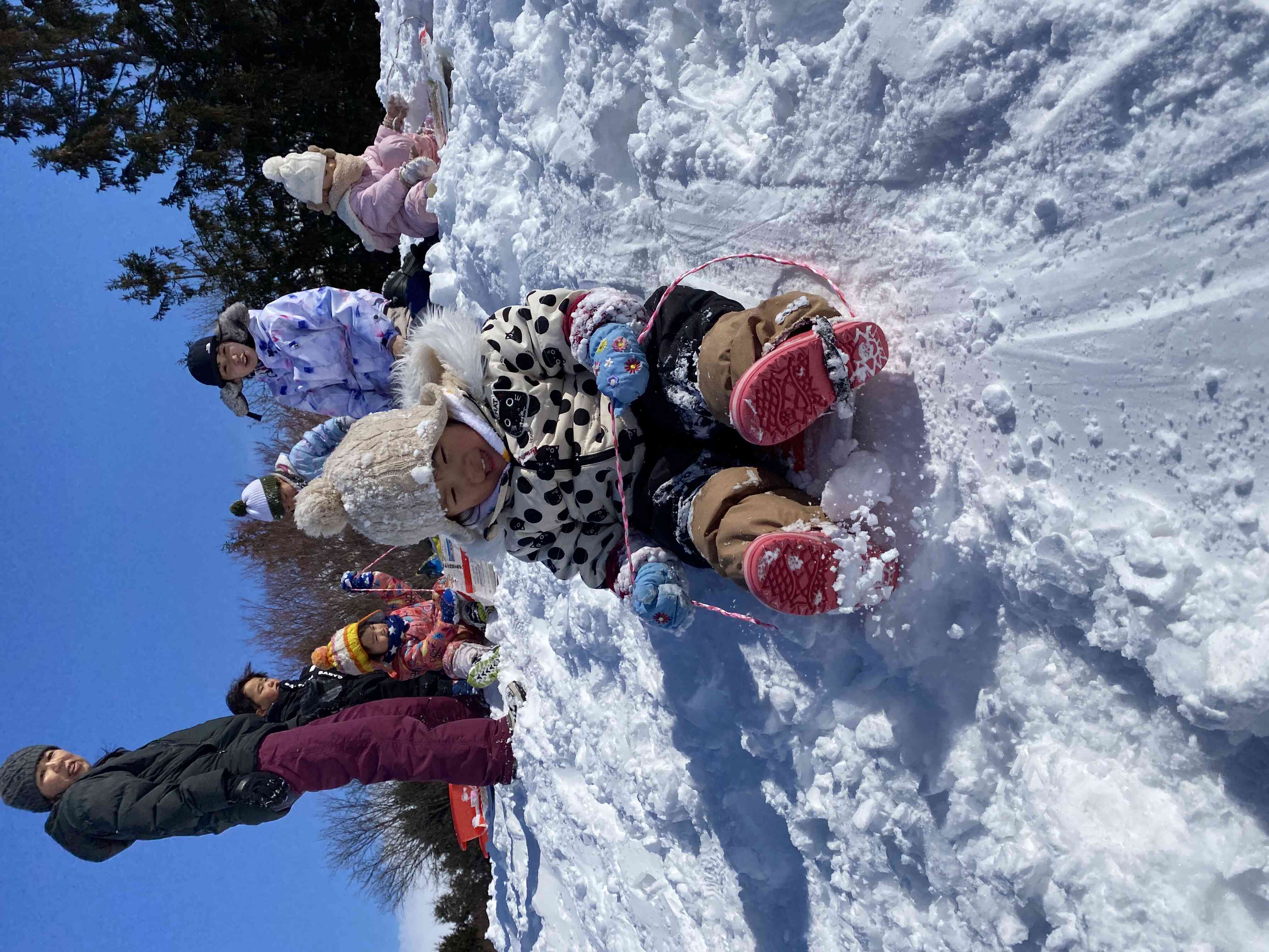 行く道中も自らあえて雪をこぎ・・雪山があったら登り・・(保育士は歩道を歩いて向かいたいのですが。。)