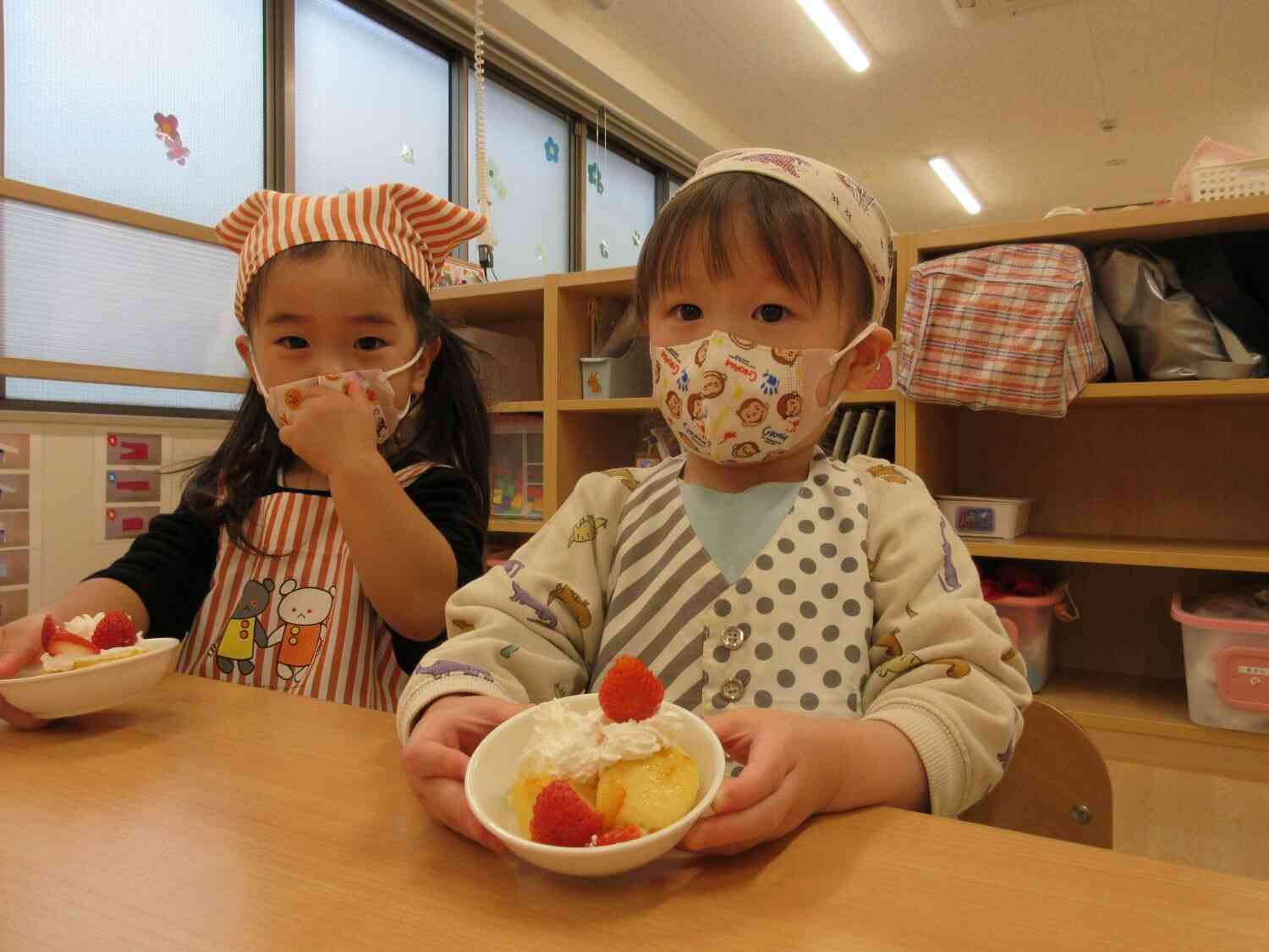 うさぎ組さんの食育活動として『クリスマスケーキ』をつくりました。