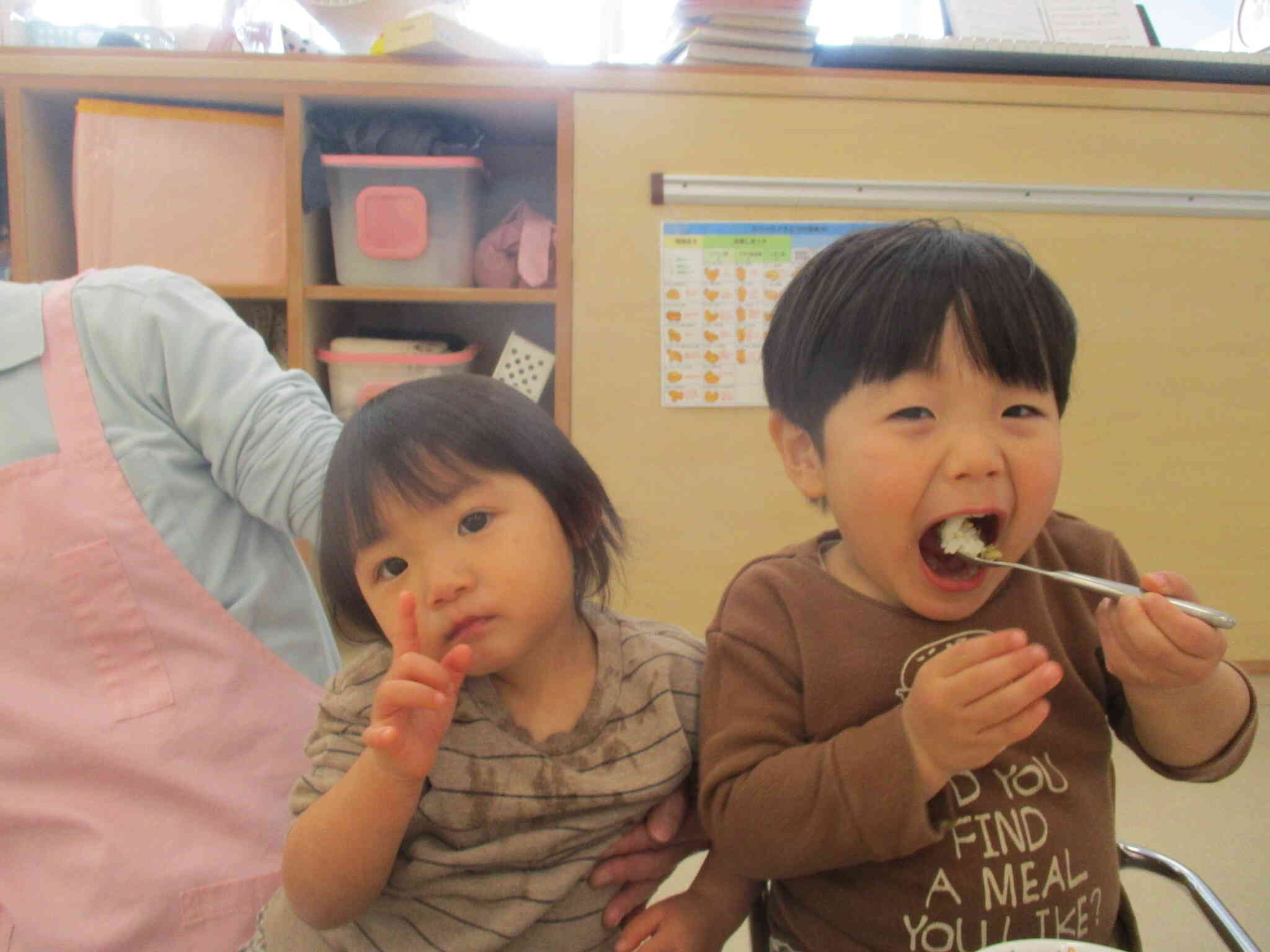もうすぐうさぎ組の子は卒園。そこで…クラス毎ではなく、いつもと違う子と、いつもと違う部屋で給食を食べました。なんだかとても楽しそうな「交流給食」。みんなの笑い声が響いています♪