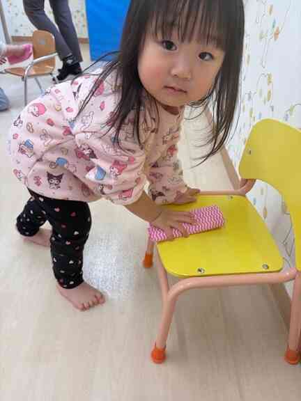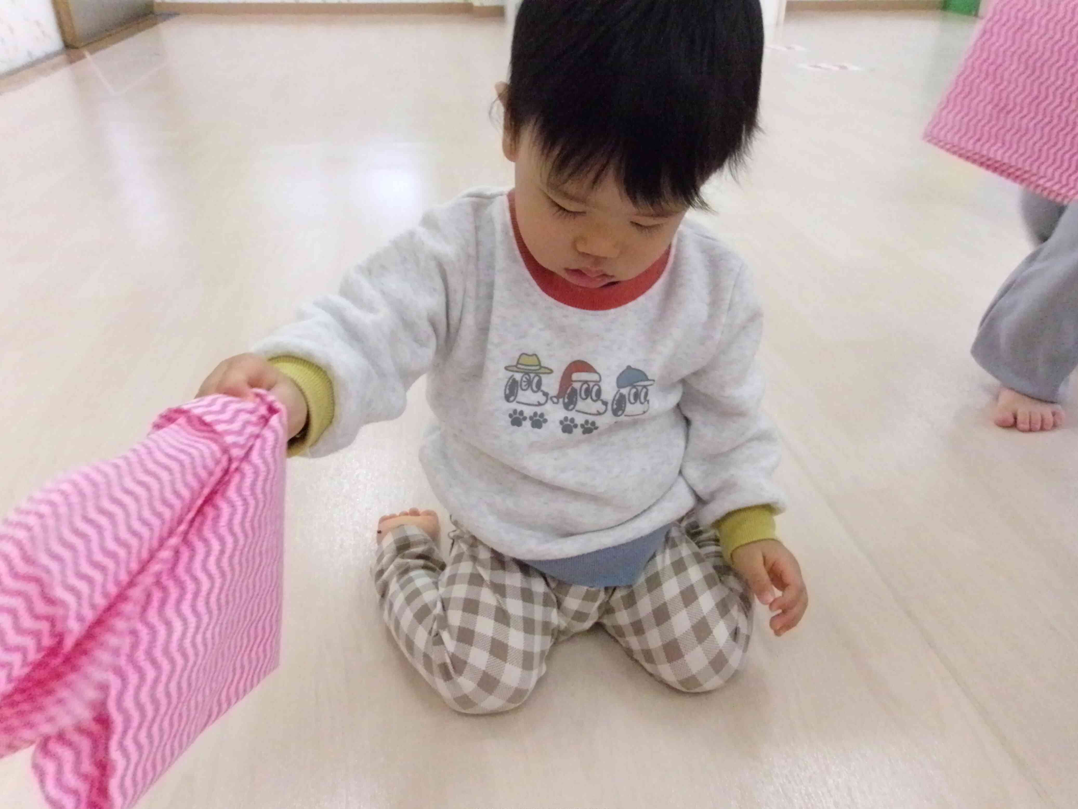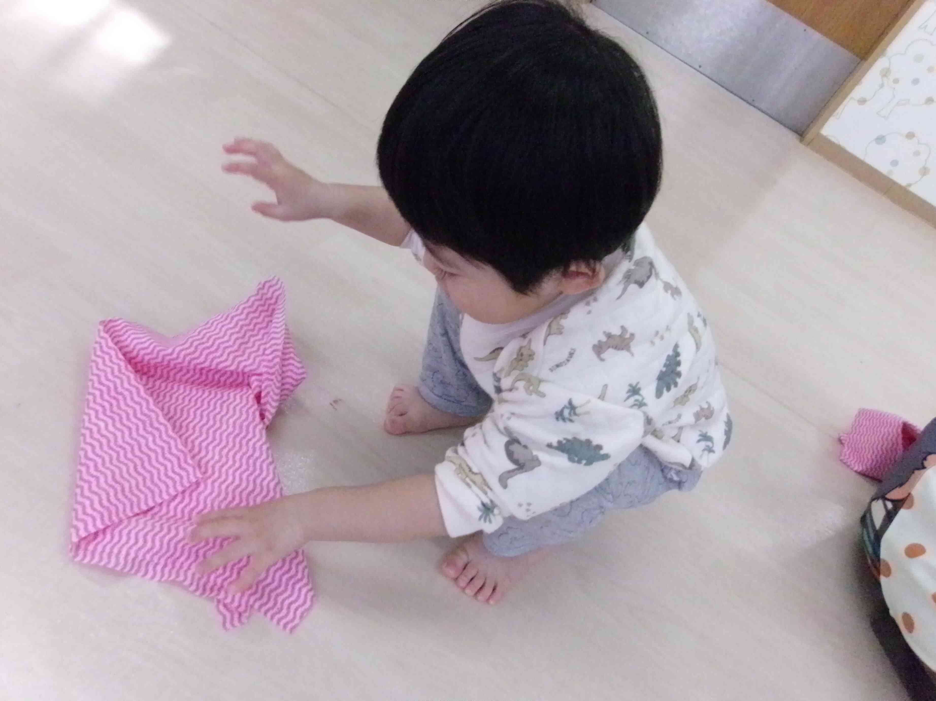 「ごしごし」「きれいになったね」と楽しそうに取り組む姿が見られました。