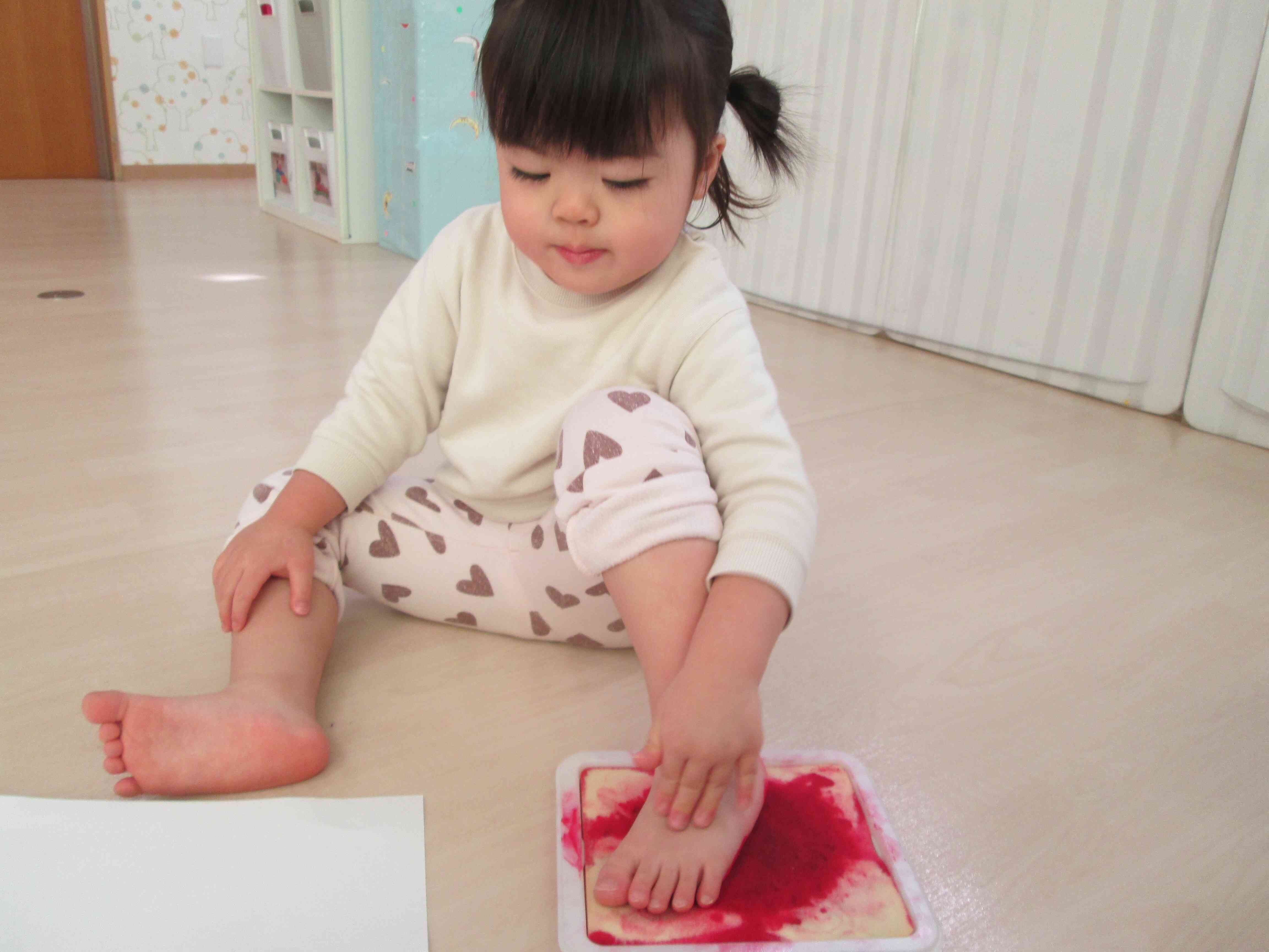 足もスタンプ台にのせてギュッ、ギュッ、ギュッ