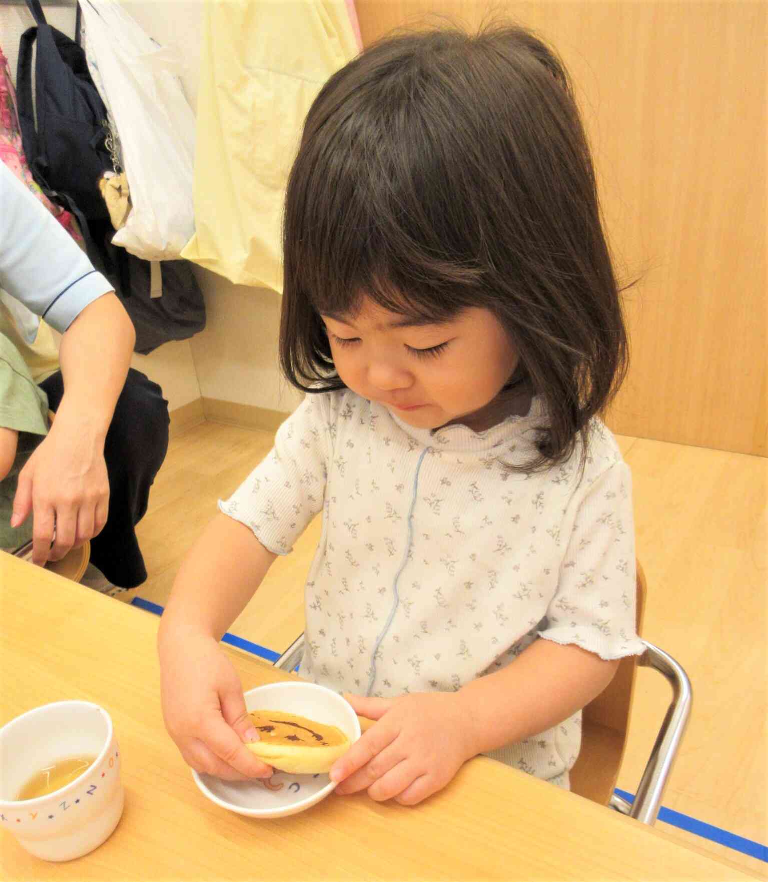 お誕生日おやつの「ニコちゃんホットケーキ」