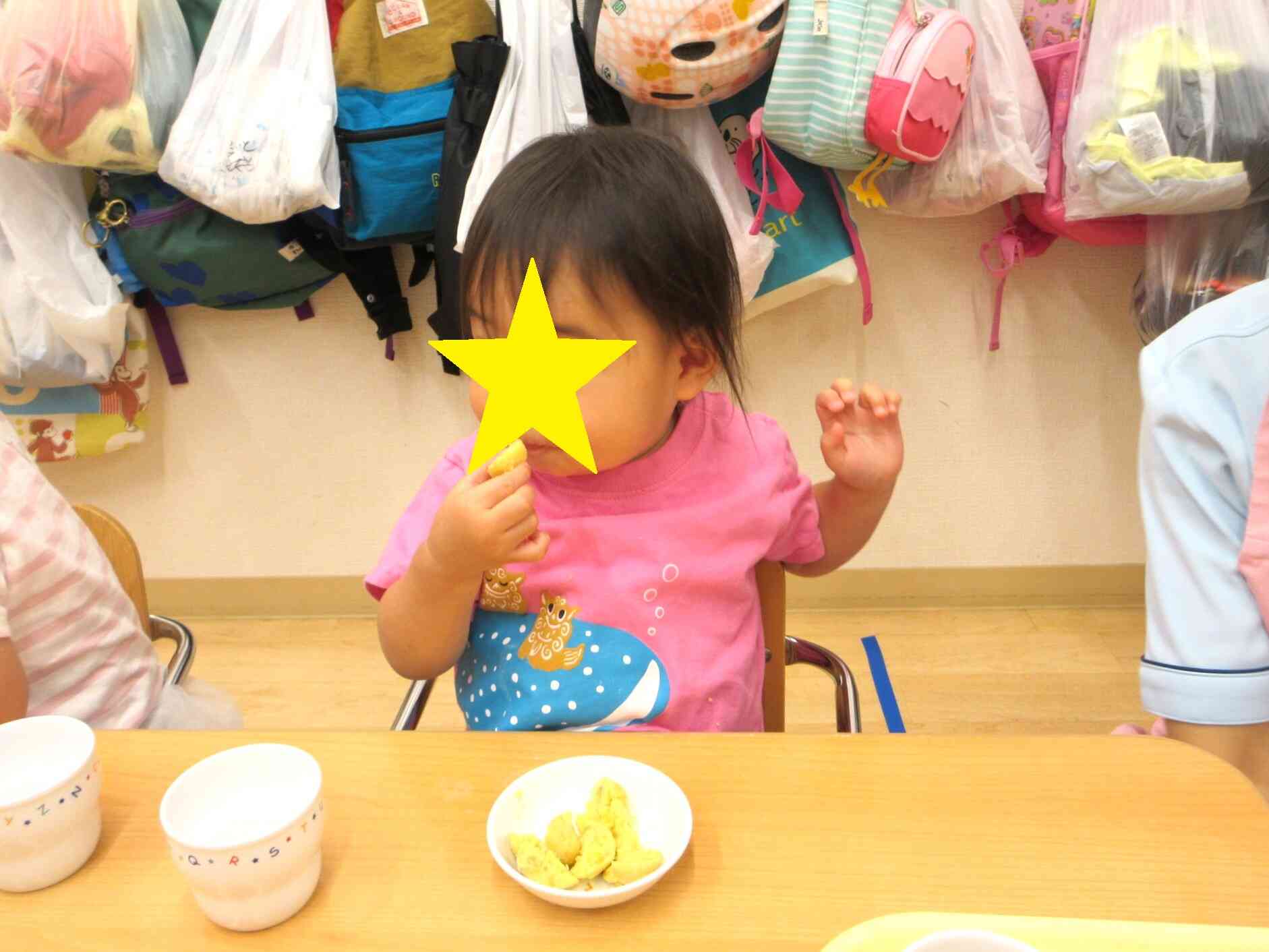 おやつにさつまいものお月見団子を頂きました☆