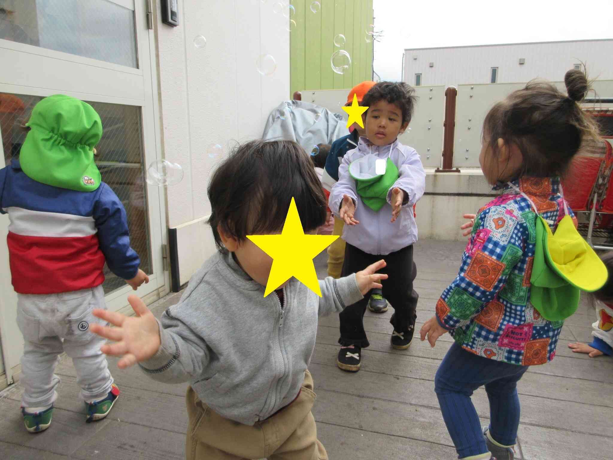 帰ってきてからは玄関でしゃぼん玉を楽しみました♡