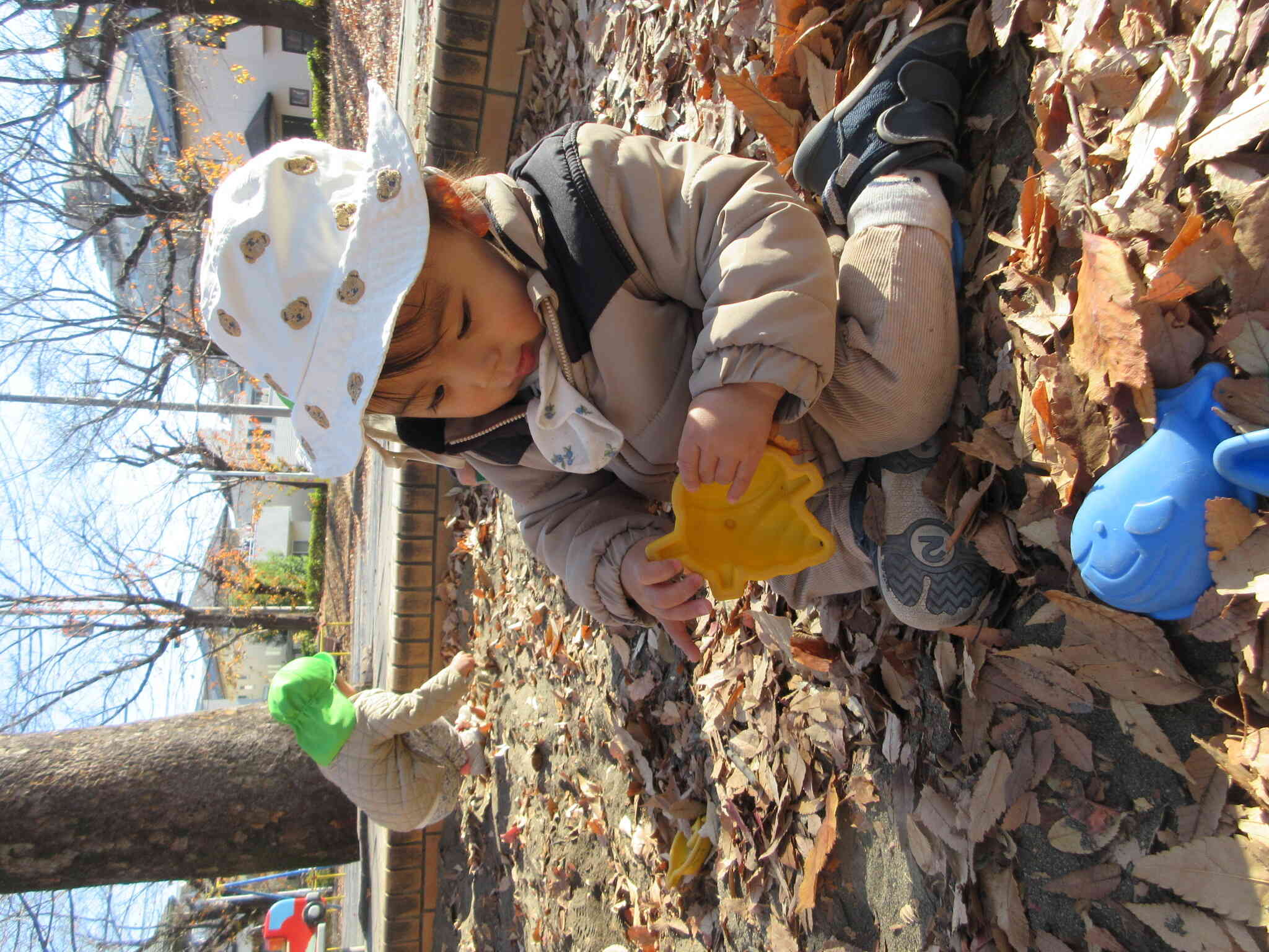 お砂場には葉っぱもいっぱいです