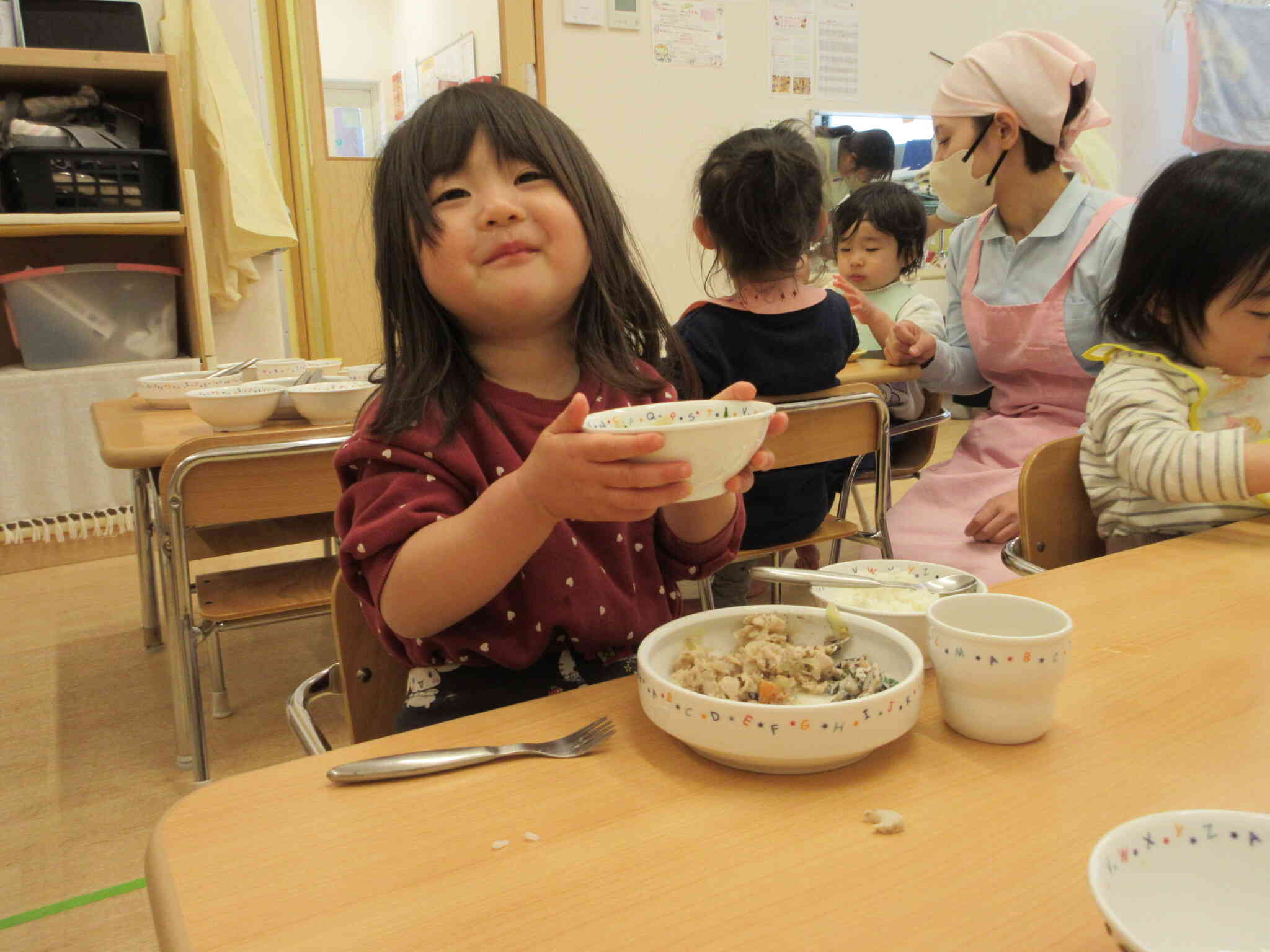 あひる組のお姉さんもモグモグ食べてます。