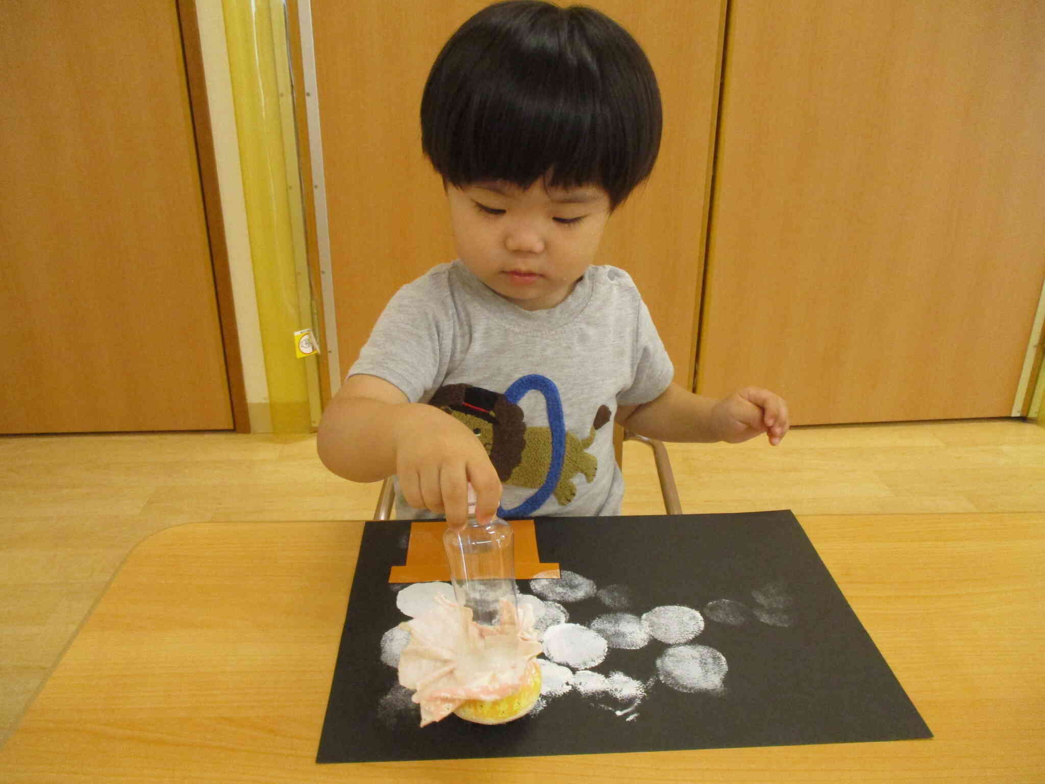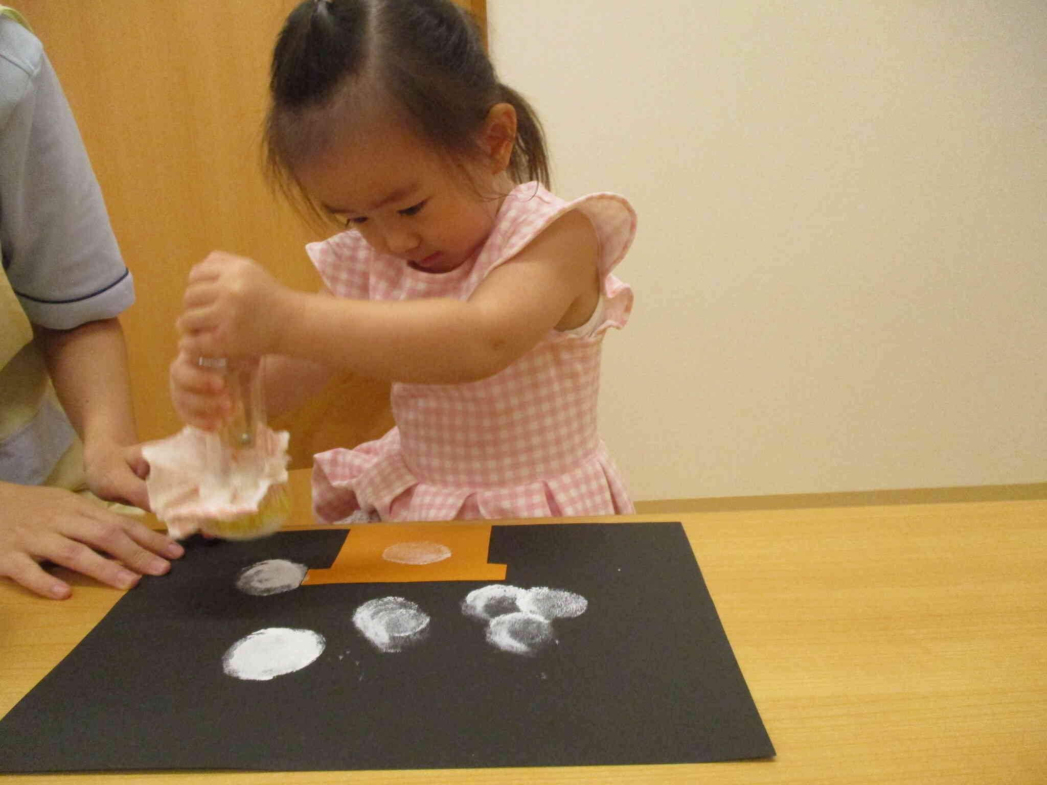 ひよこ組のお友だちも指スタンプでポンポン