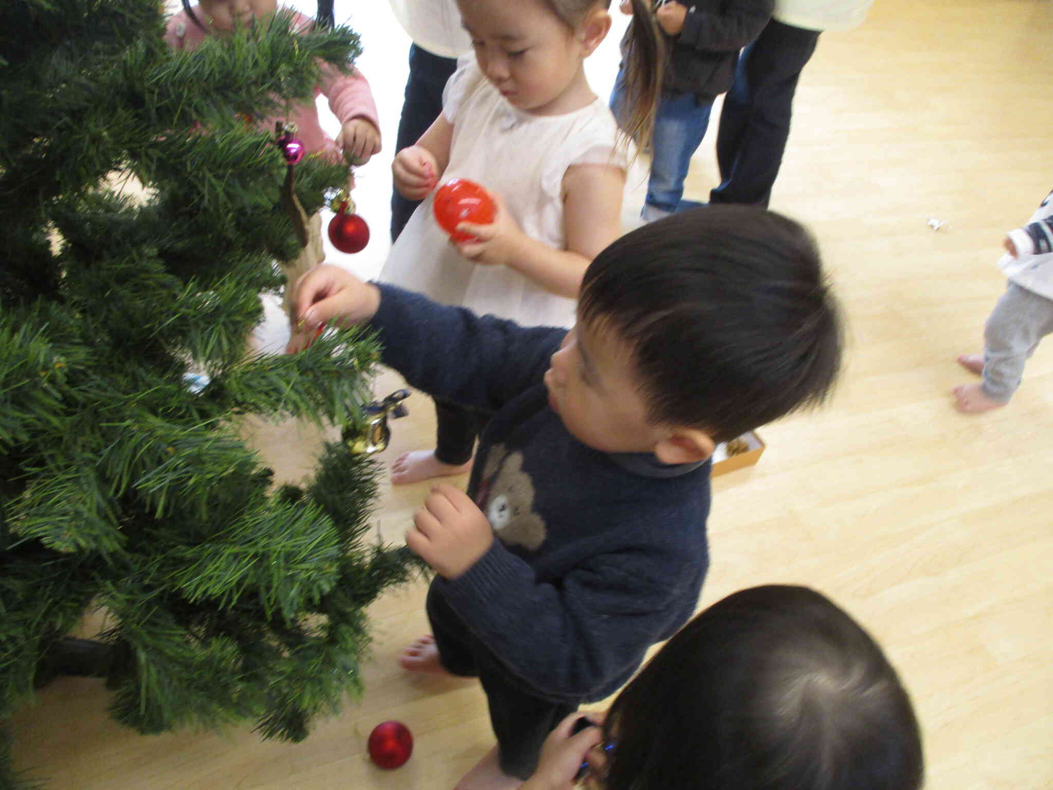 キラキラしたオーナメントに興味津々で嬉しそうに手に取っていましたよ。