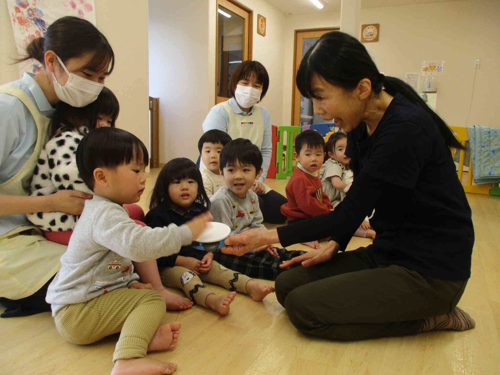 お返事の所では、他の子の真似をして上手に「は~い!」と出来ていました♪