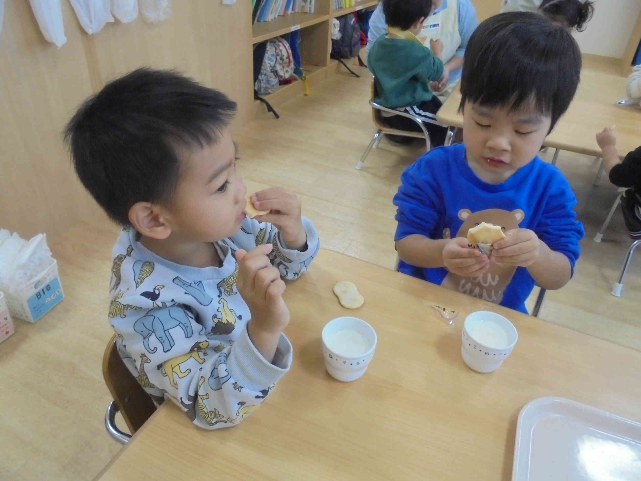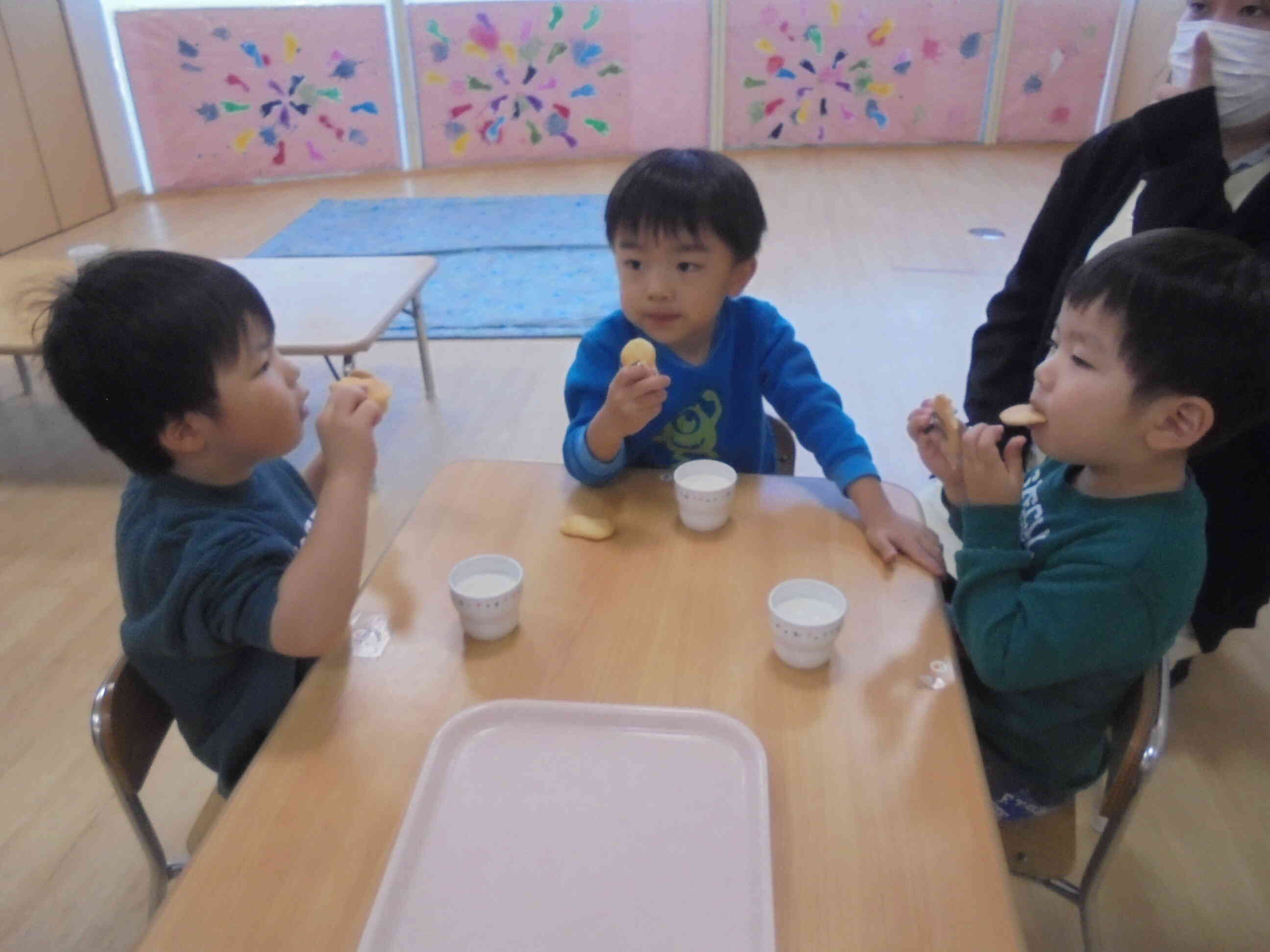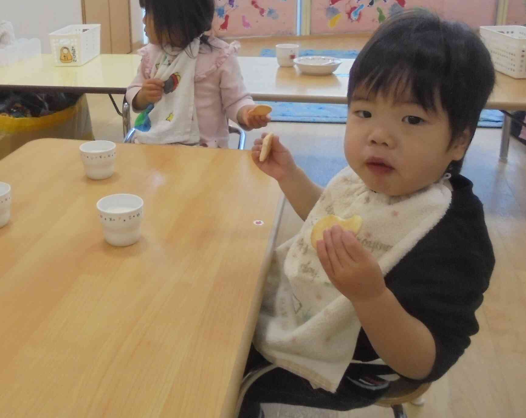 この日の朝のおやつはおせんべいでした。