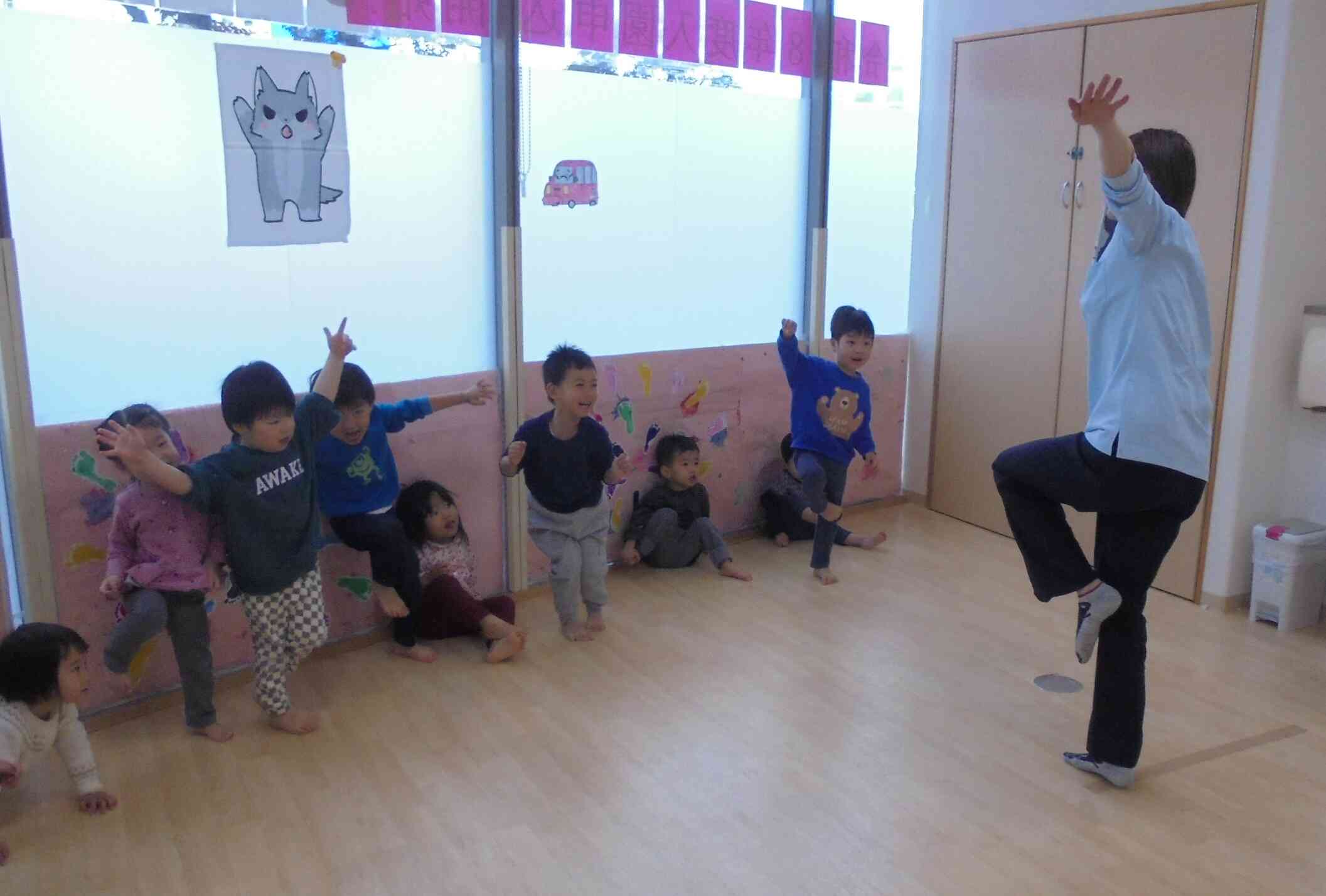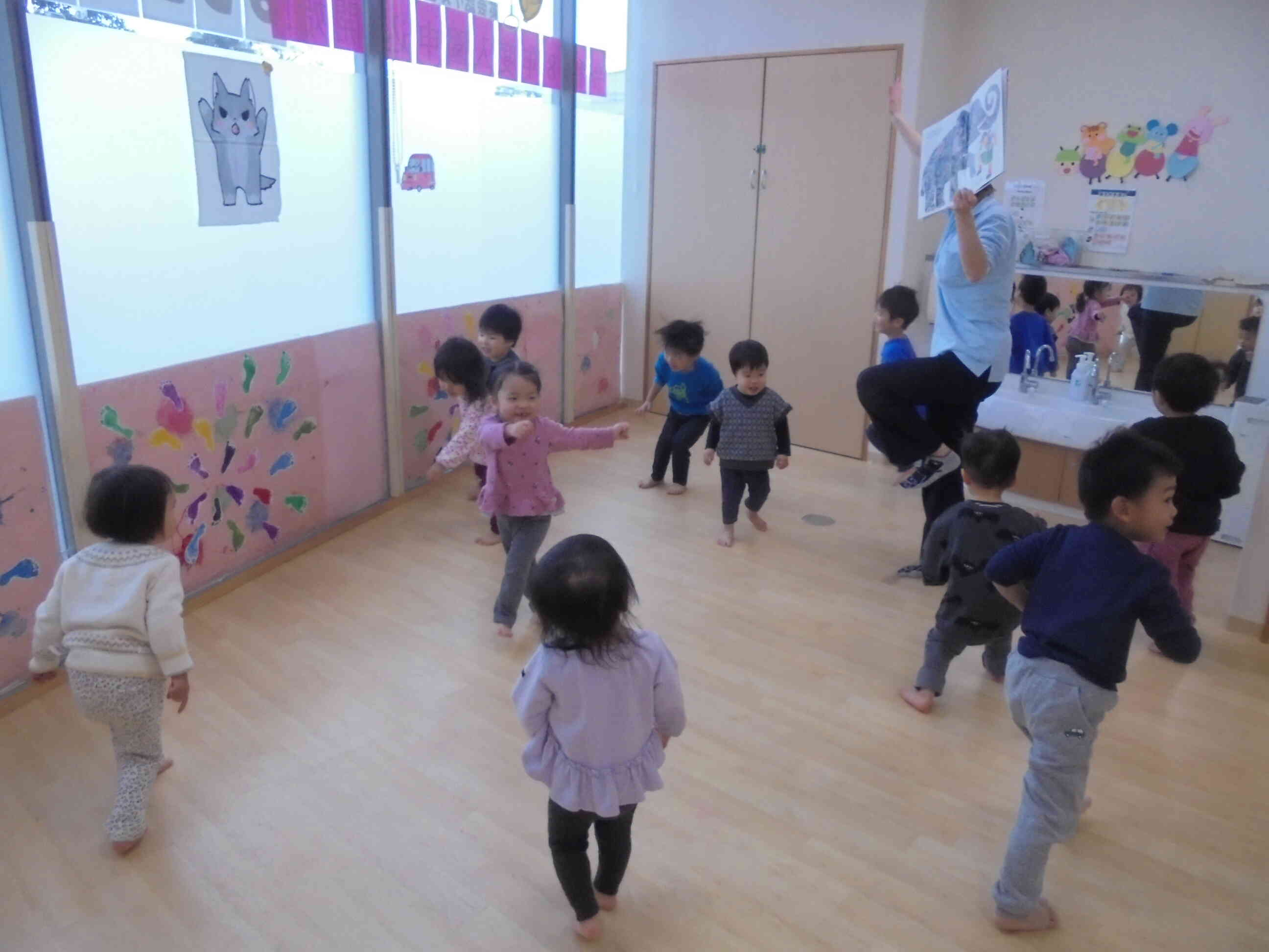 2歳児の動きを見て真似するのが楽しい1歳児のお友だち。