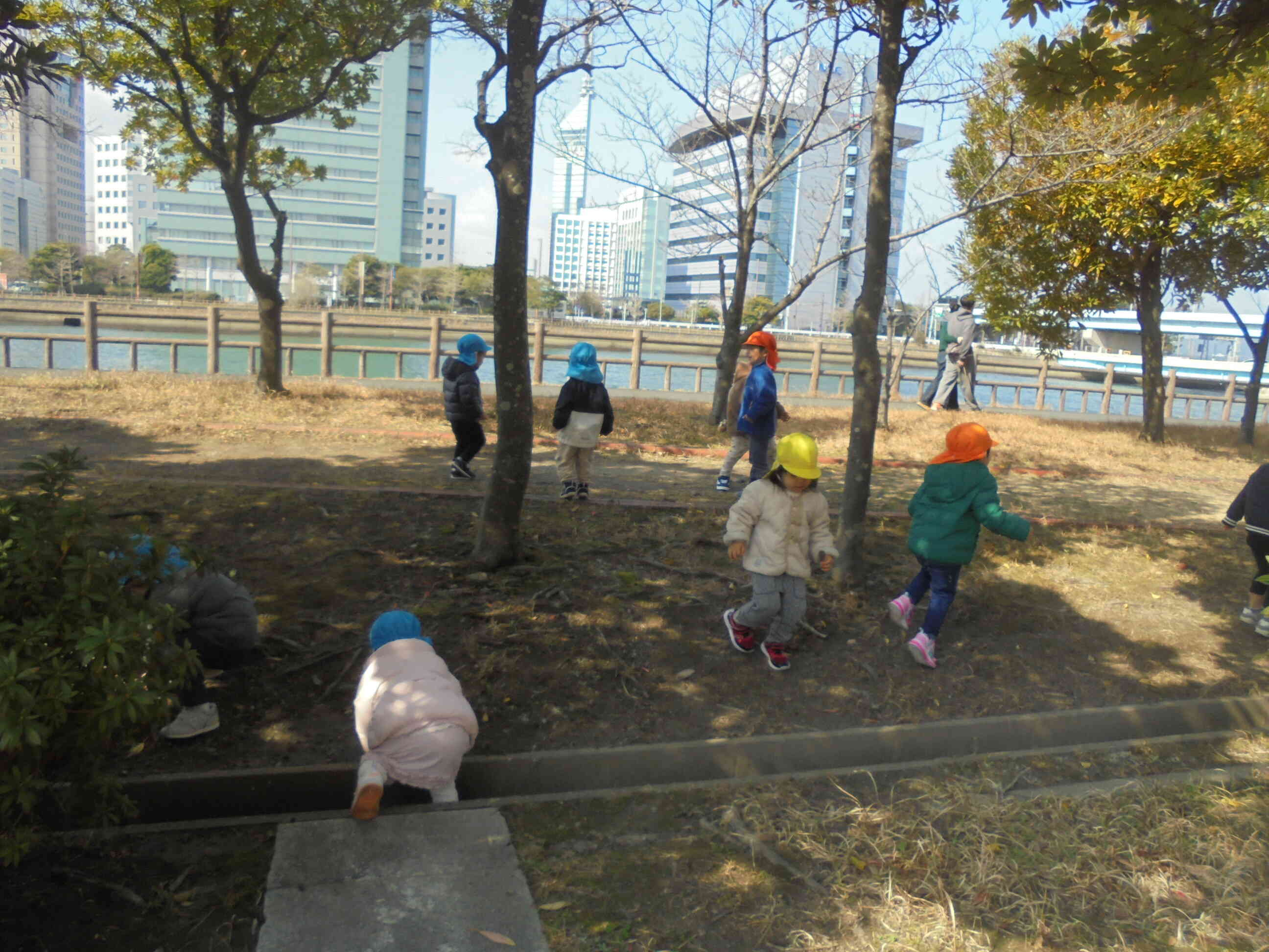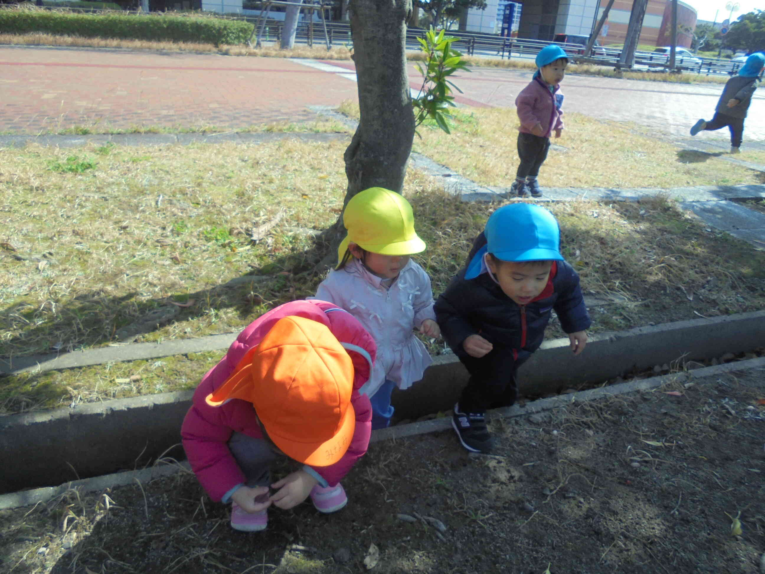 一人が座ると真似っこしたいお年頃…。公園の中には子どもの達の興味をそそるものがいっぱい!足元に気を付けながら探検します。