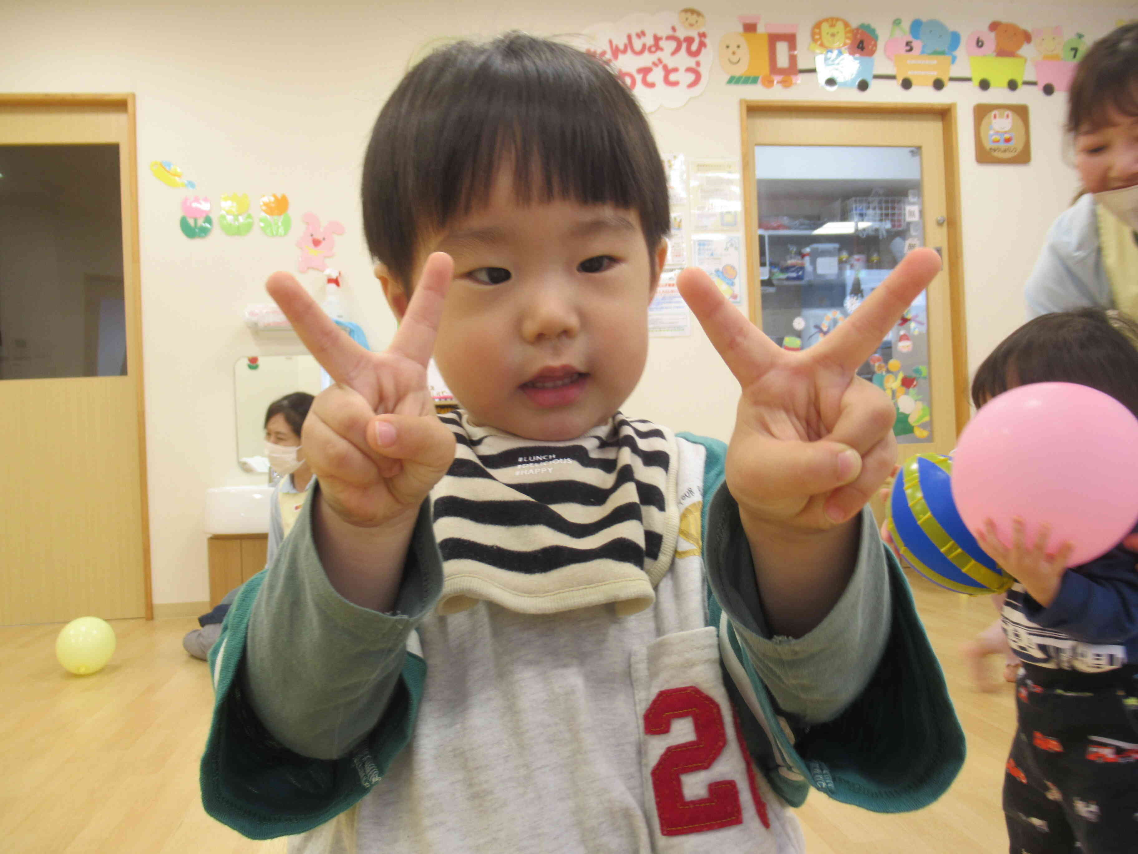 うさぎ組さんは動きも活発になって、上手に風船で遊べるようになりましたね。