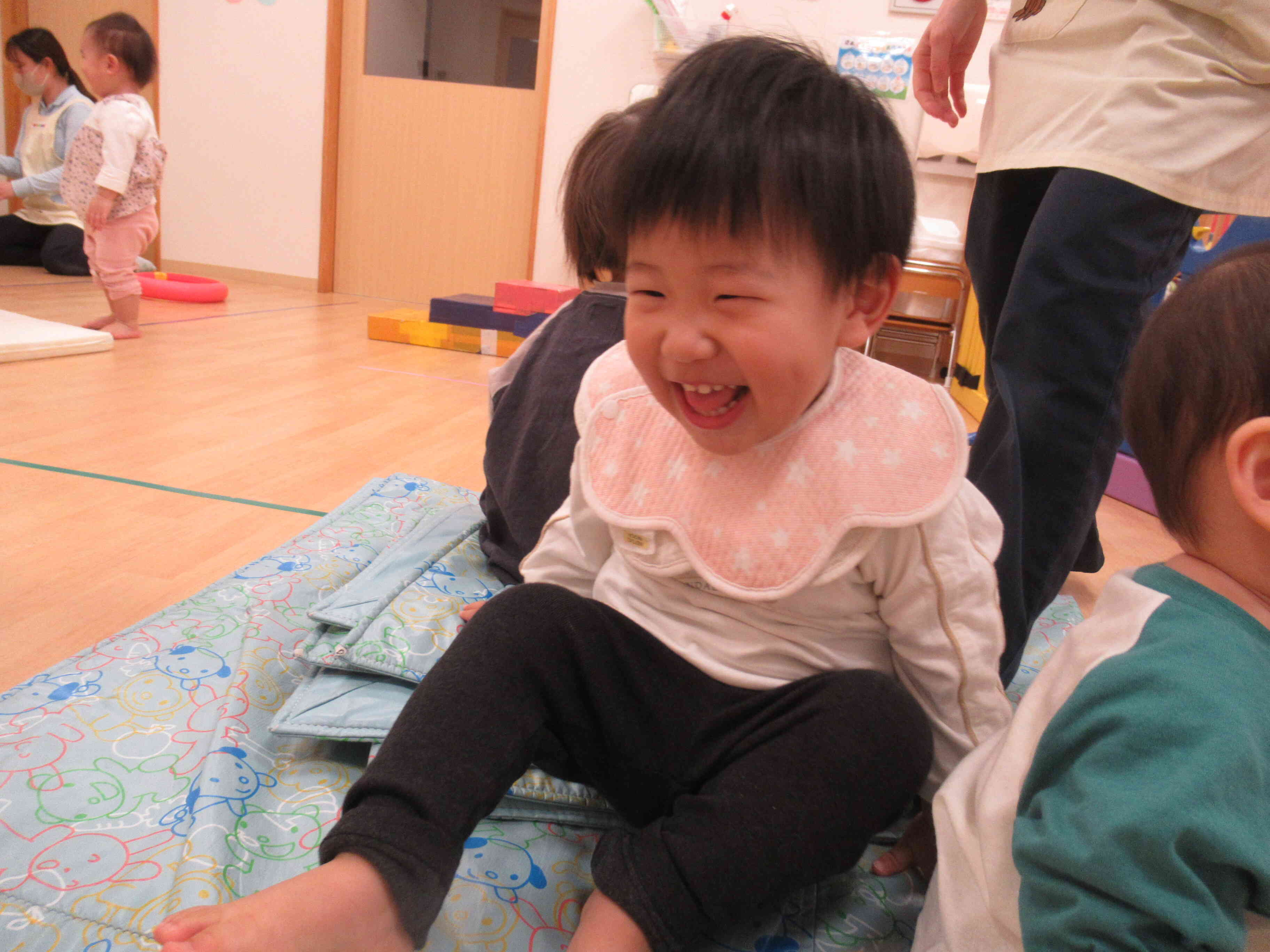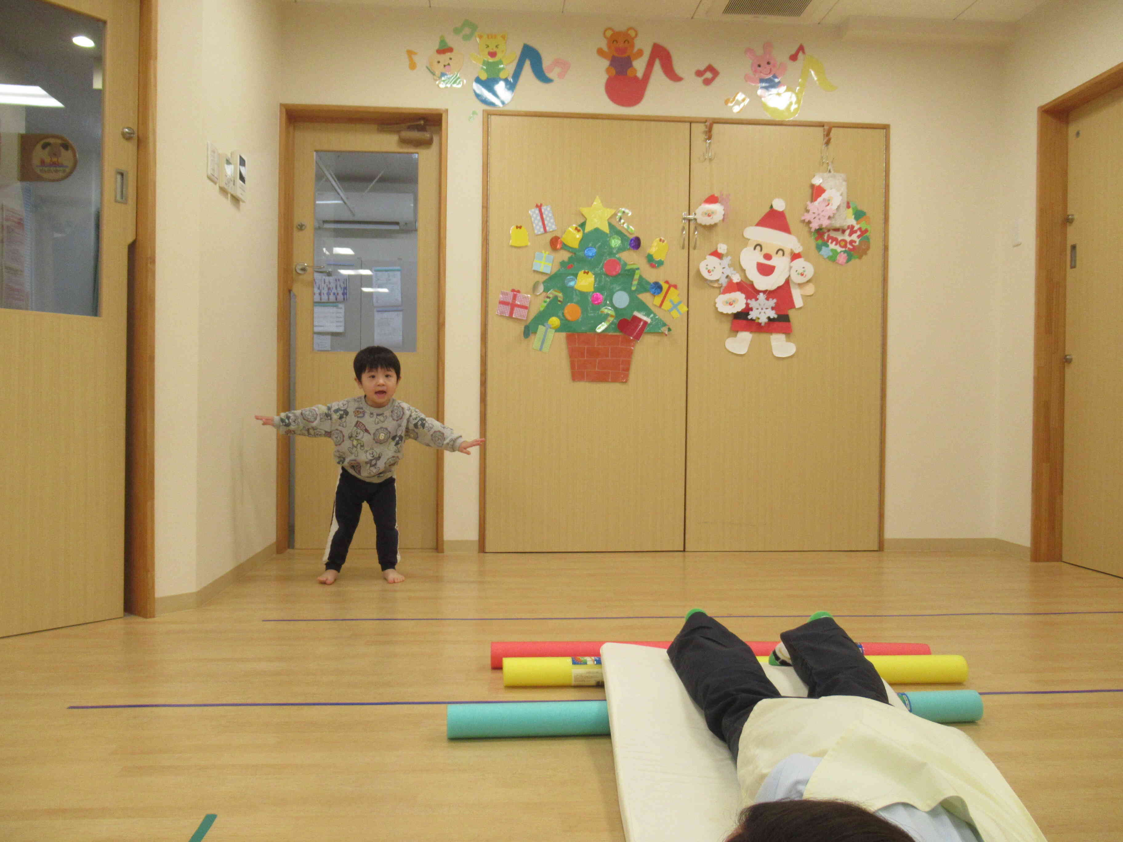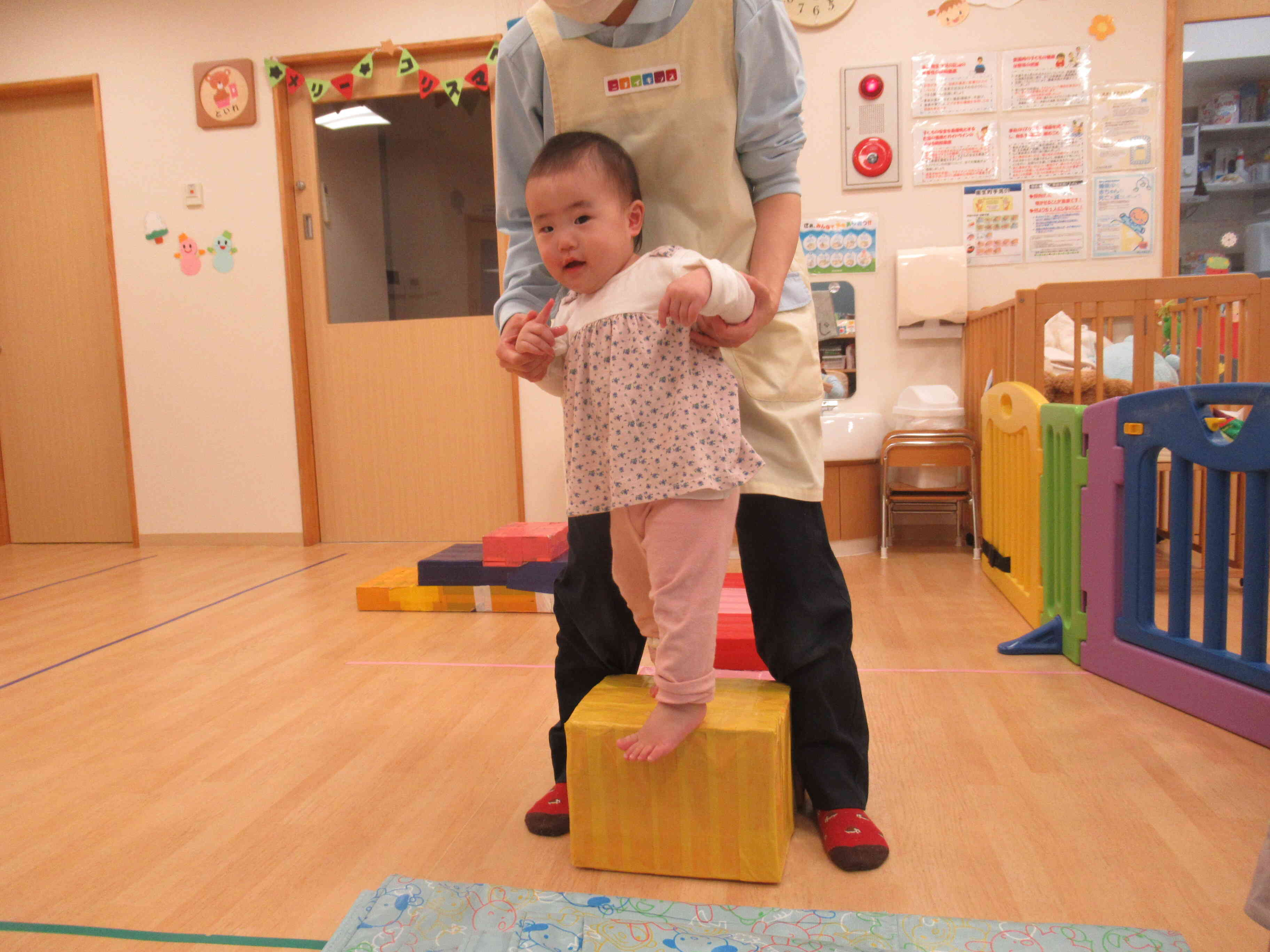 ハイハイで輪っかをくぐってみたり、障害物をのぼって、おりていっぱい体を動かしました。
