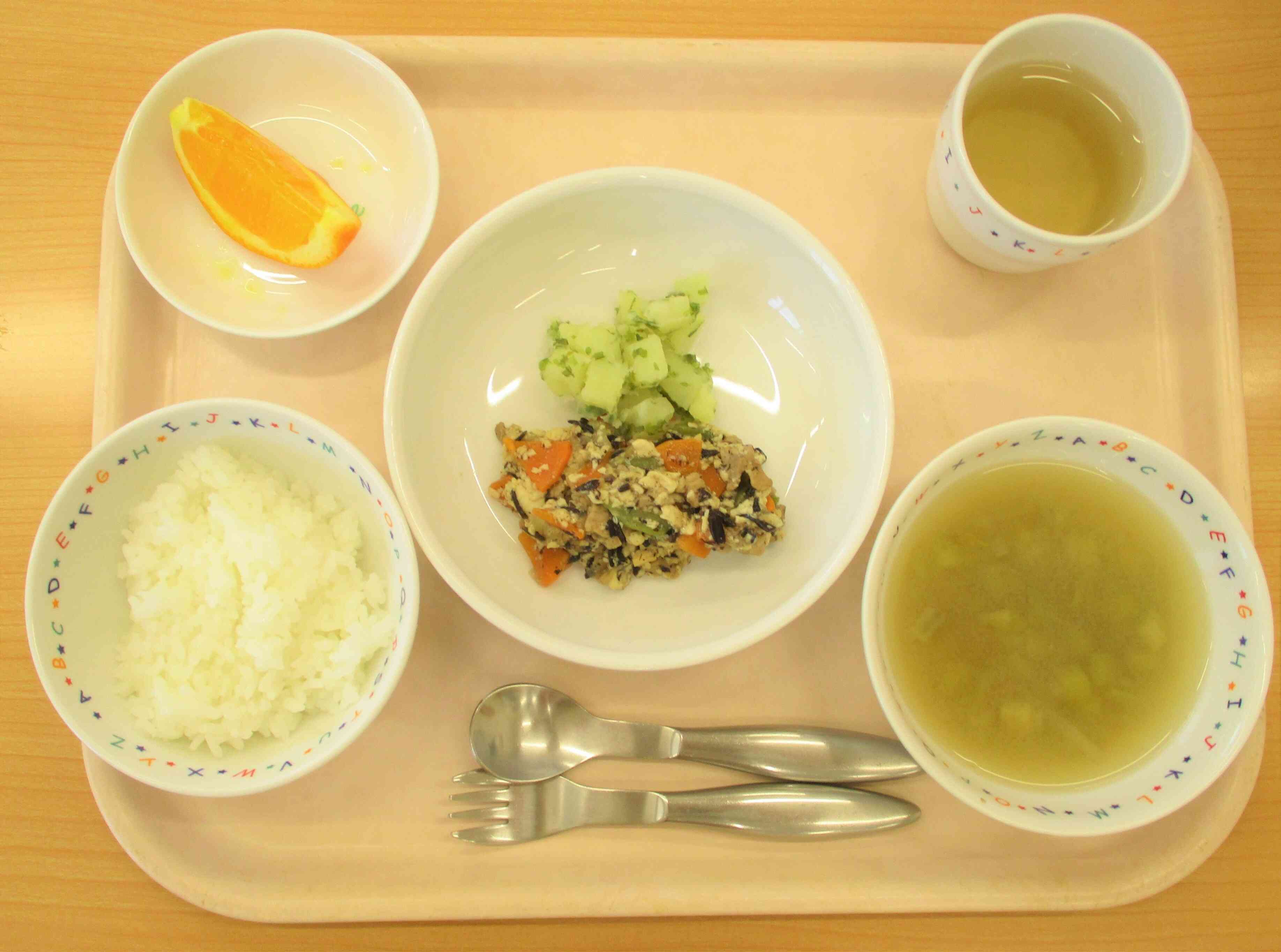 カミカミドライカレー、ささみと春雨のスープ、かぶの中華サラダ、りんごです!
