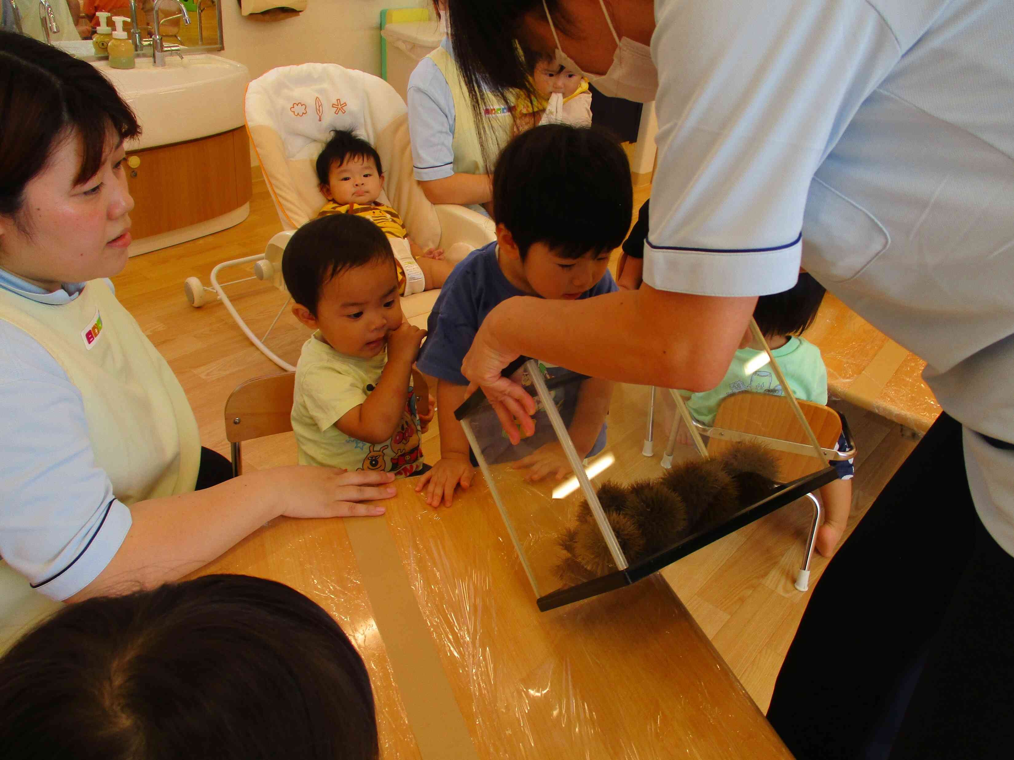 秋の風物詩、ススキに触れたり、イガ付き栗の観察をしました。