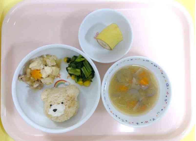 秋のお誕生日会!ということでトンボさんをモチーフにしたお誕生日メニューでした! 「とんぼのめがね」を毎朝歌っていることもあり、思わず口づさむお友だちもいましたよ!