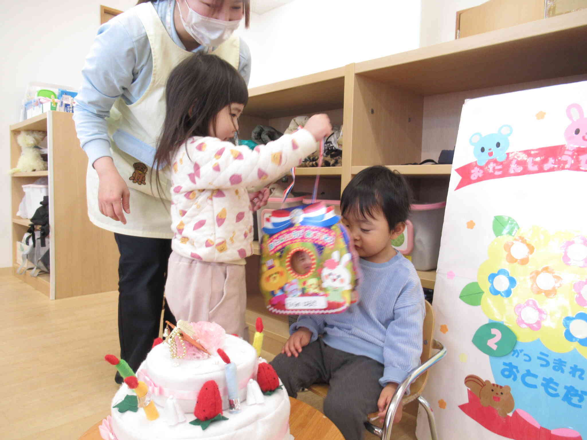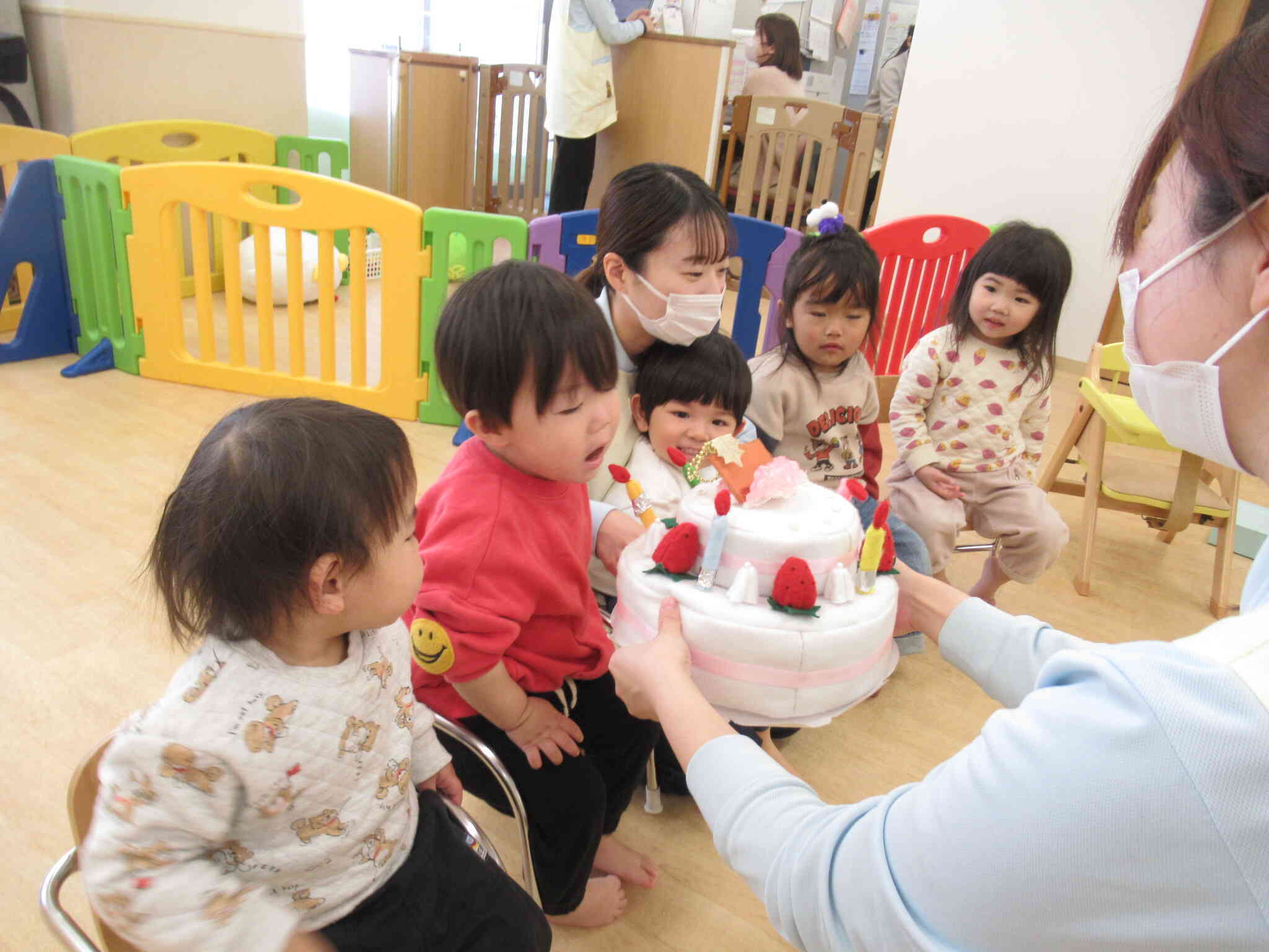 みんなとケーキをいただきまーす(´~`)