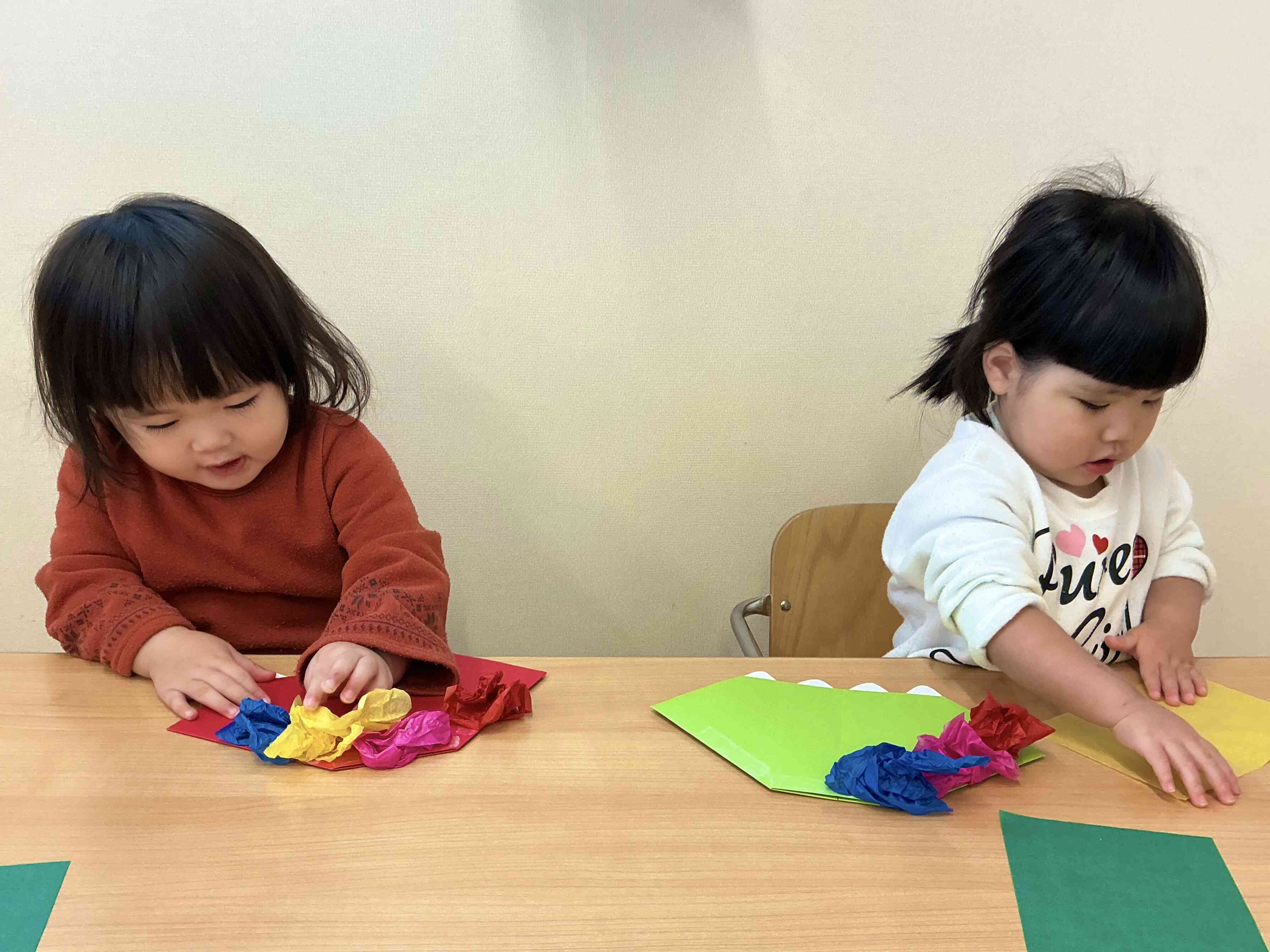 完成したお面を見て「鬼つける〜」と嬉しそうにしていた子ども達。