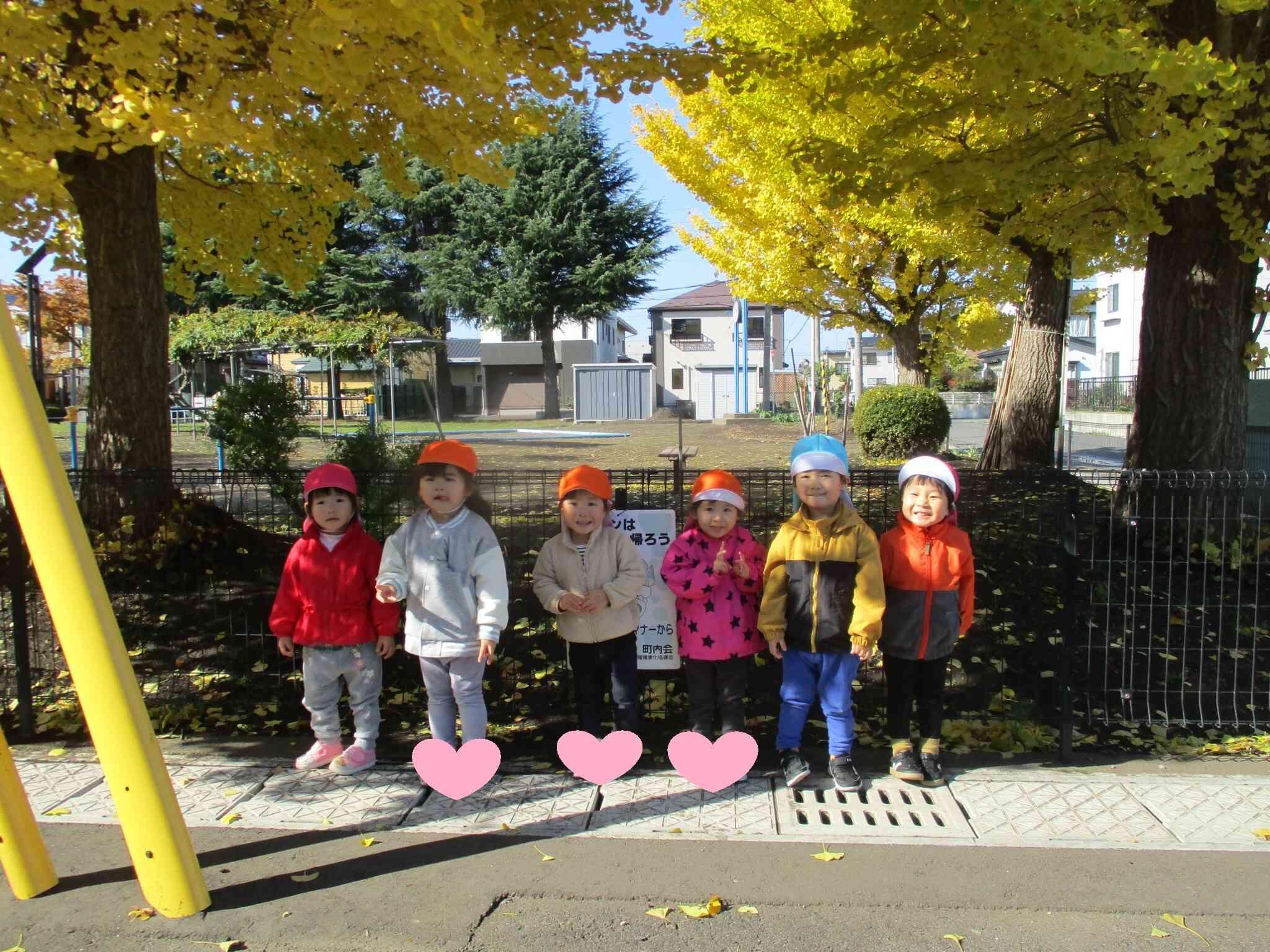 公園に行った子ども達はいちょうの木の下でいっぱい遊んできました。