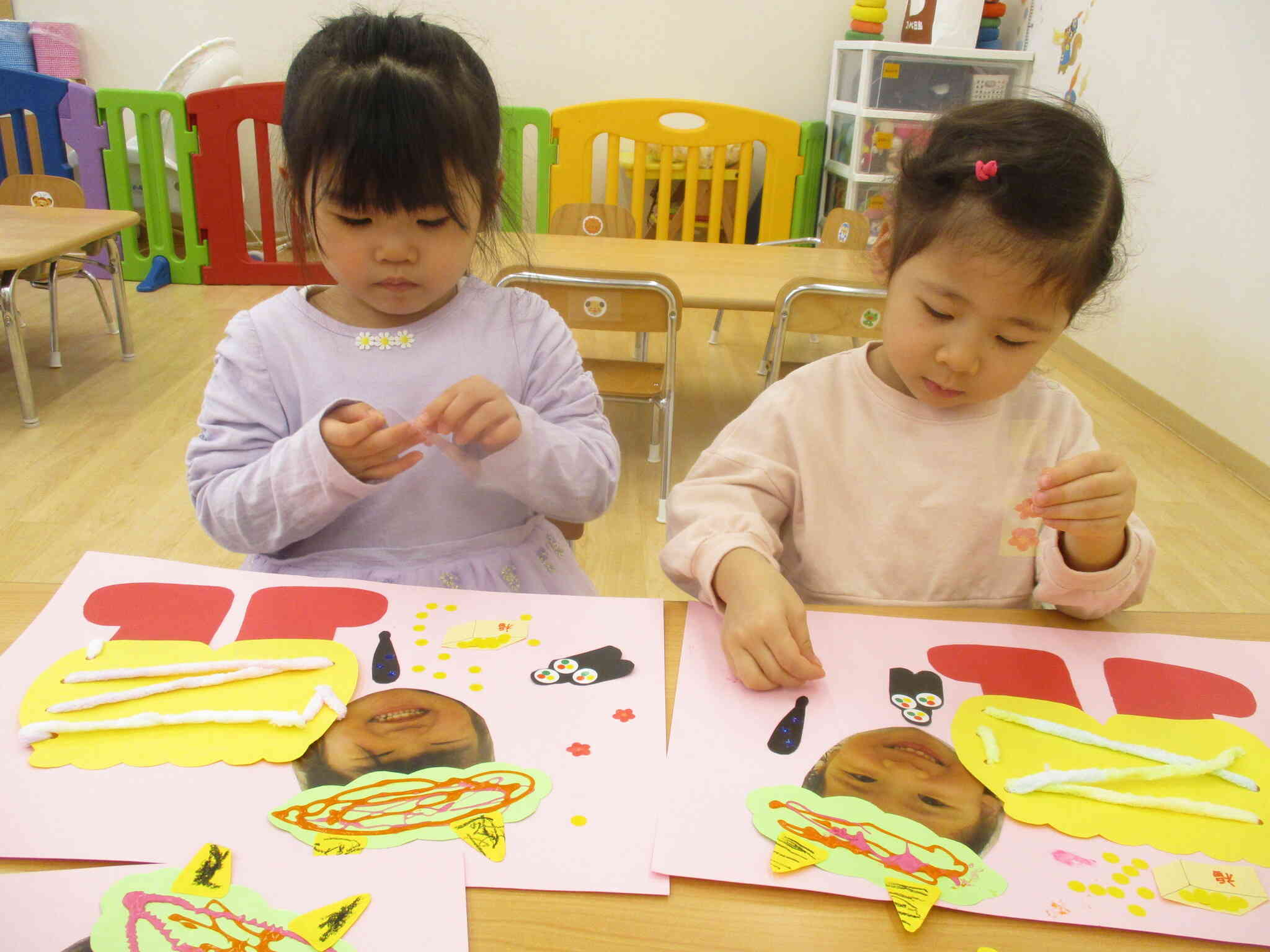 バランスを見て上手に貼っていく姿は、さすが2歳児さんだなと感心しました。