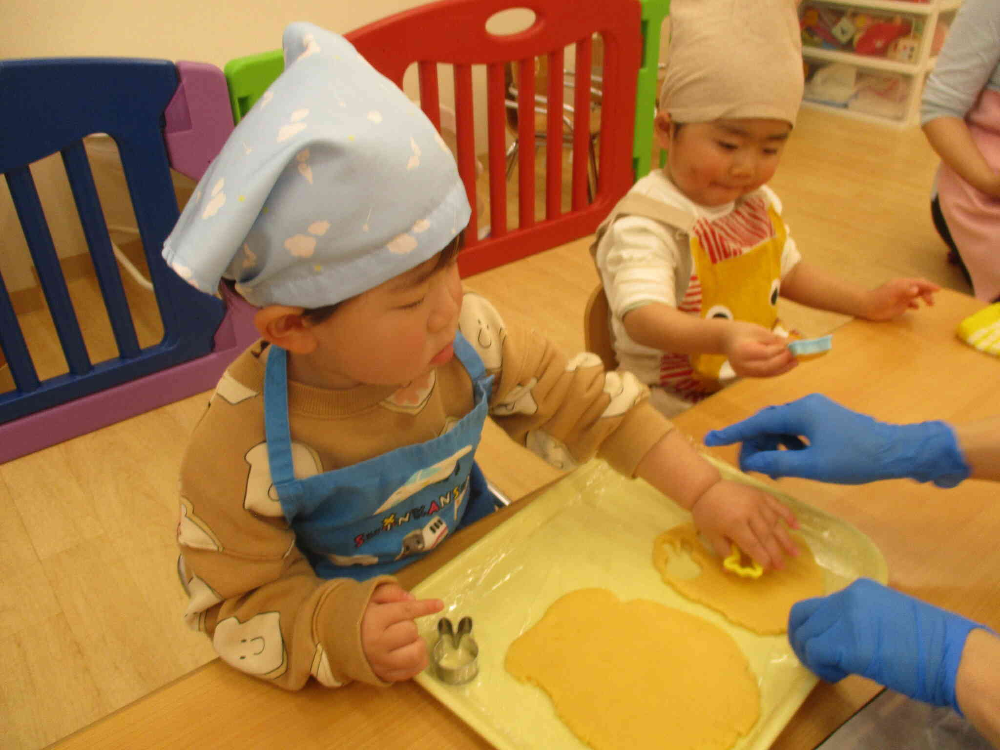 みんなが型抜きをしてくれたクッキー、可愛くて食べるのが勿体無いけど、おやつの時の子ども達の反応がとても楽しみですね。