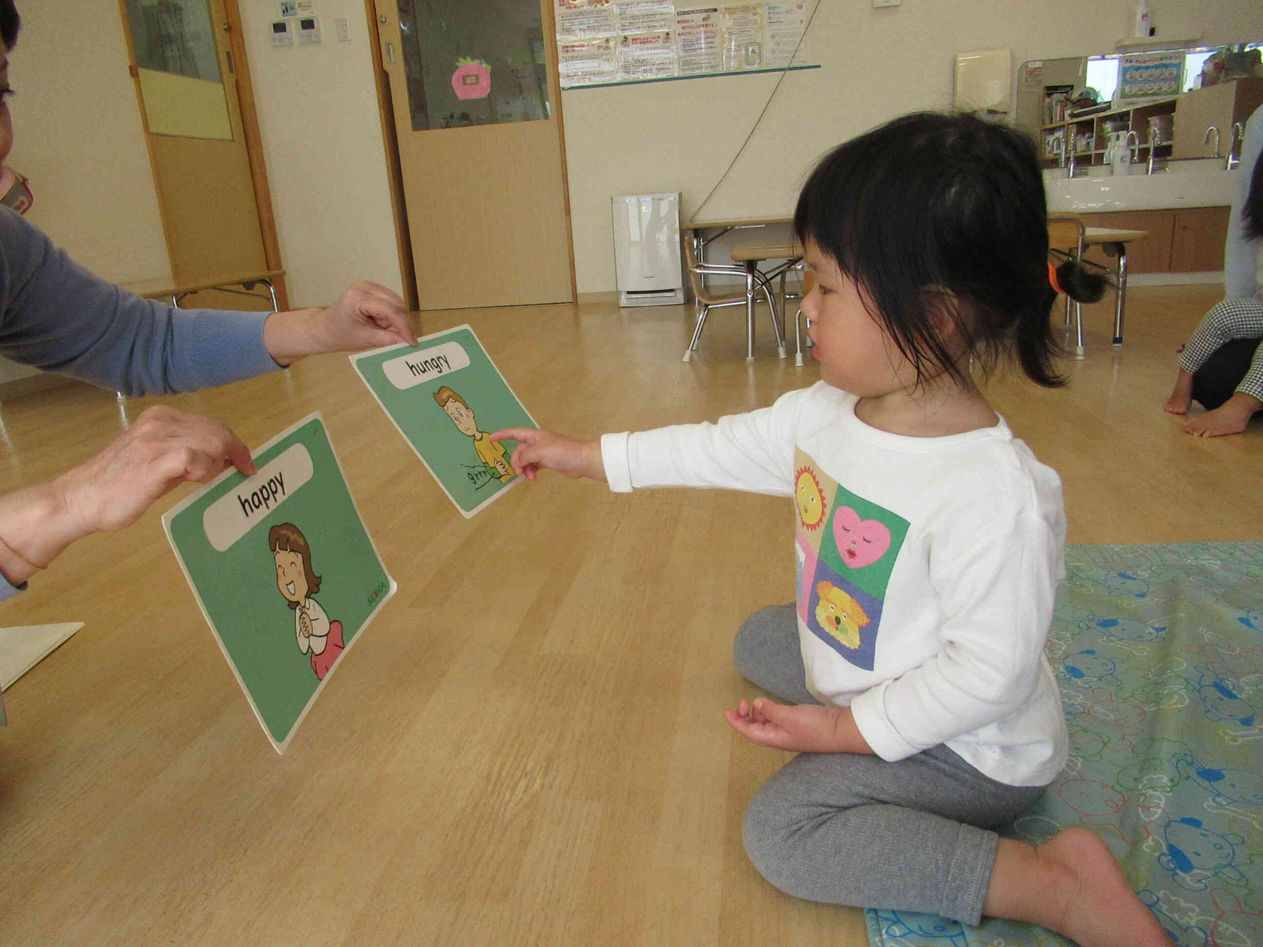 体を動かしたり、お歌を歌ったり、カードを選んだり