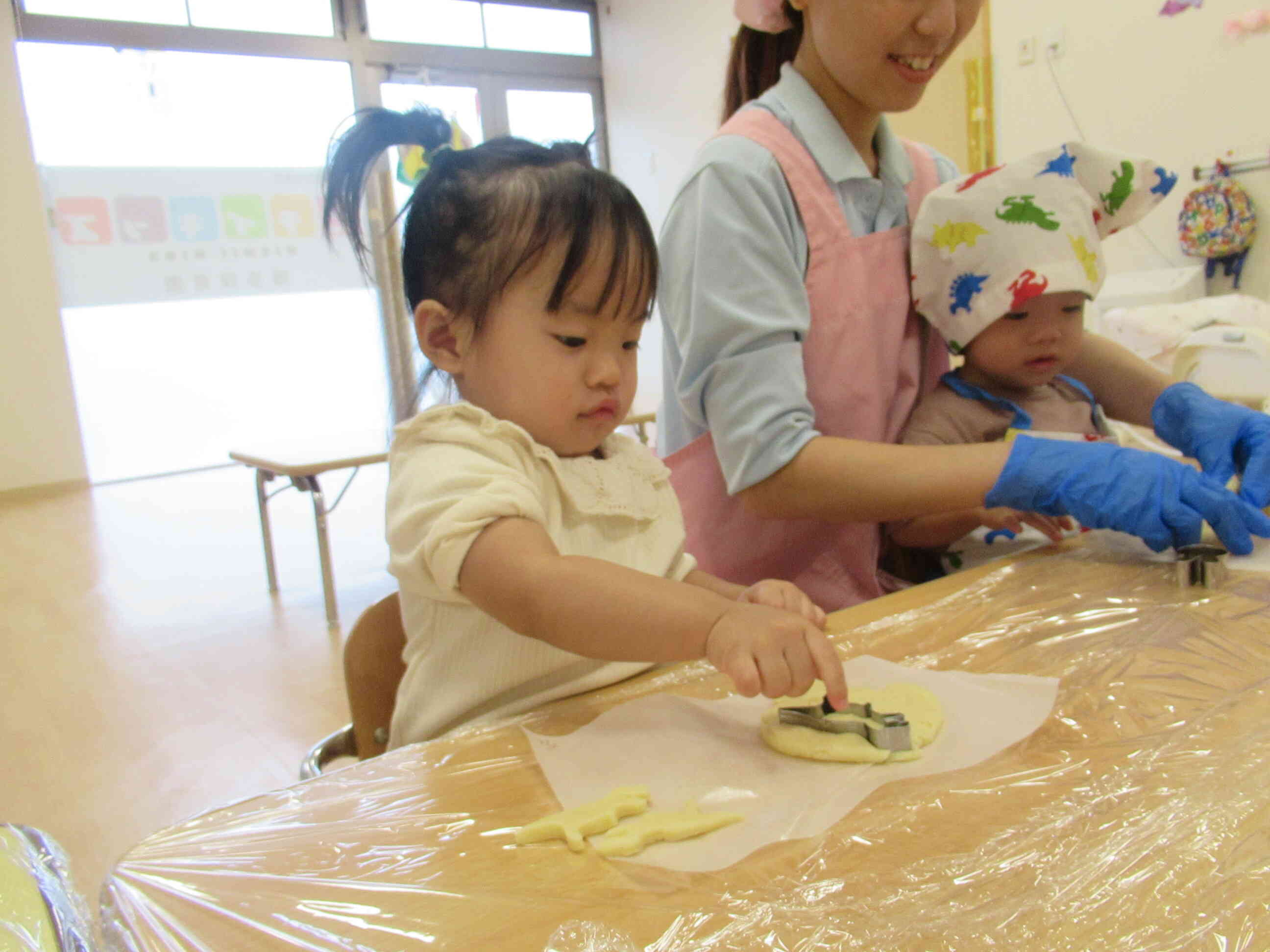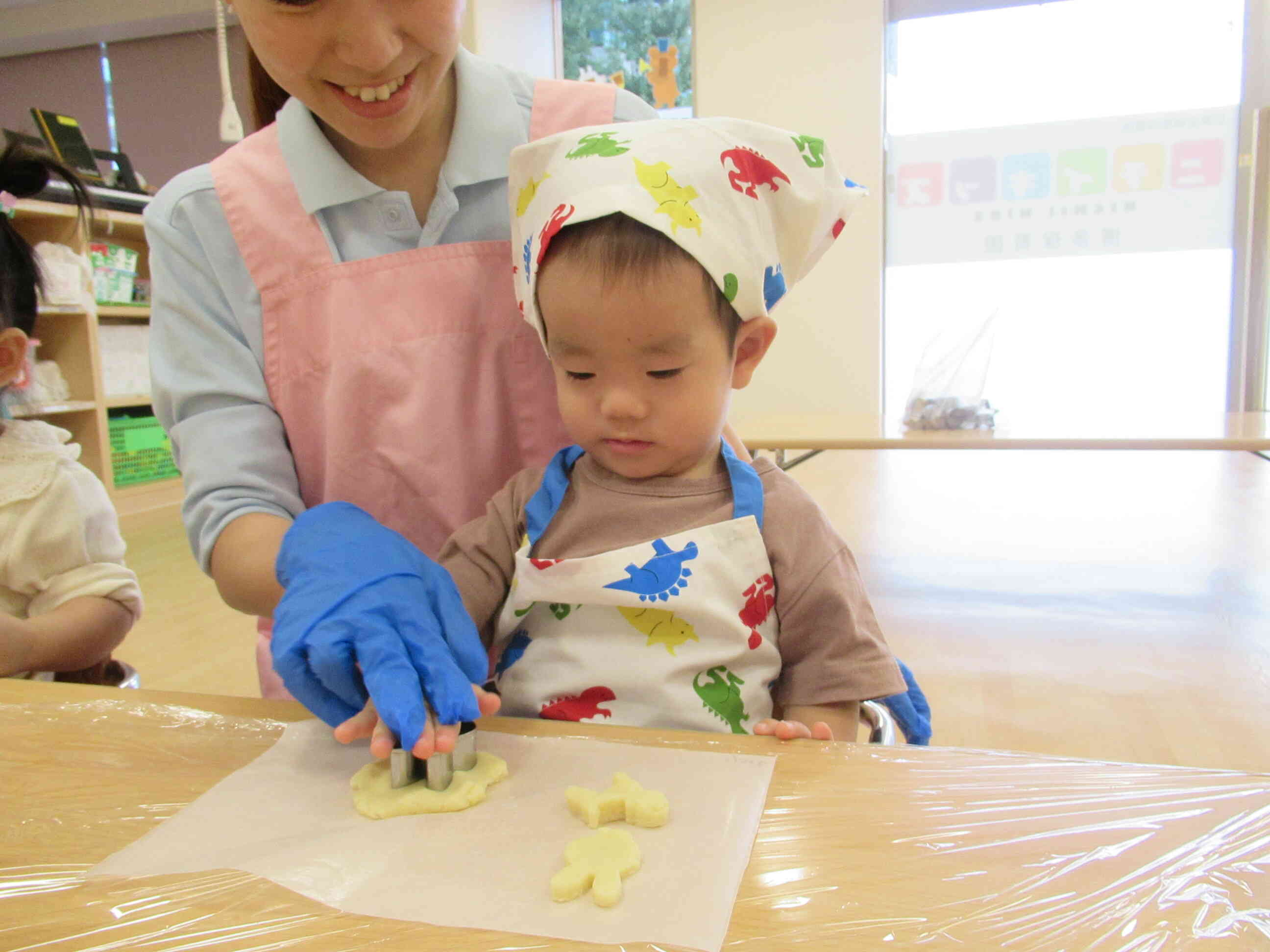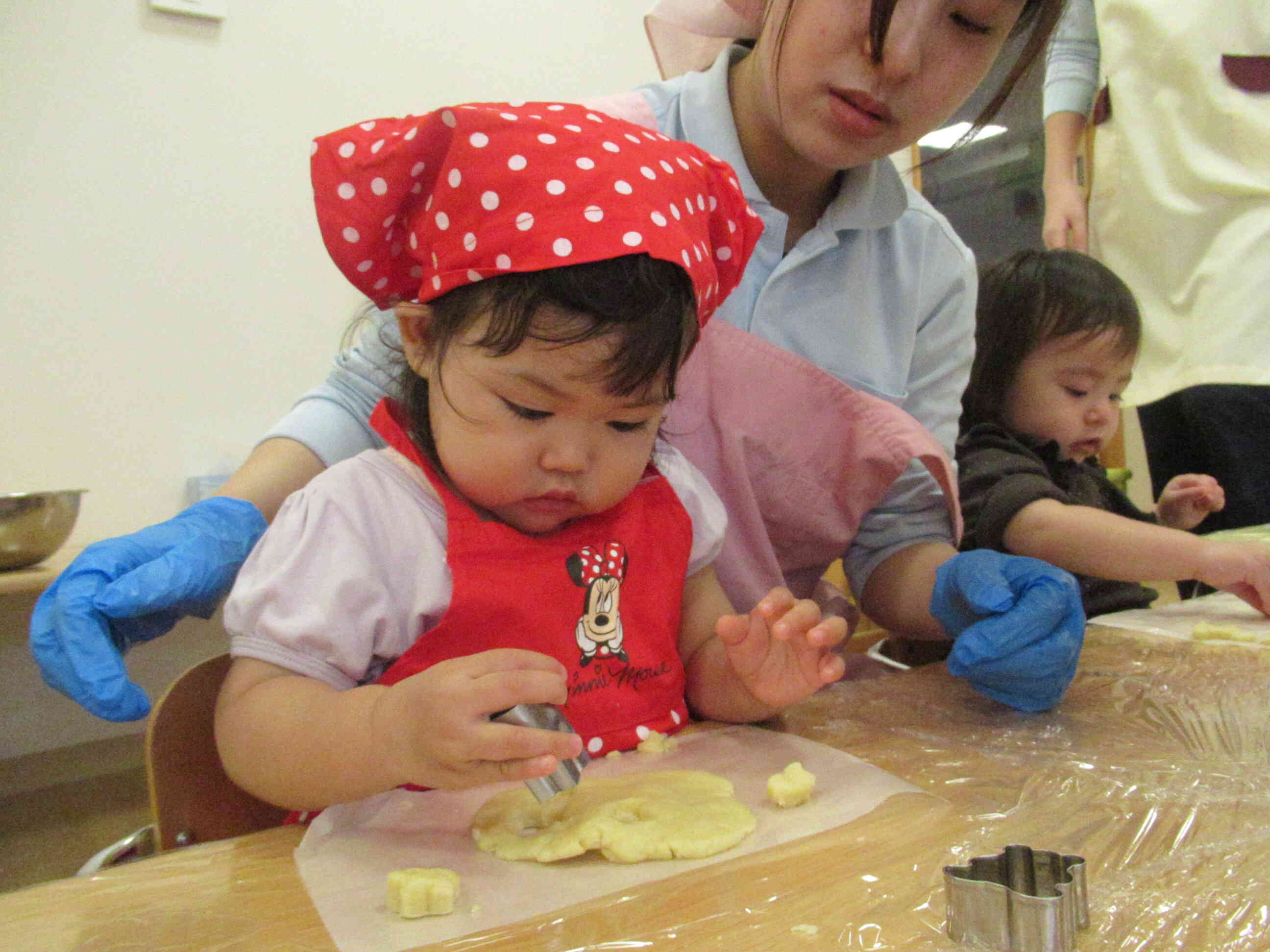 クッキーの生地が配られると、「よいしょよいしょ」と嬉しそうにこねていましたよ。