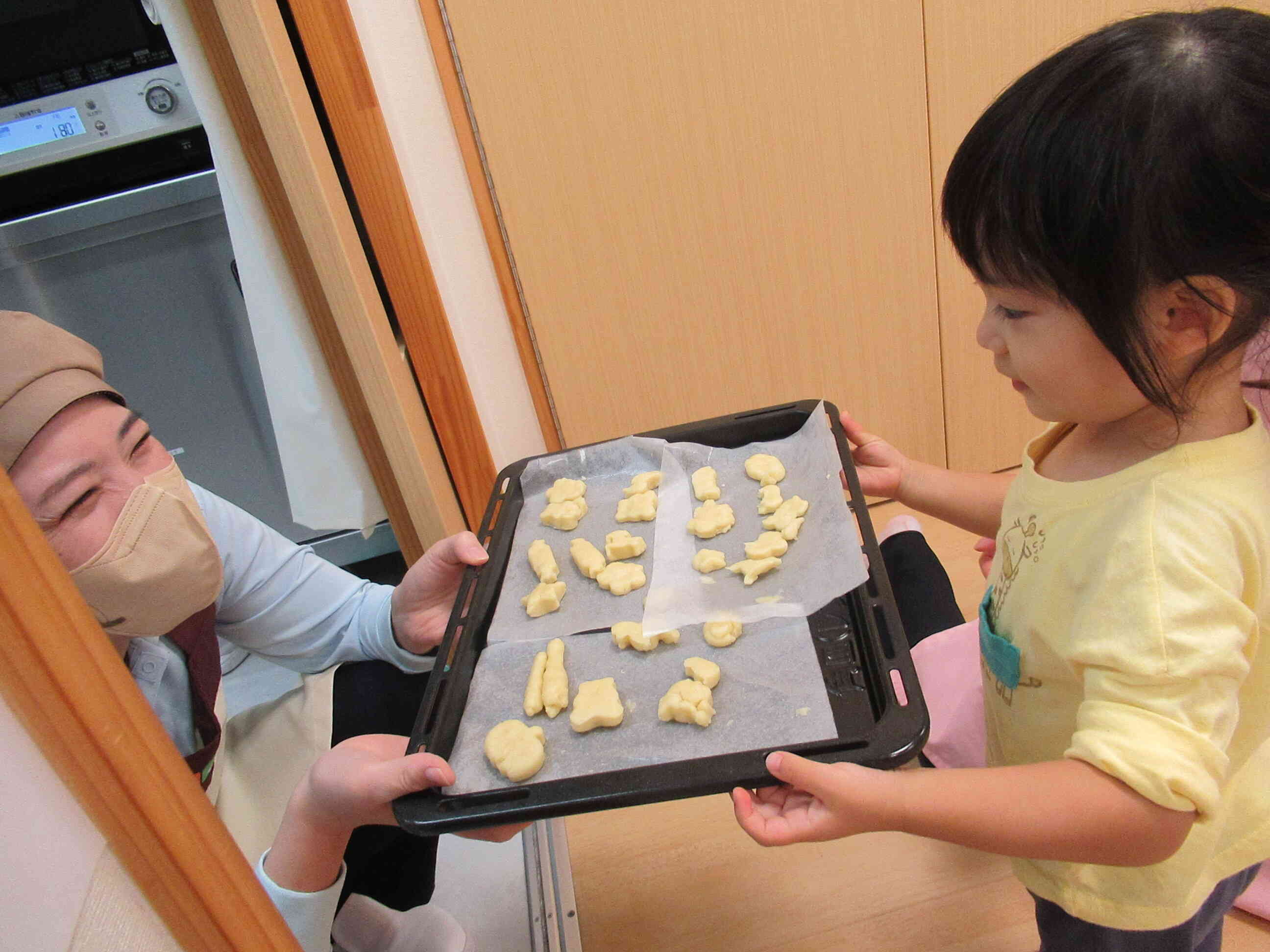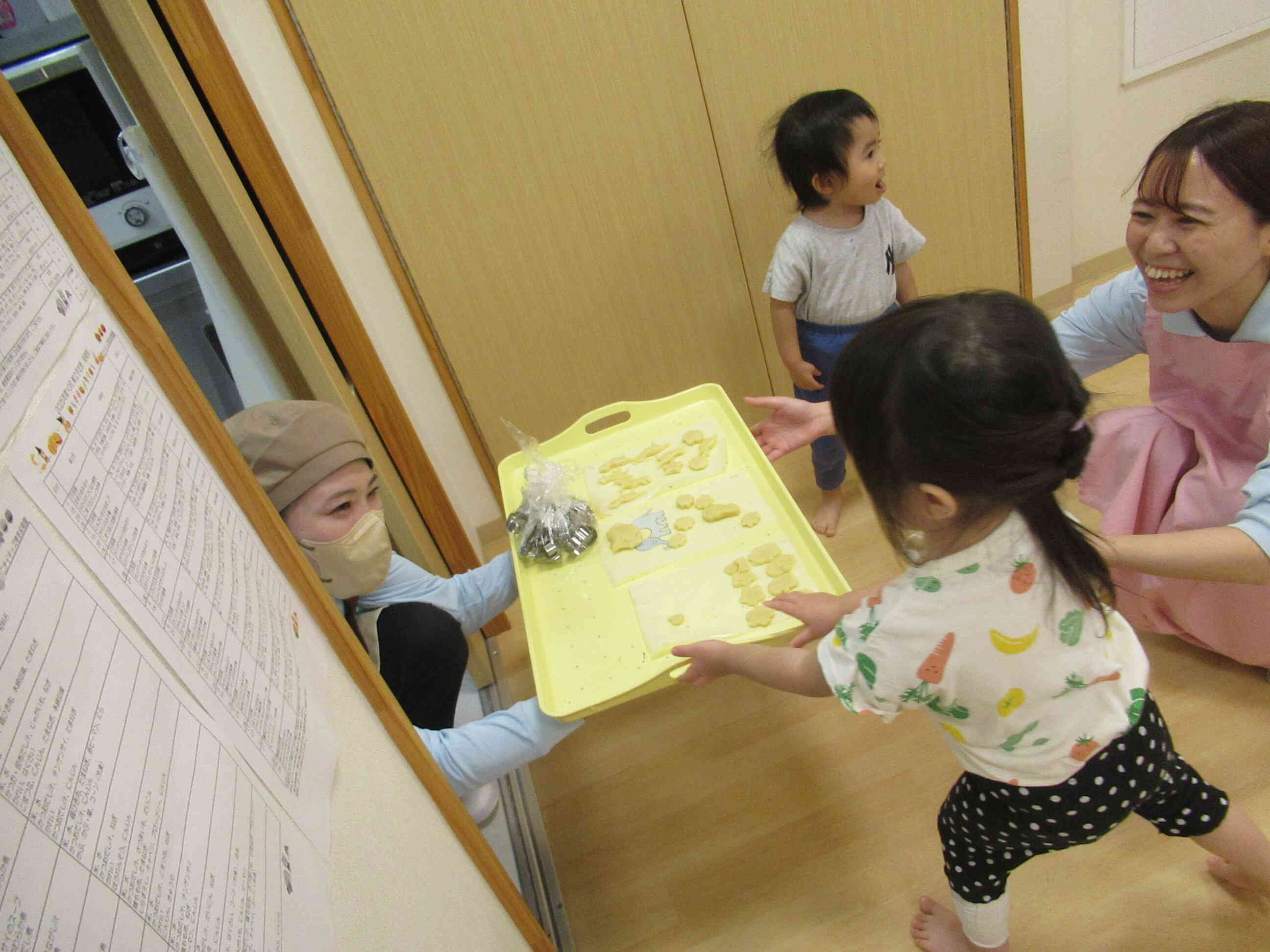 「〇〇ちゃん(くん)がつくったんだよ~」と自分で作ったクッキーをとっても嬉しそうに食べていた子どもたちでしたよ!