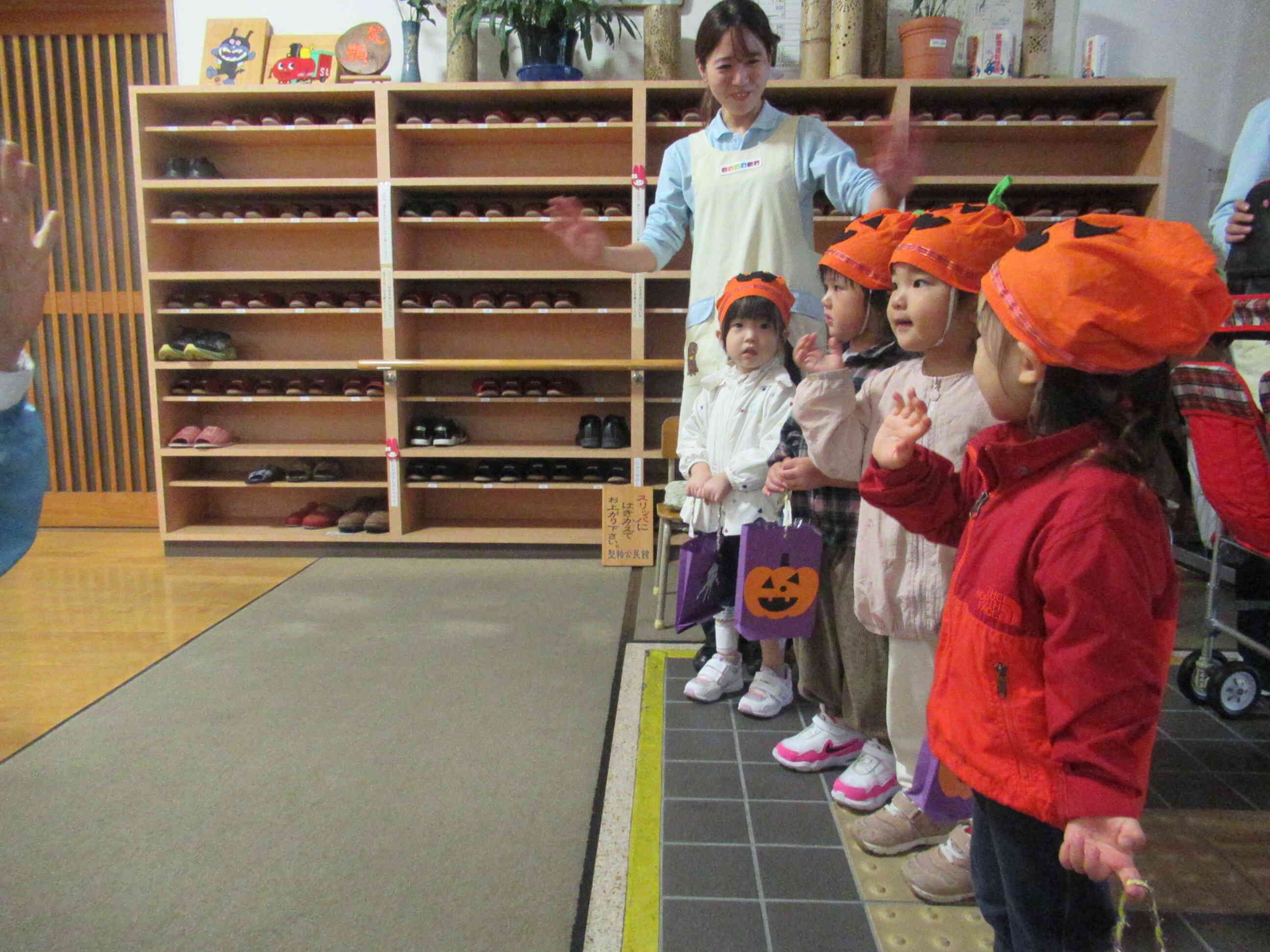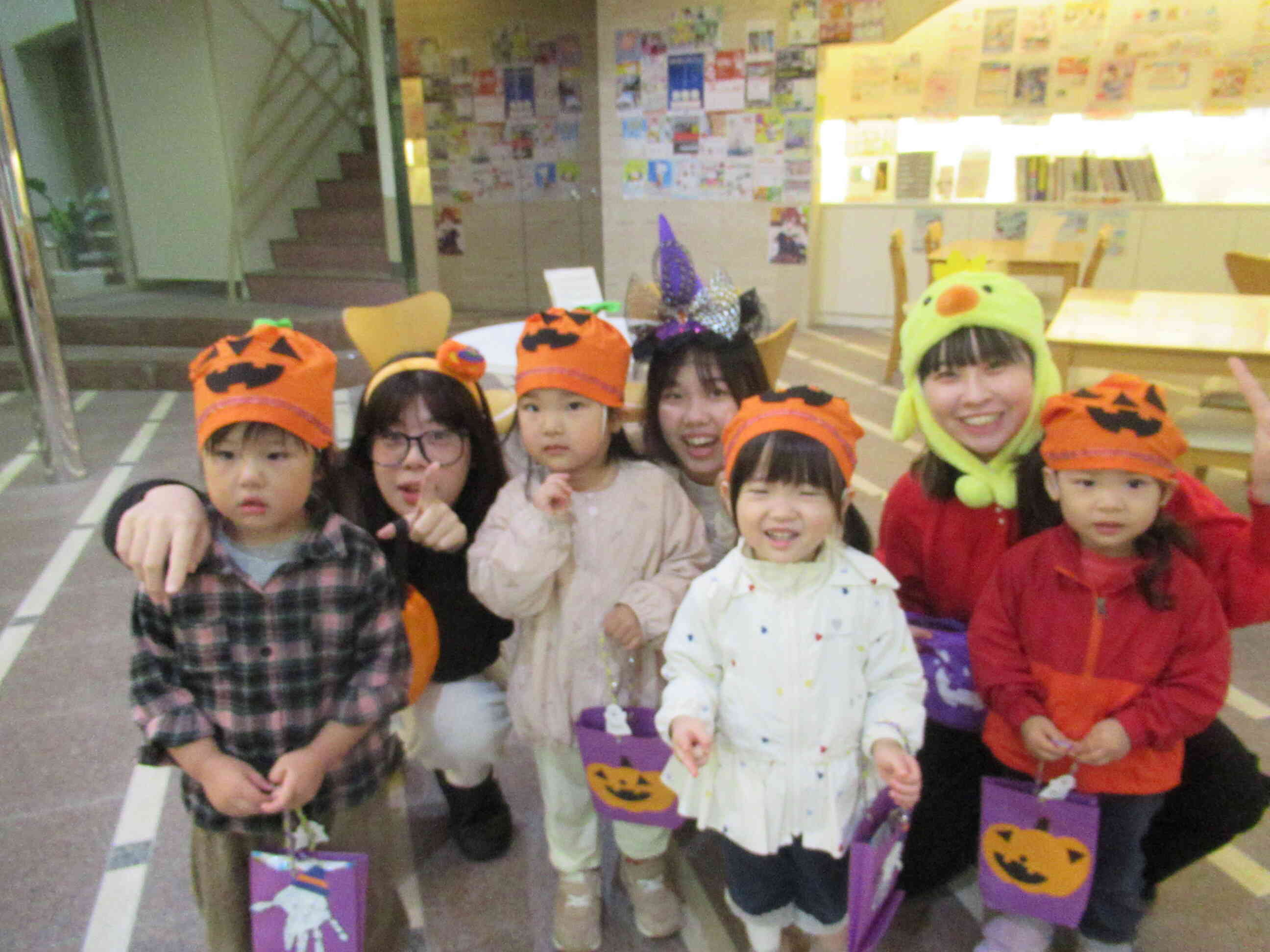 次に向かった公民館でも上手に「トリックオアトリート!」の合言葉を言うことができましたよ♪