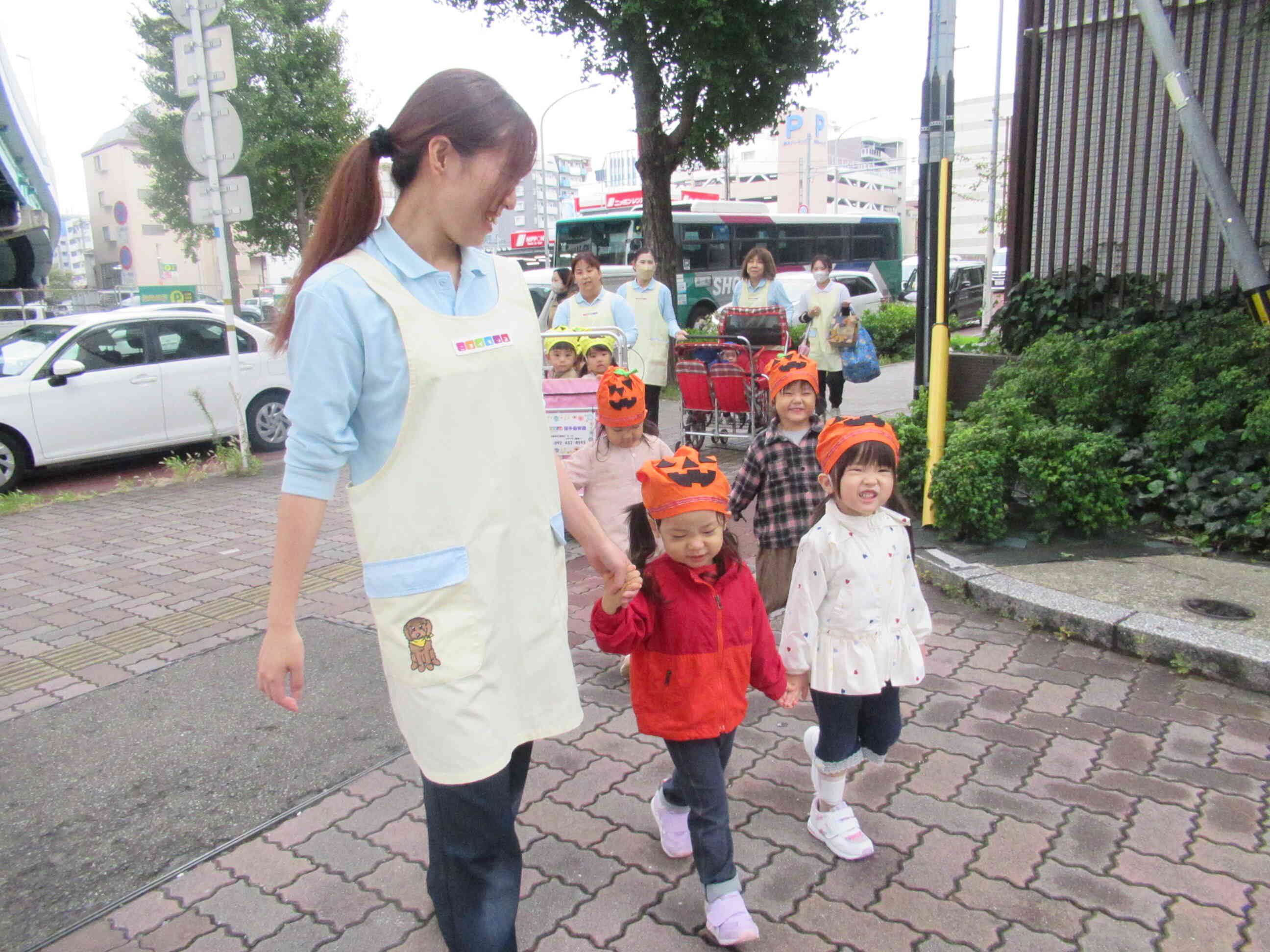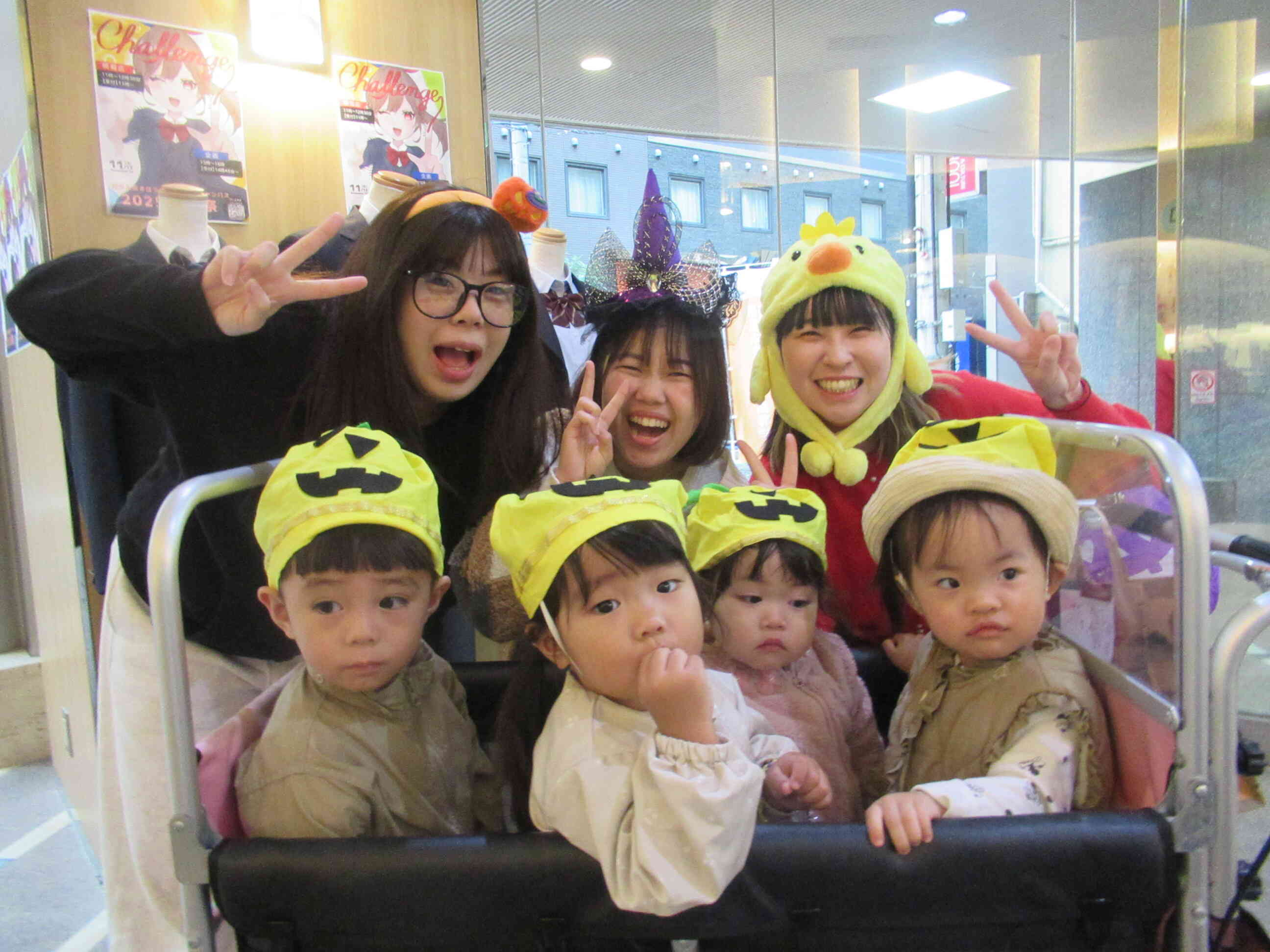 天気が心配されていましたが、みんなの思いが届いたようでなんとか雨も止み、無事ハロウィン回りに向かうことができました!