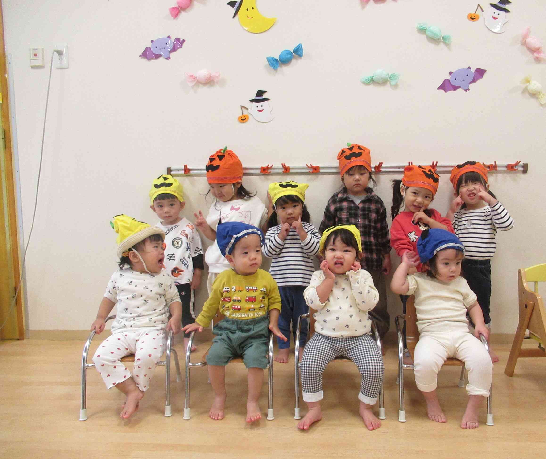 恥ずかしがってしまうかな?と思っていた保育者たちの予想を上回り、「トリックオアトリート!」と元気よく上手に言うことのできたうさぎ組さん!