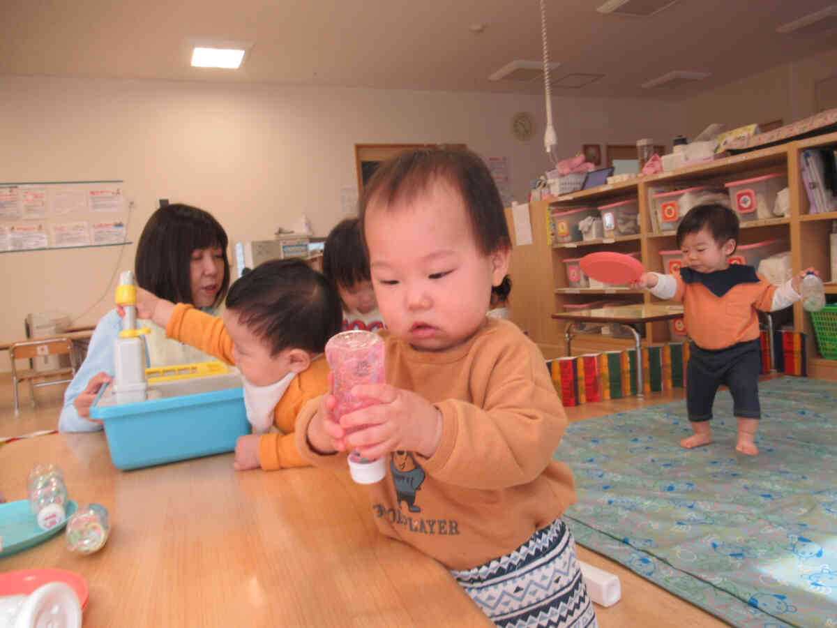 お部屋でおもちゃを手に取ったり先生やお友達に「んっ」と渡して遊んでいましたよ♪