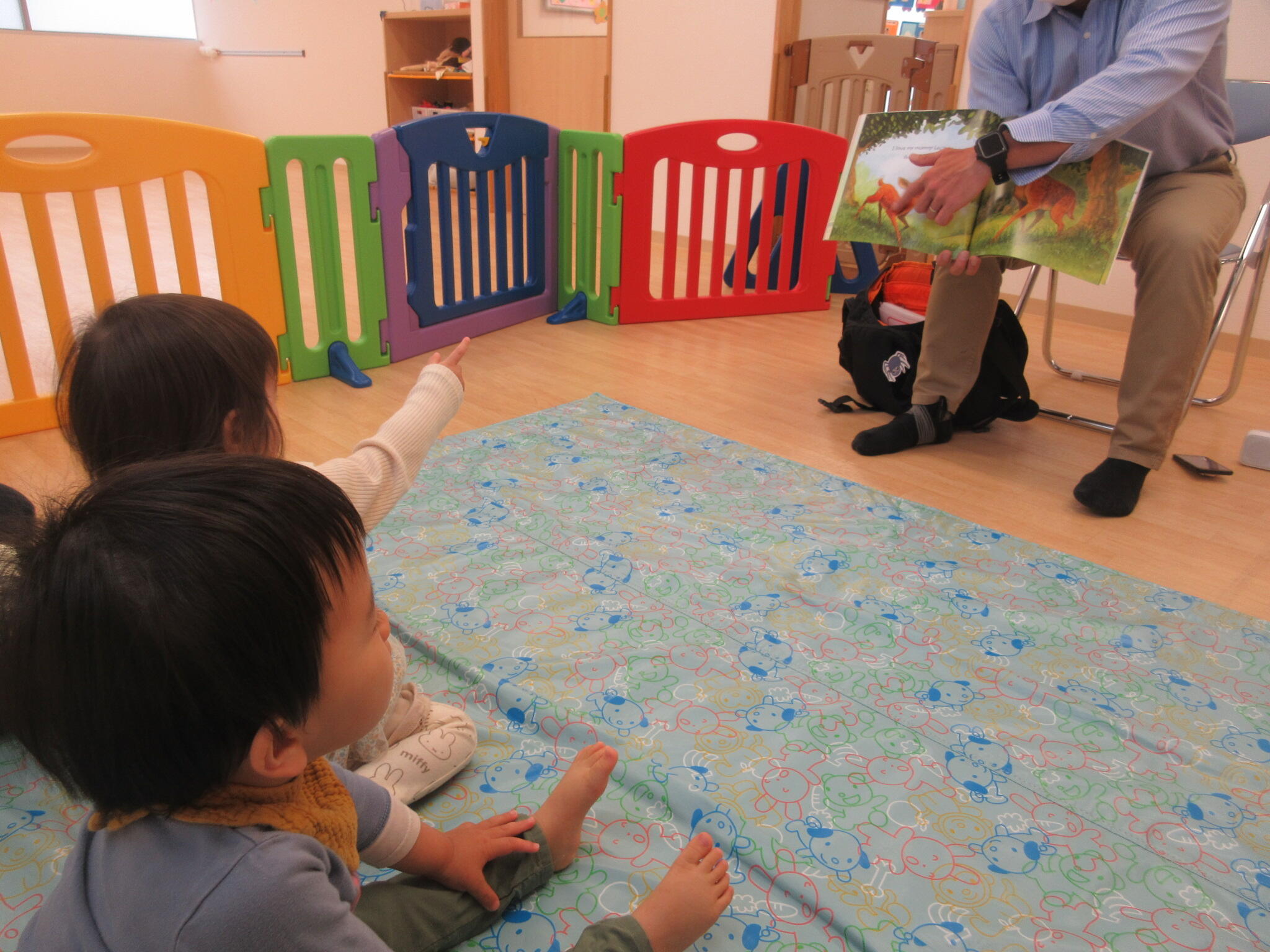 様々な動物が出てくる絵本にみんな興味津々。これは英語でなんて言うんだろう?次の英語教室も楽しみだね☆